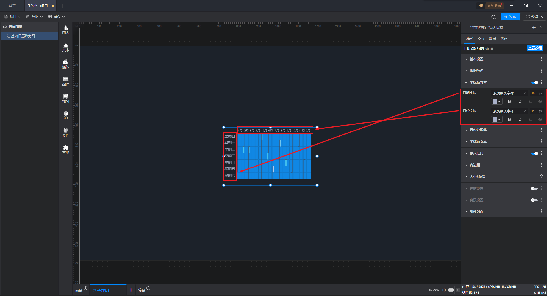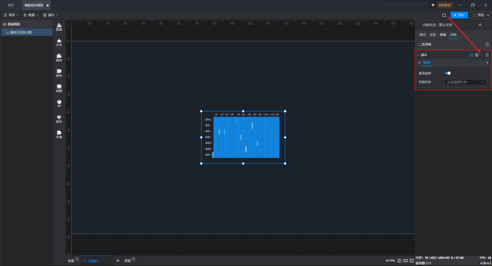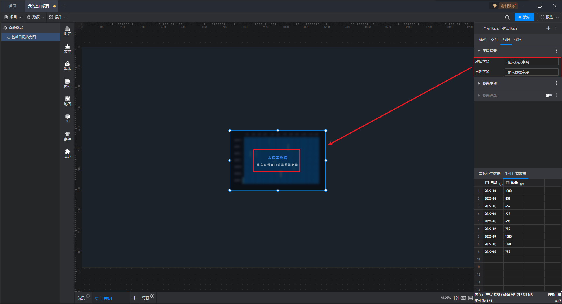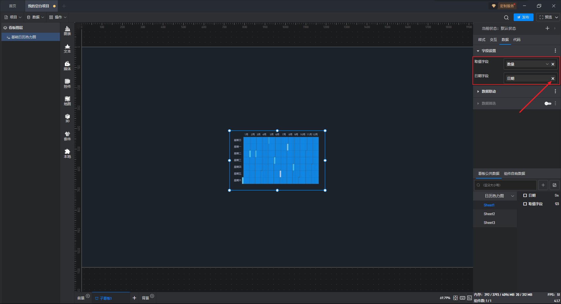下面我们以基础日历热力图为例,为大家介绍一下组件的使用步骤: