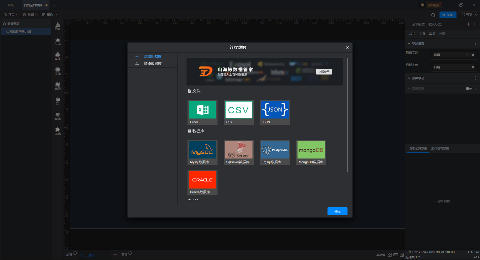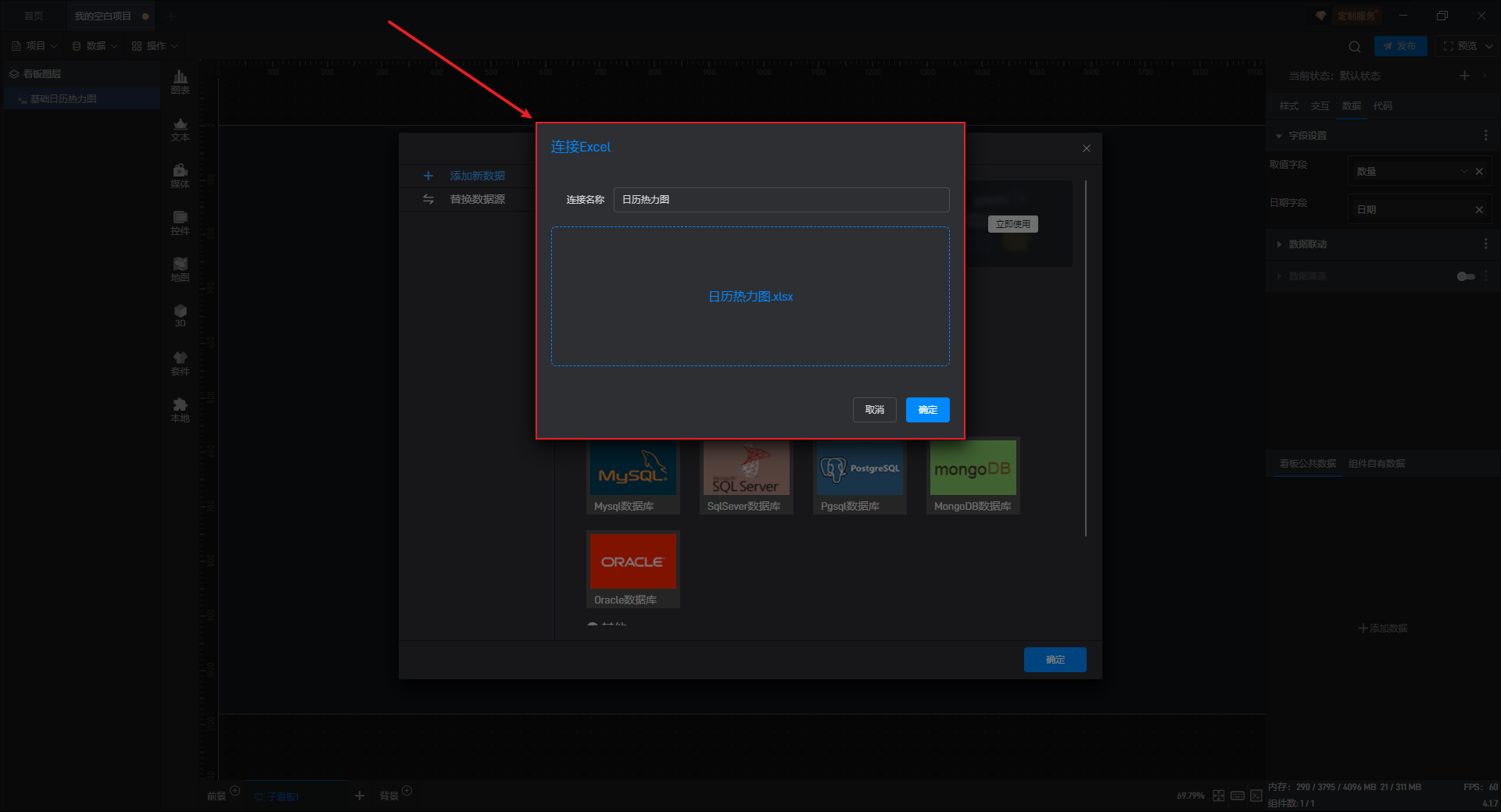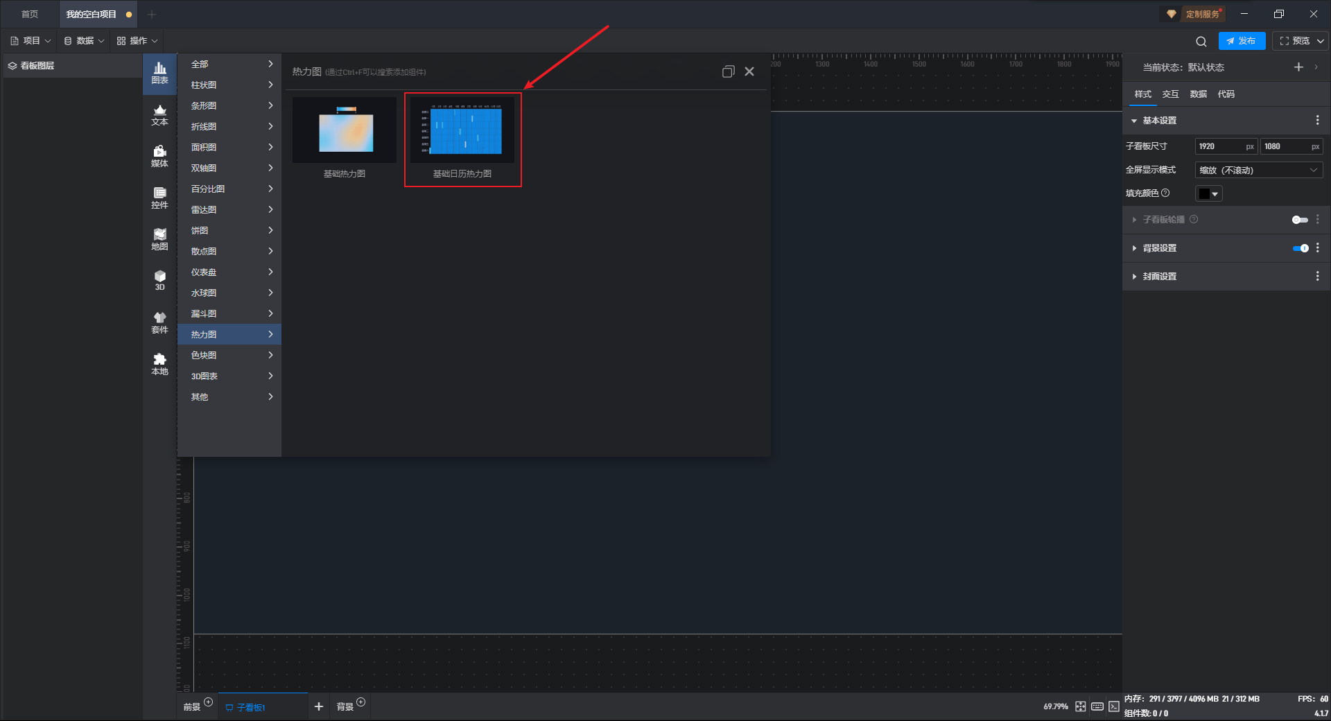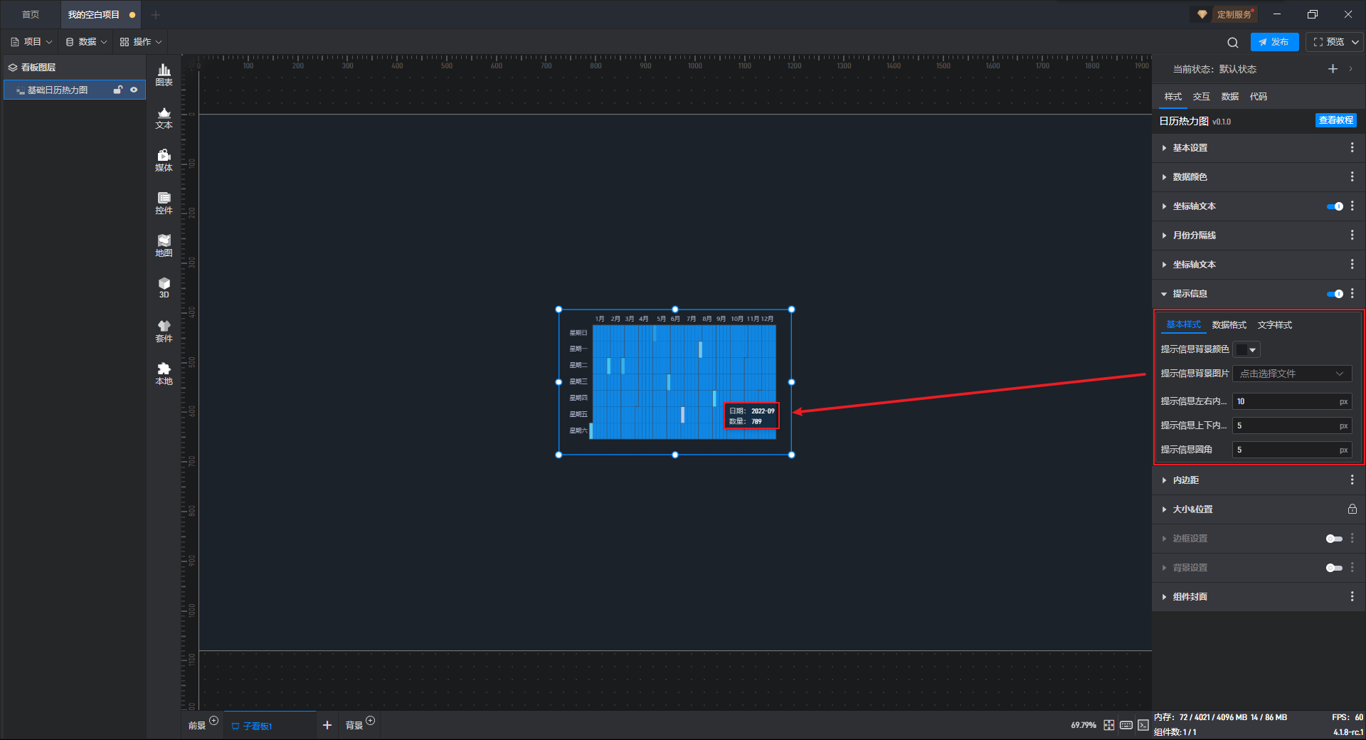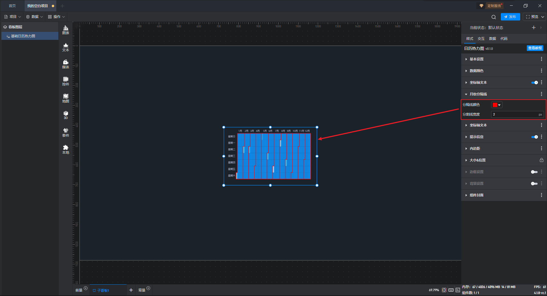 下面我们以基础日历热力图为例,为大家介绍一下组件的使用步骤: