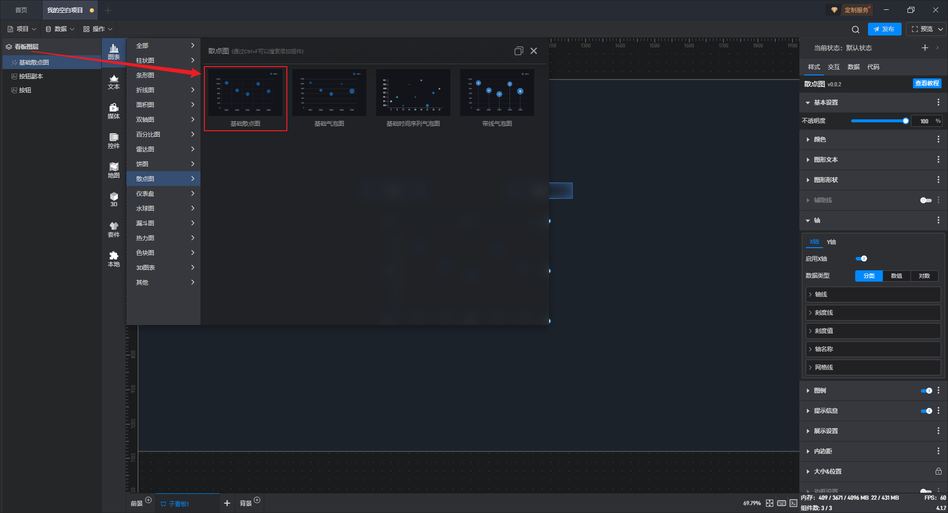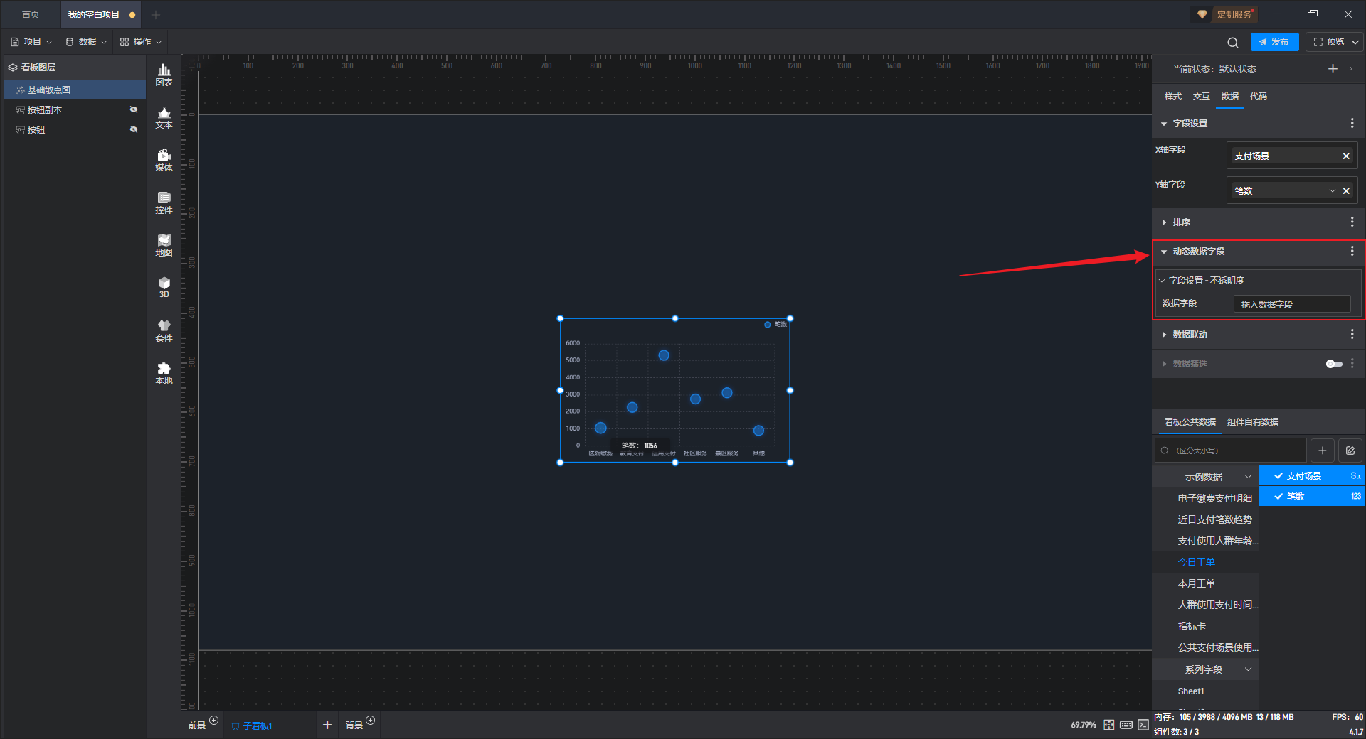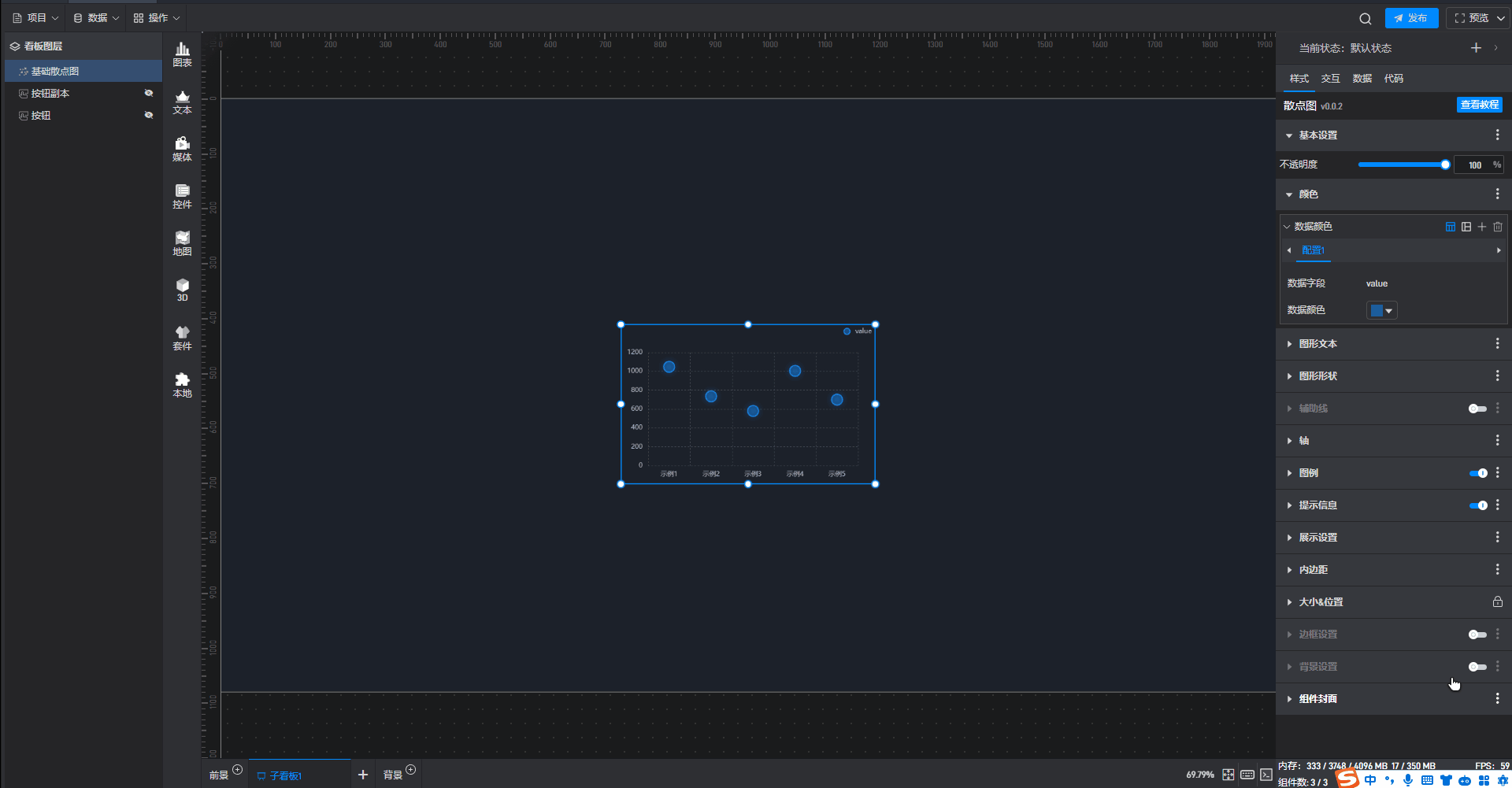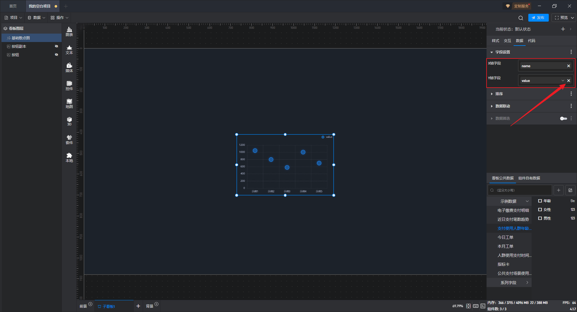 | 数据字段 | 对应组件的Y 轴字段,每个字段对应一组散点,每组散点都可以单独设置颜色。 |