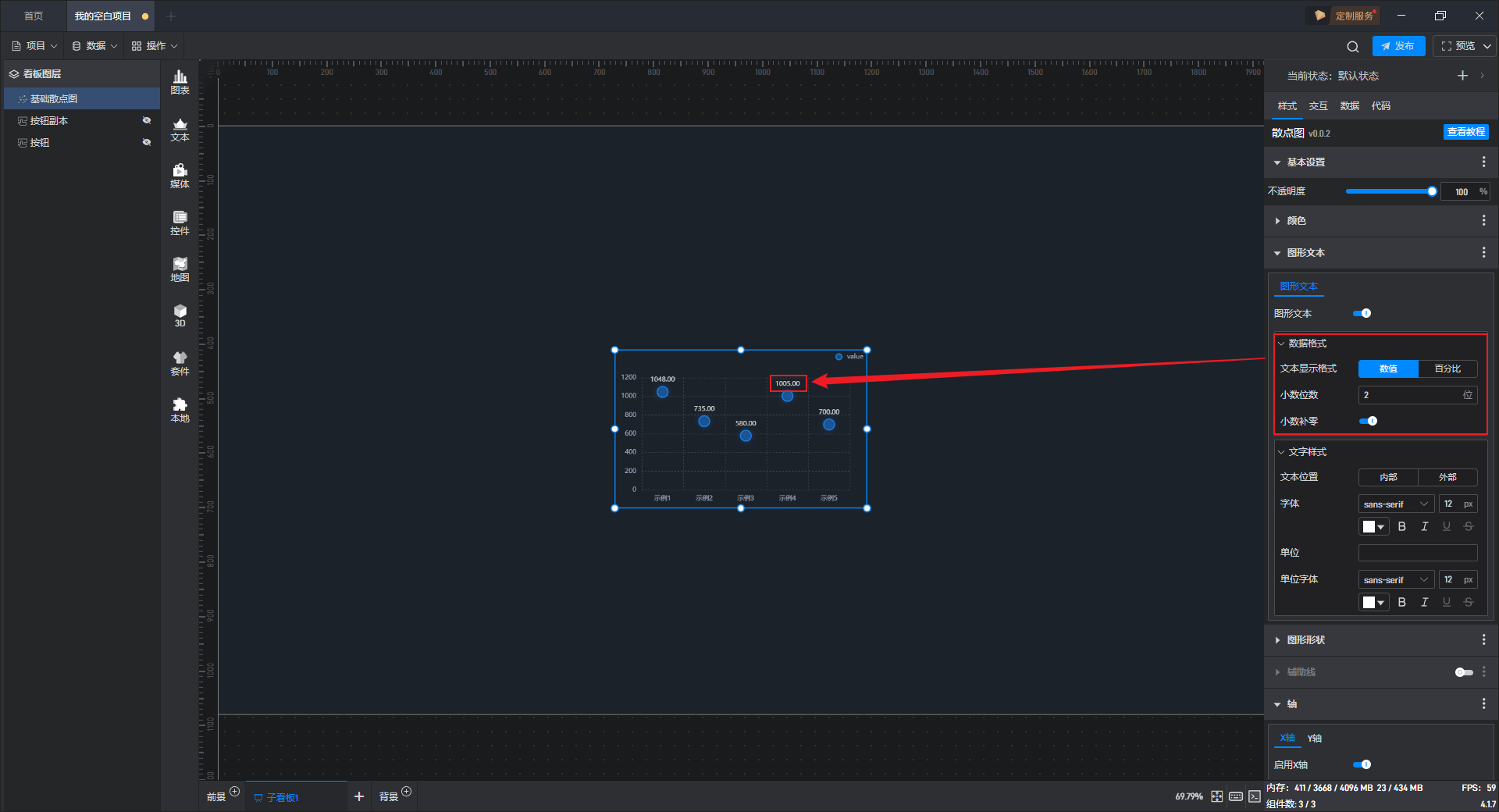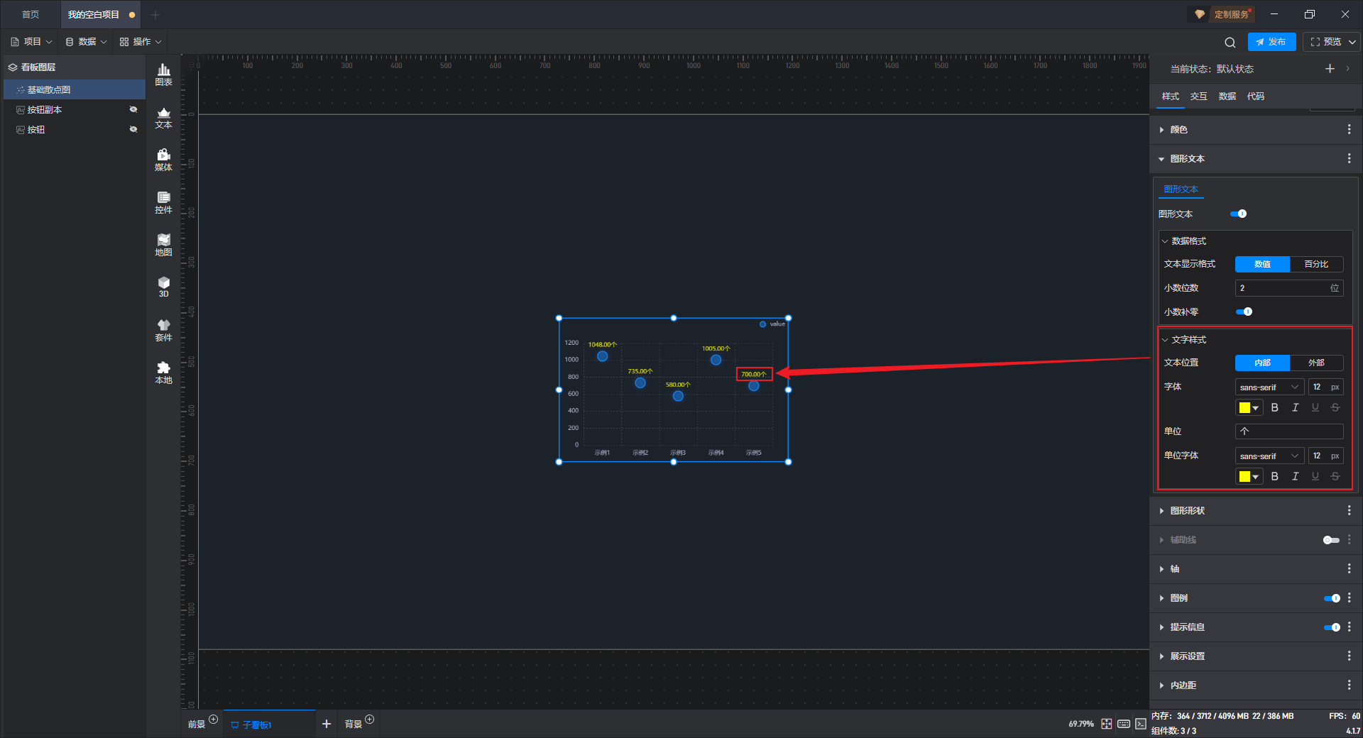 | 单位字体 | 对散点文本的单位字体、字体大小、颜色等样式进行配置。 |