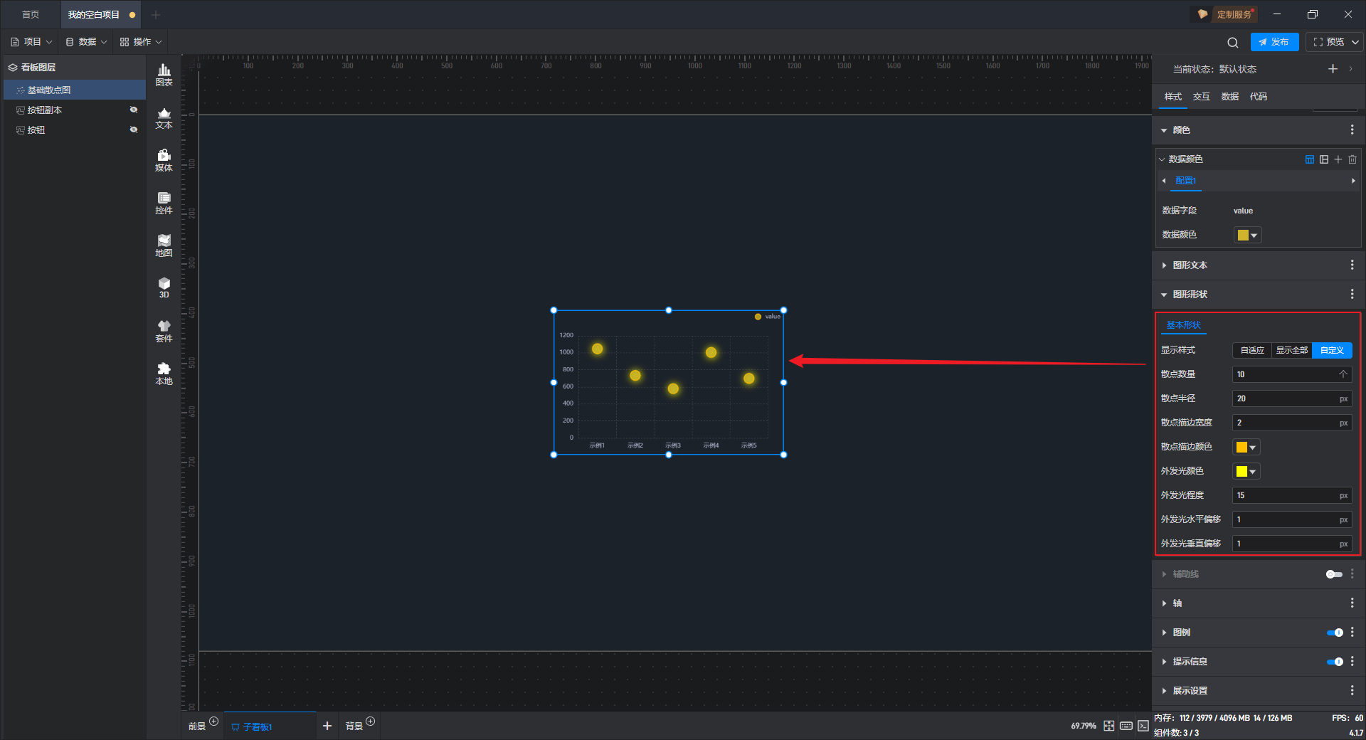| 外发光程度 | 对散点外部发光颜色程度进行单独配置,默认值为“10px”。 |