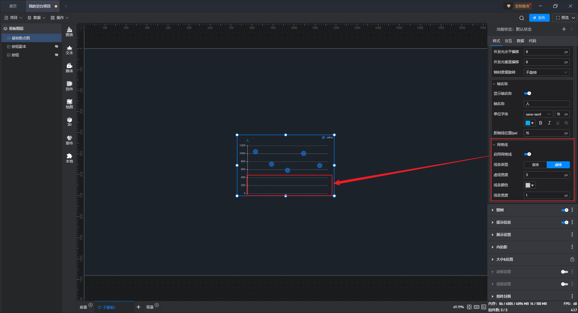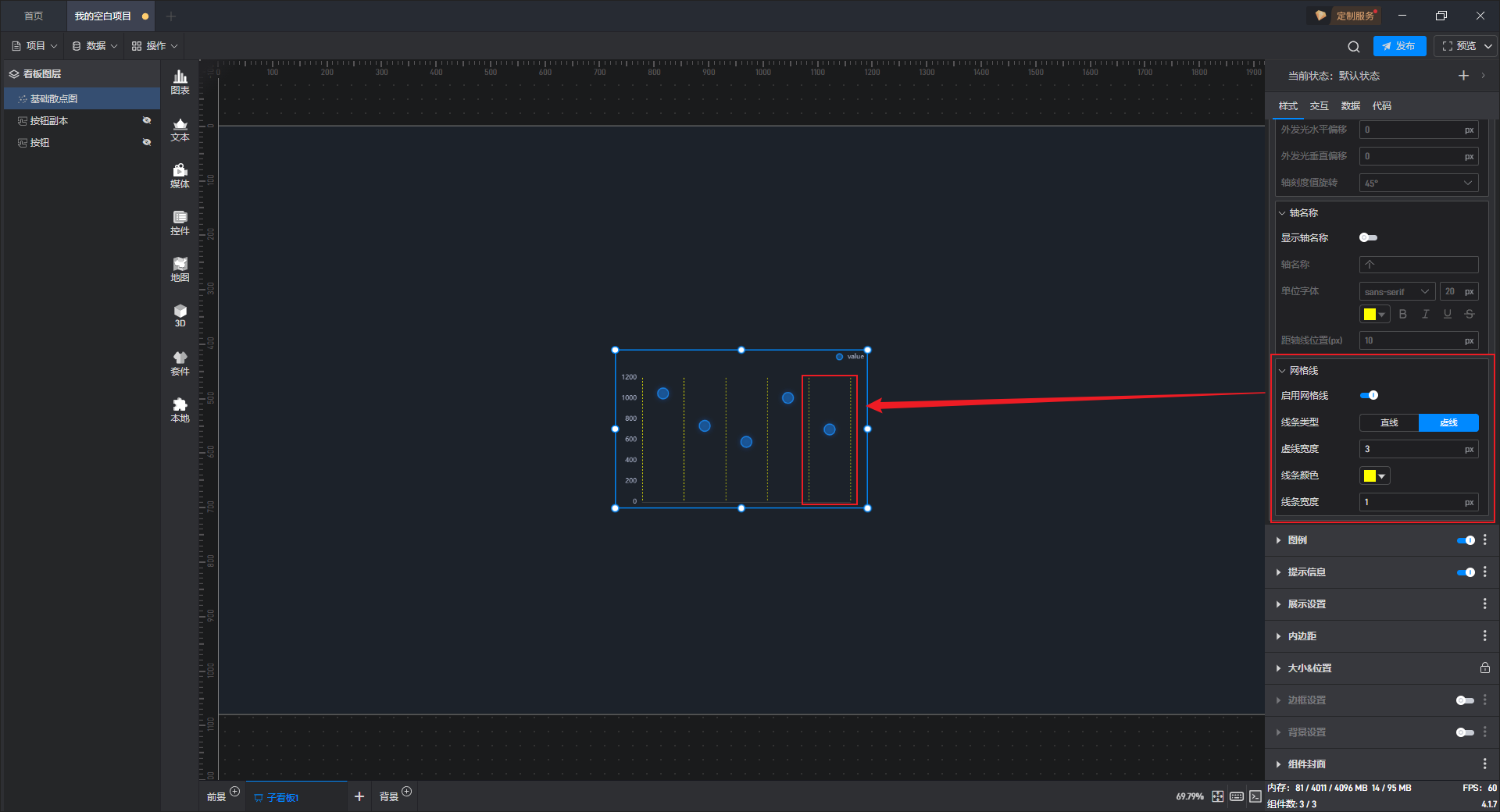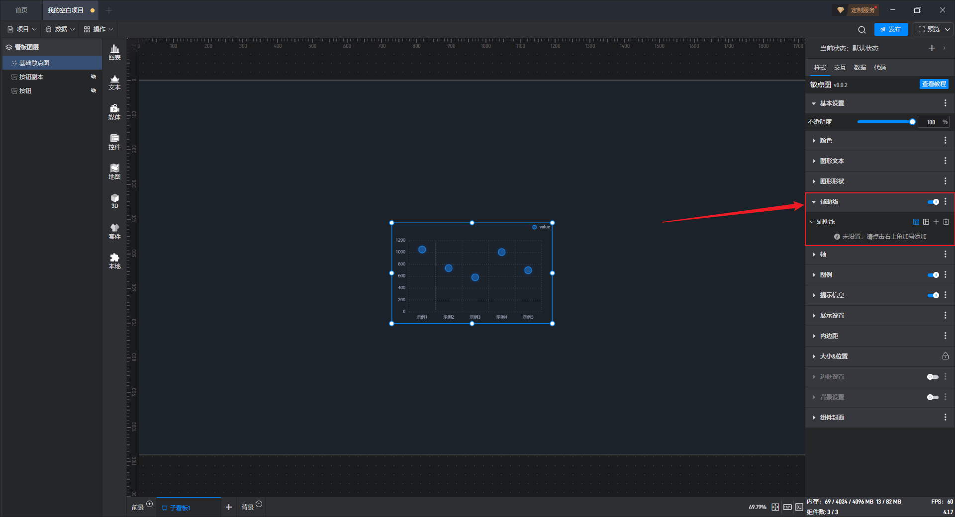 开启辅助线按钮后,可以添加辅助线,并进行设置。