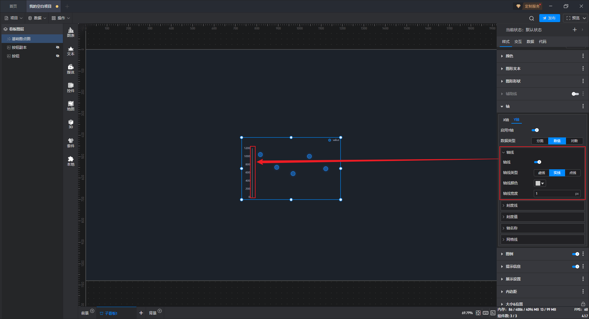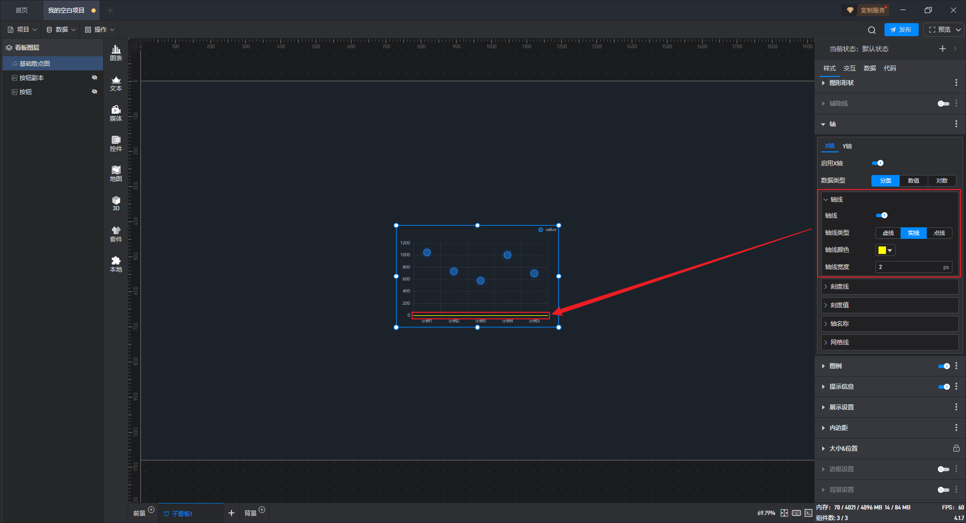 | 轴线宽度 | 自定义输入 X 轴轴线的宽度,默认宽度为“1px”。 |