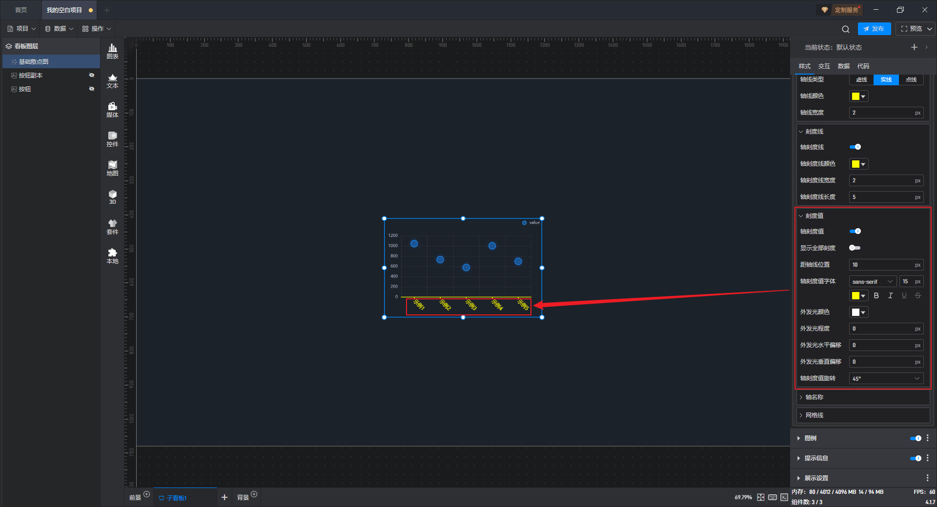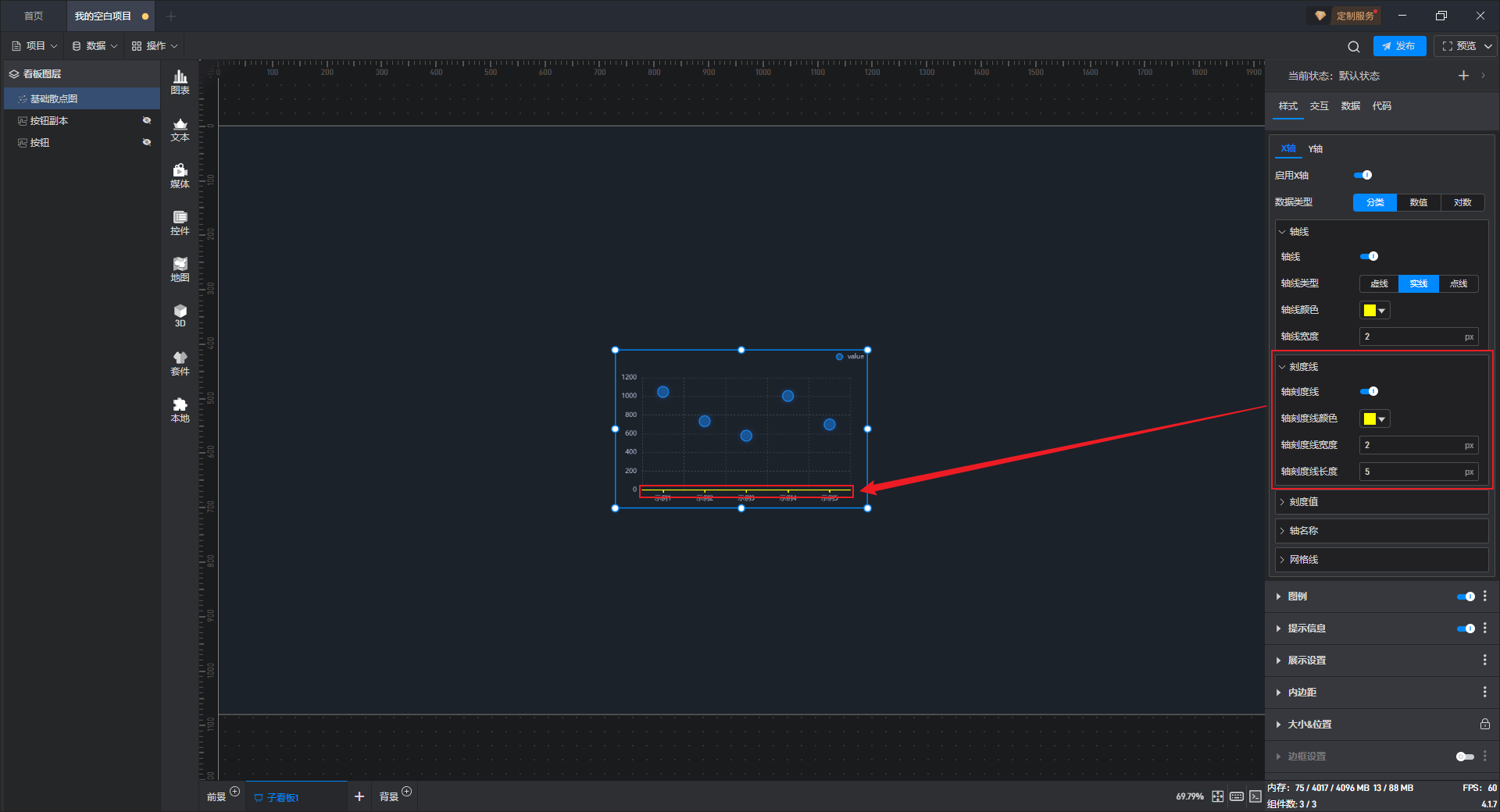 启用 X 轴后,X 轴的样式才会显示在组件中。