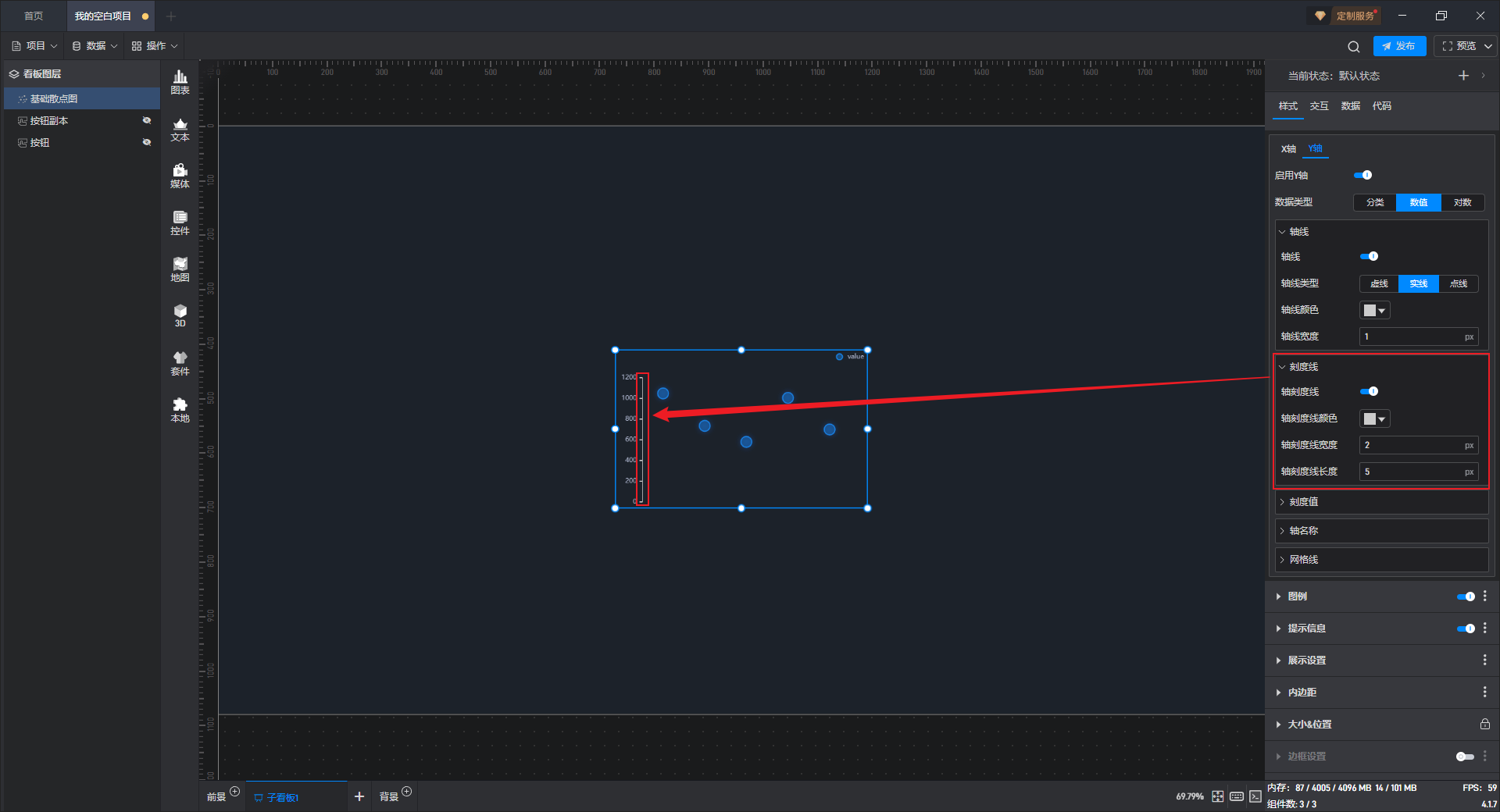 | 轴刻度线 | 开启此按钮后,才可以对轴刻度线进行配置。 |