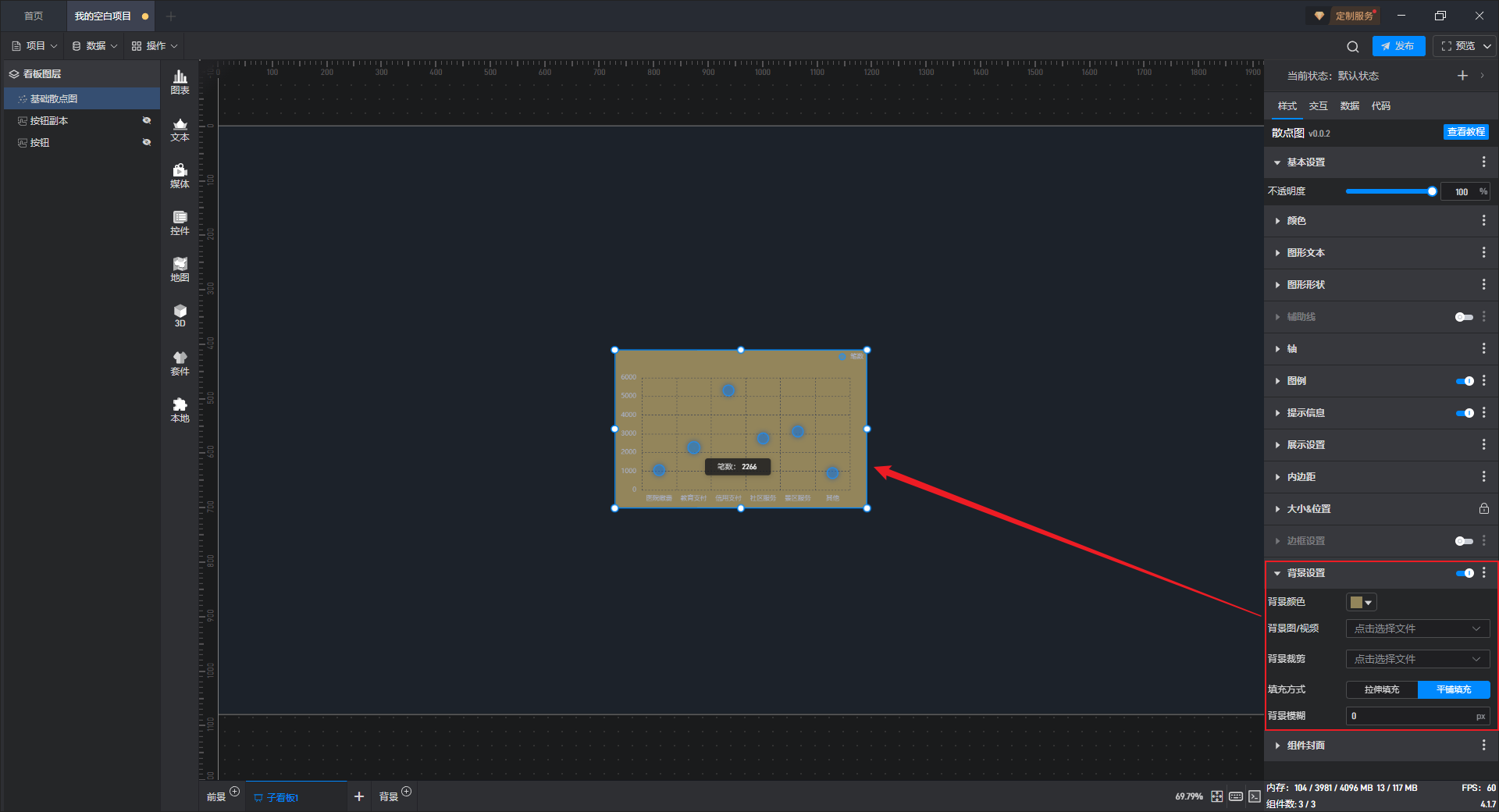 组件默认没有背景颜色,如果需要设置背景颜色,需要先开启“背景设置”项按钮。