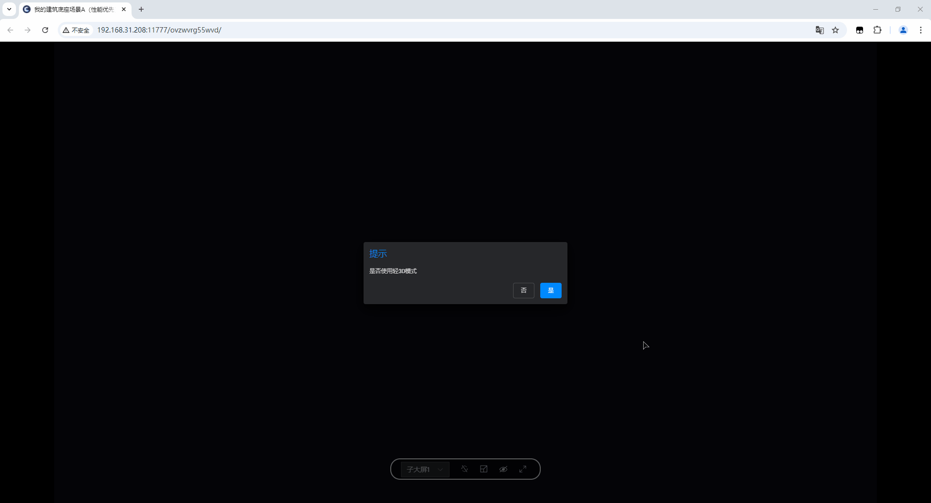 选择“不使用/使用轻 3D 模式”,项目的效果和章节 3.1 不生效、章节 3.2 生效 中一致,这里不再重复展示,只演示项目发布后,在 web 端的效果,当我们选择“否”时,效果如下图所示: