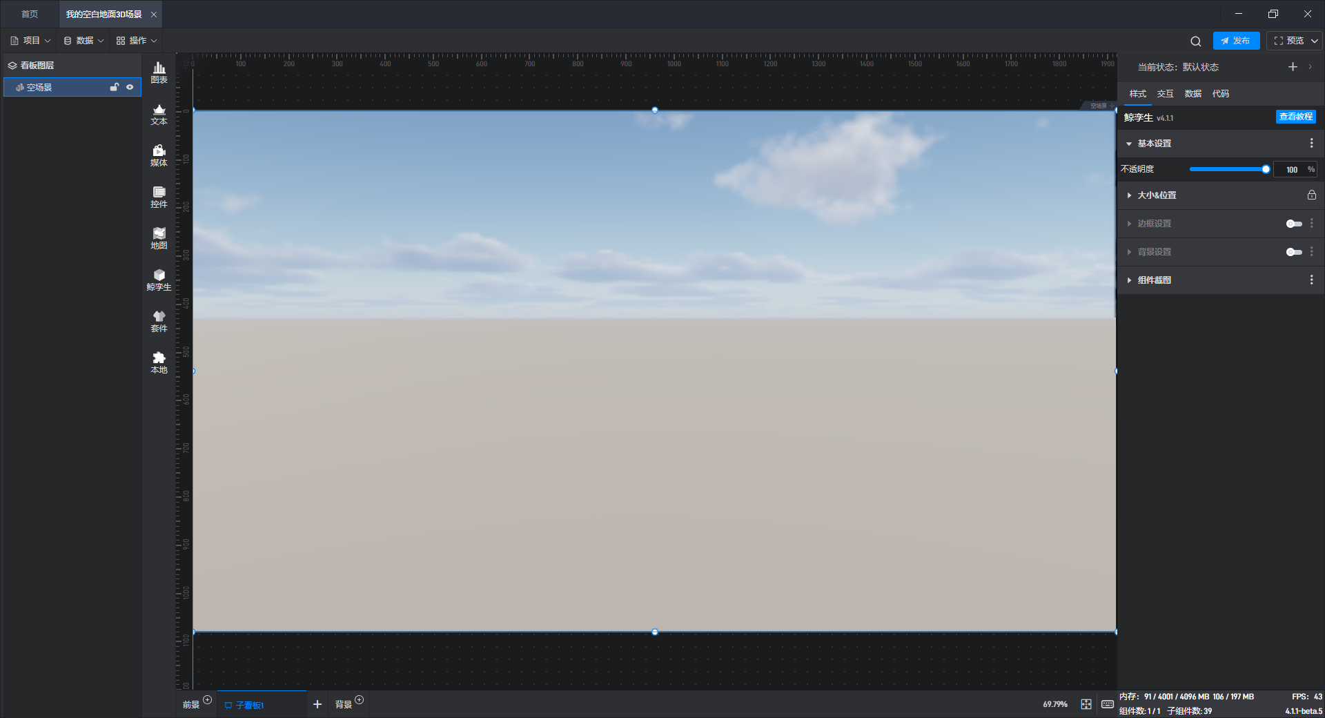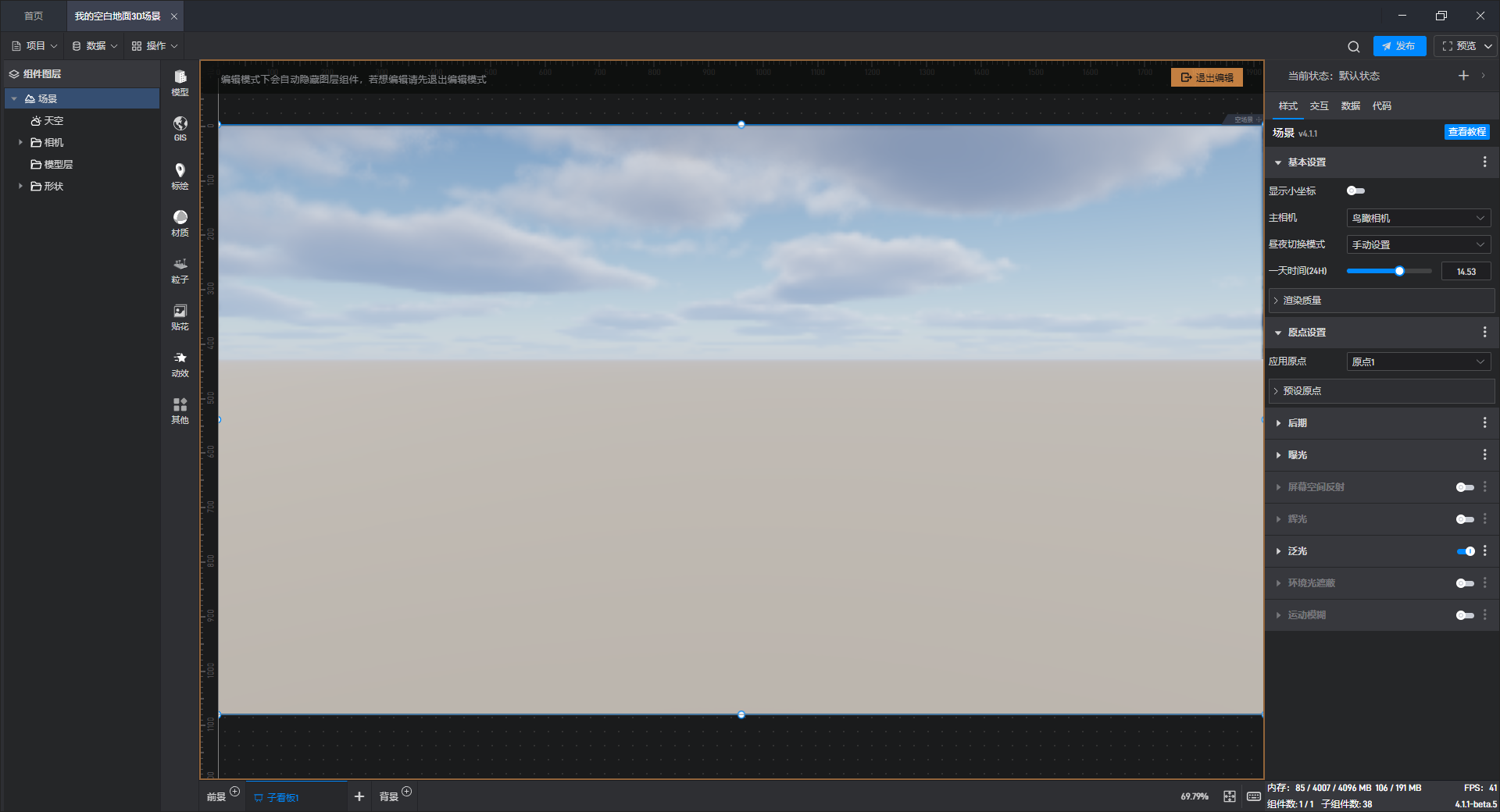 在创建的空白地面 3D 场景中,双击场景或者鲸孪生图层右击即可进入编辑模式。