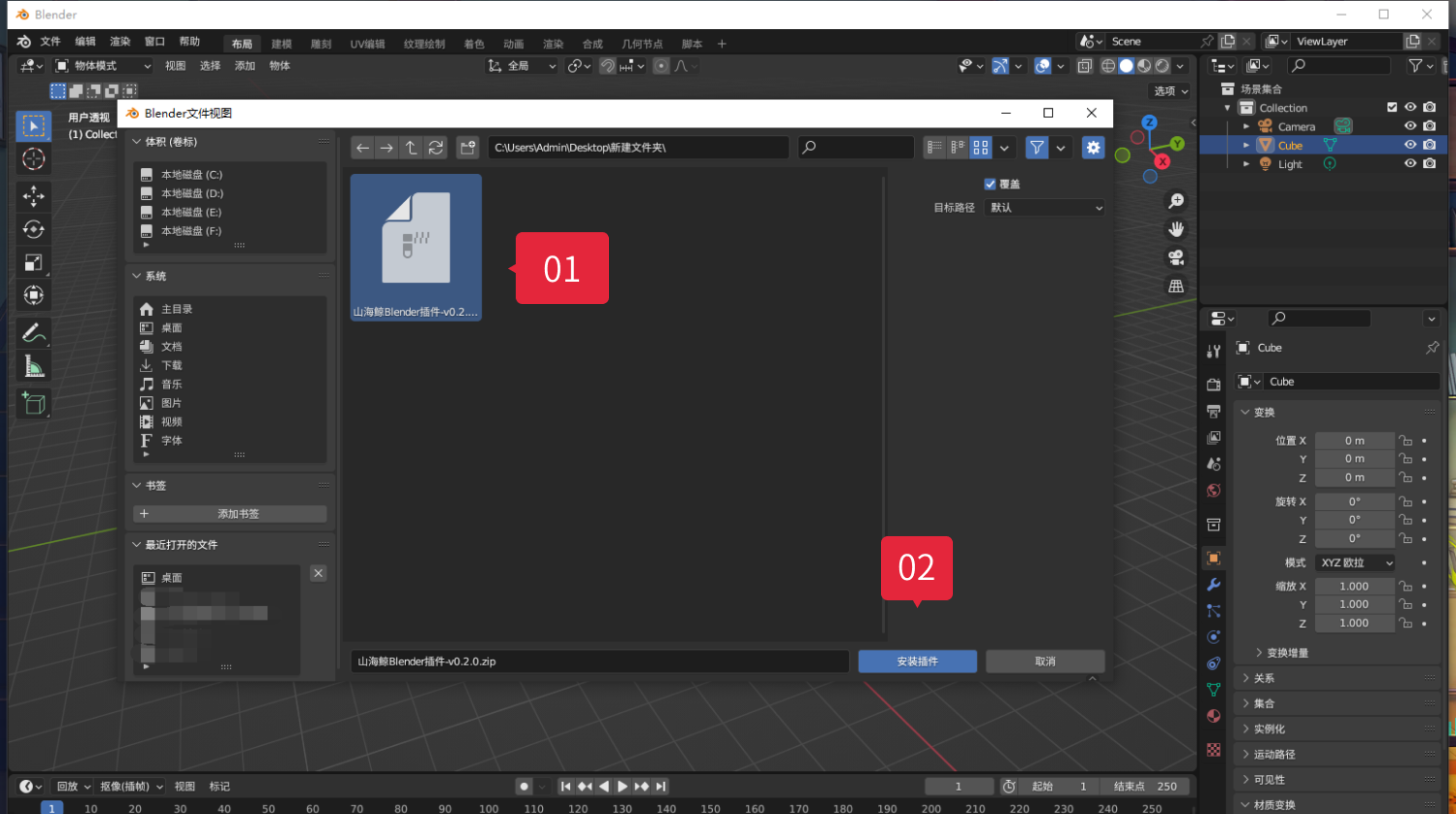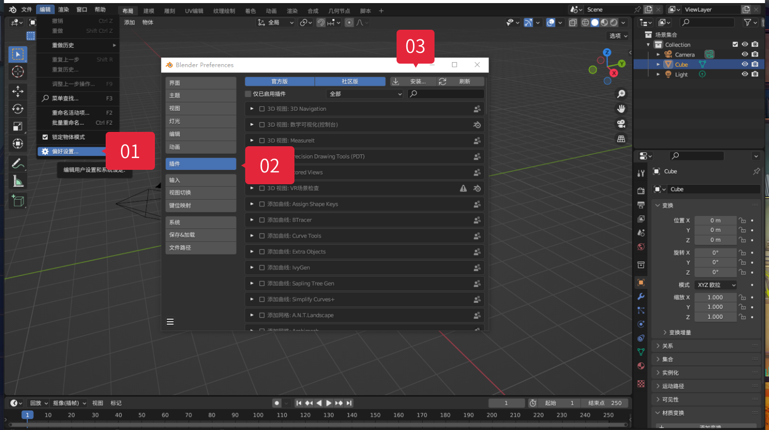插件下载完成后无需解压,打开 blender 根据以下操作安装即可。