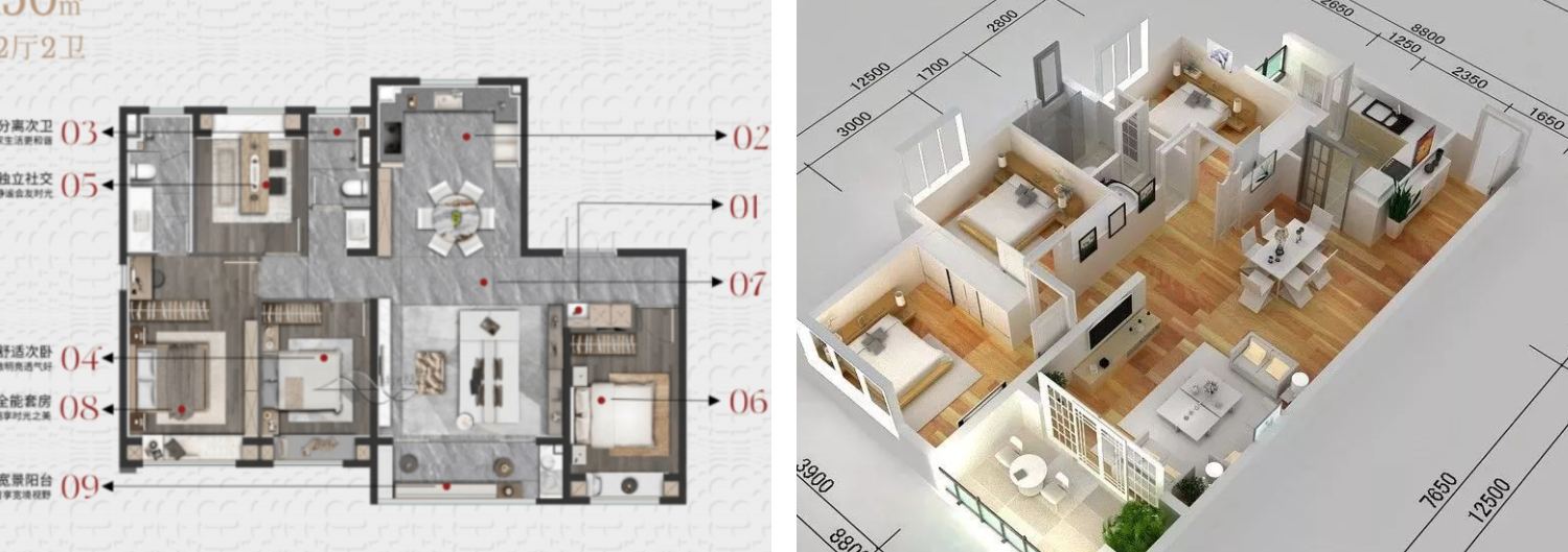 如果建筑较紧凑,推荐使用垂直抬起,这样不容易出现遮挡问题,且分层的定位也更加准确;如果建筑较简单独立,推荐使用抽屉拉出,抽屉拉出给人的视觉冲击力会更强一些,数据按时也会更直观。