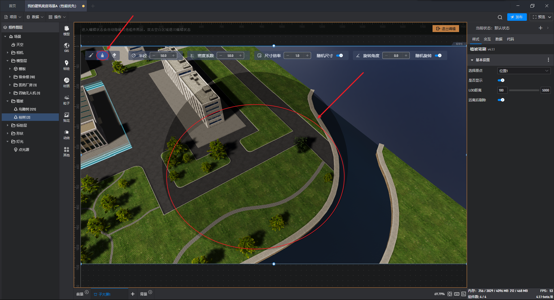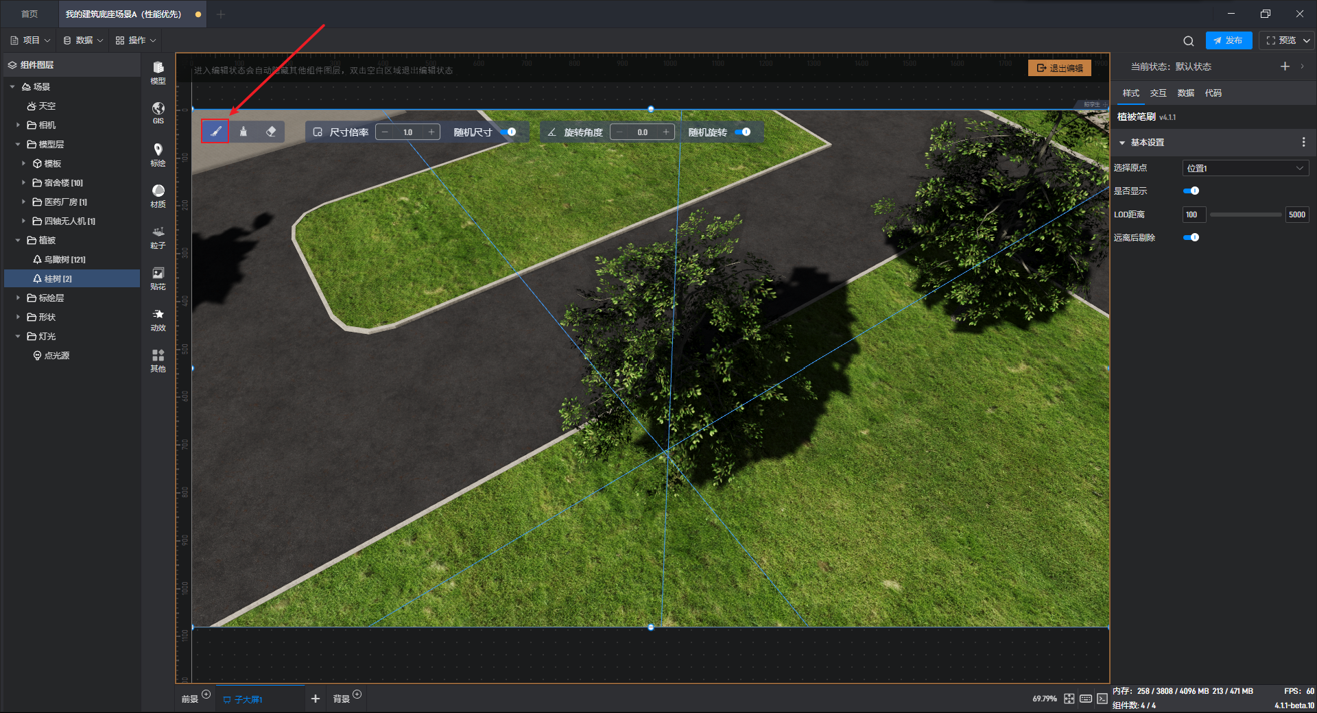 植被组件通过点击或笔刷的方式添加到鲸孪生组件中,并进行基本设置。下面我们逐个看下植被组件的使用场景。