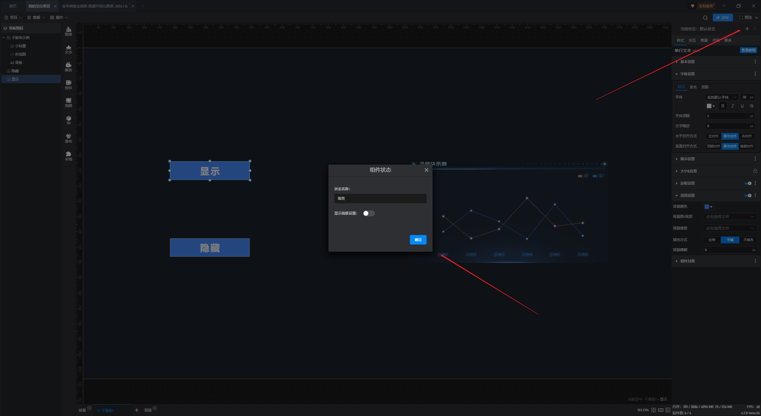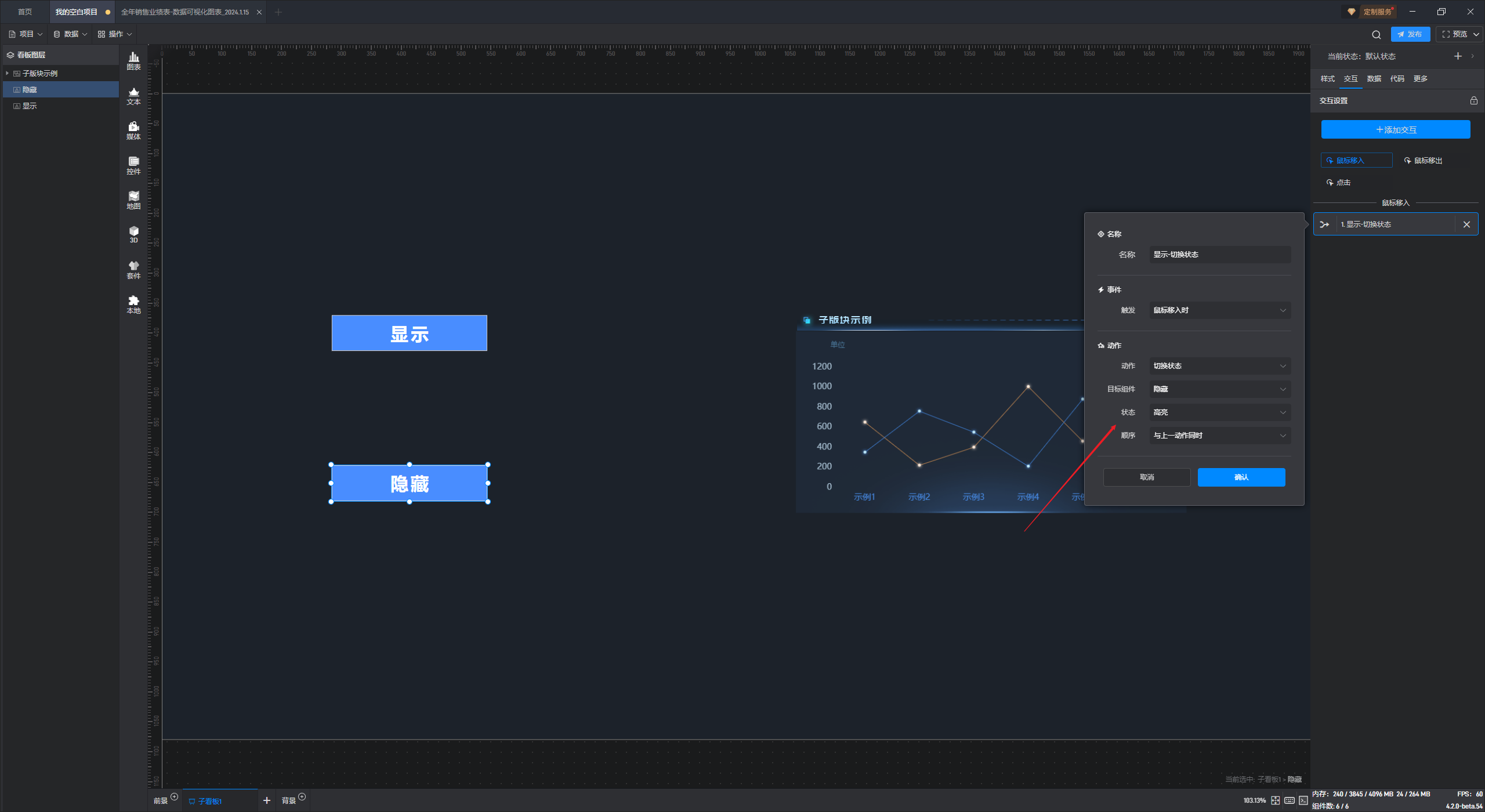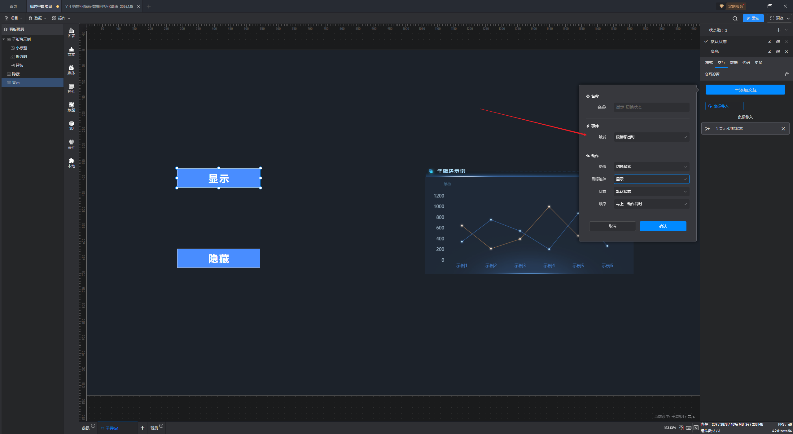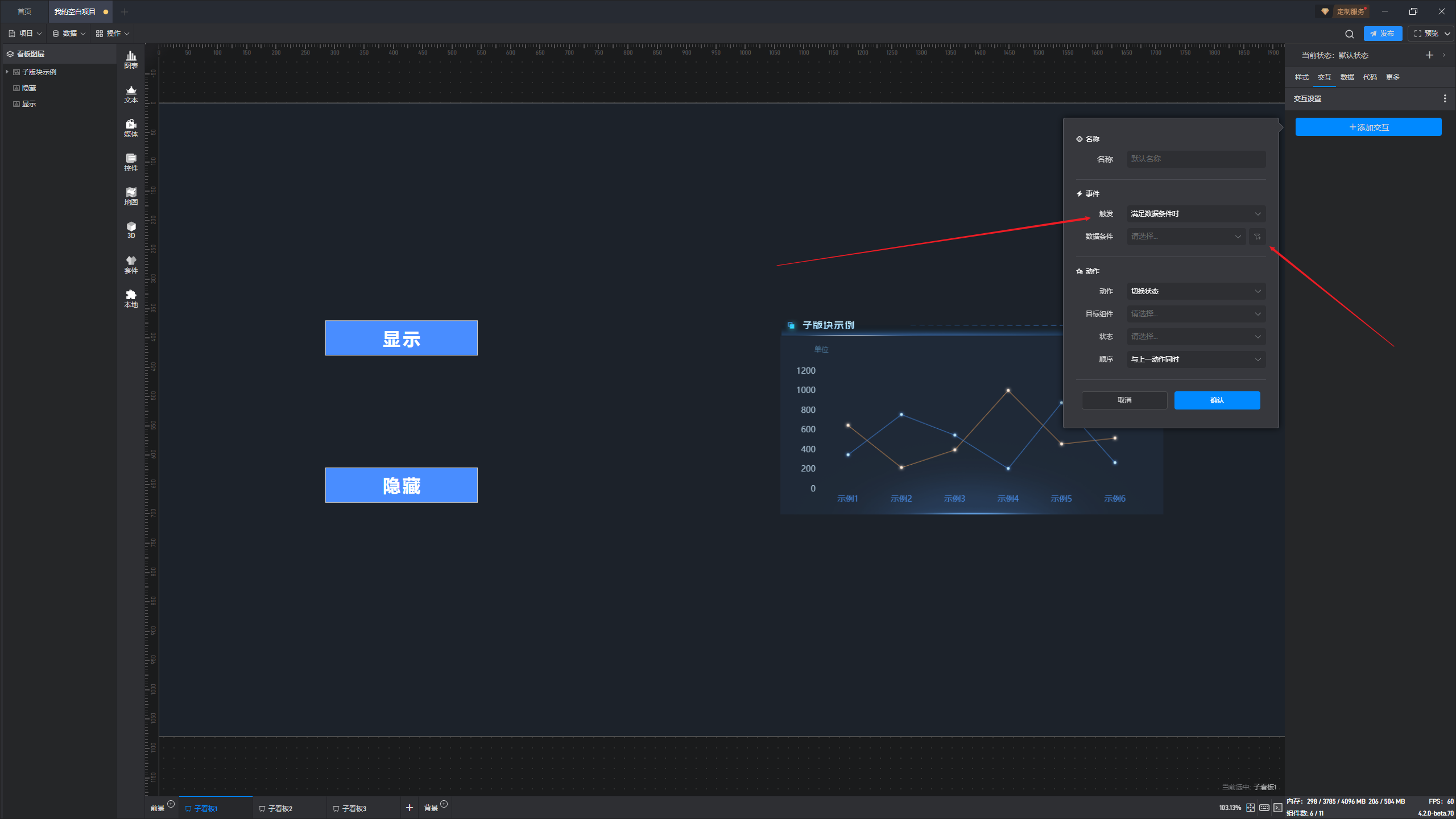 (1)切换状态:结合组件/看板的多状态使用,将组件/看板从一个状态切换到另一个状态(教程:设置组件多状态)