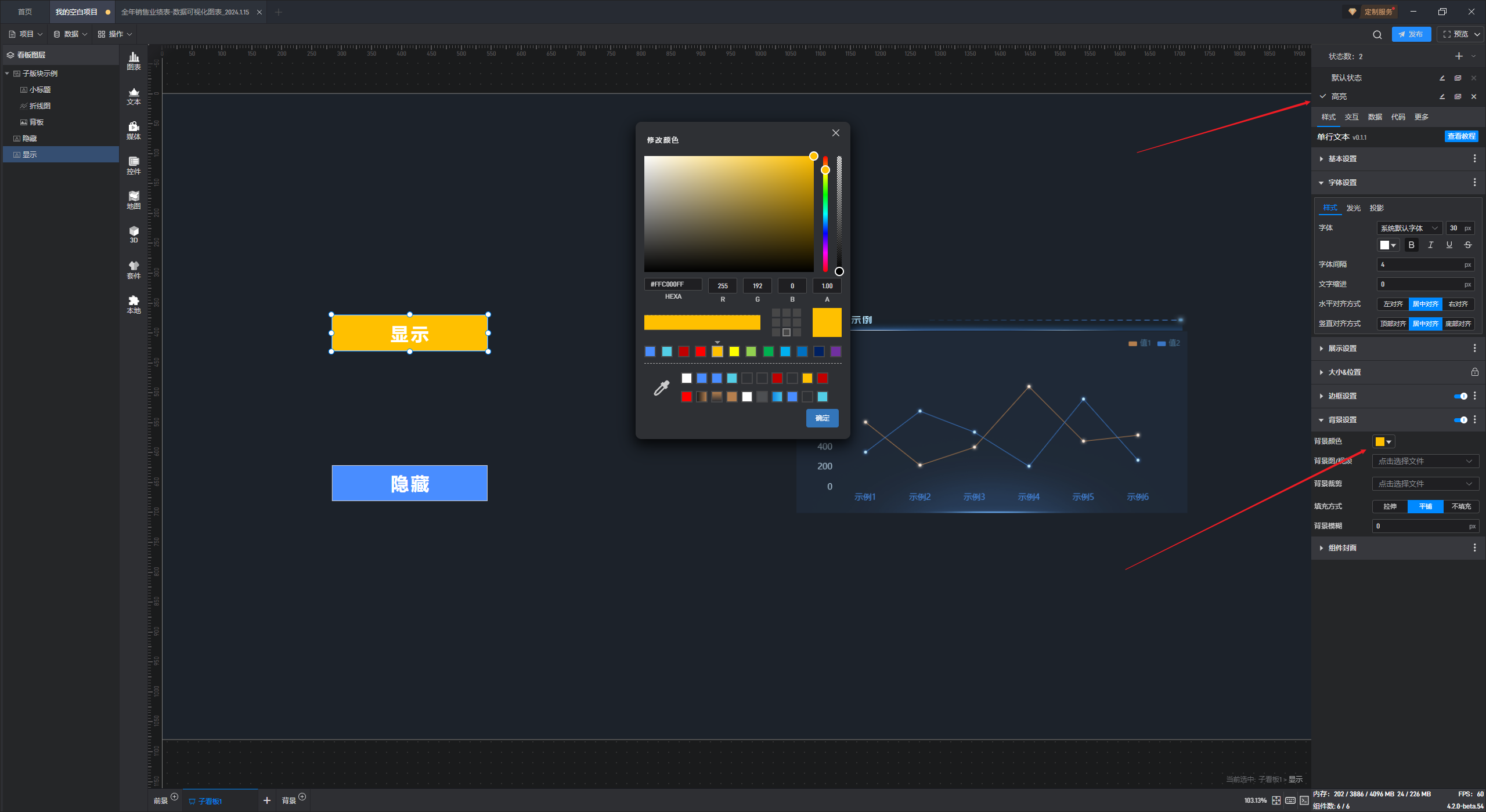 (2)修改设置:可以修改组件/看板的设置项,样式、数据和代码都可以修改