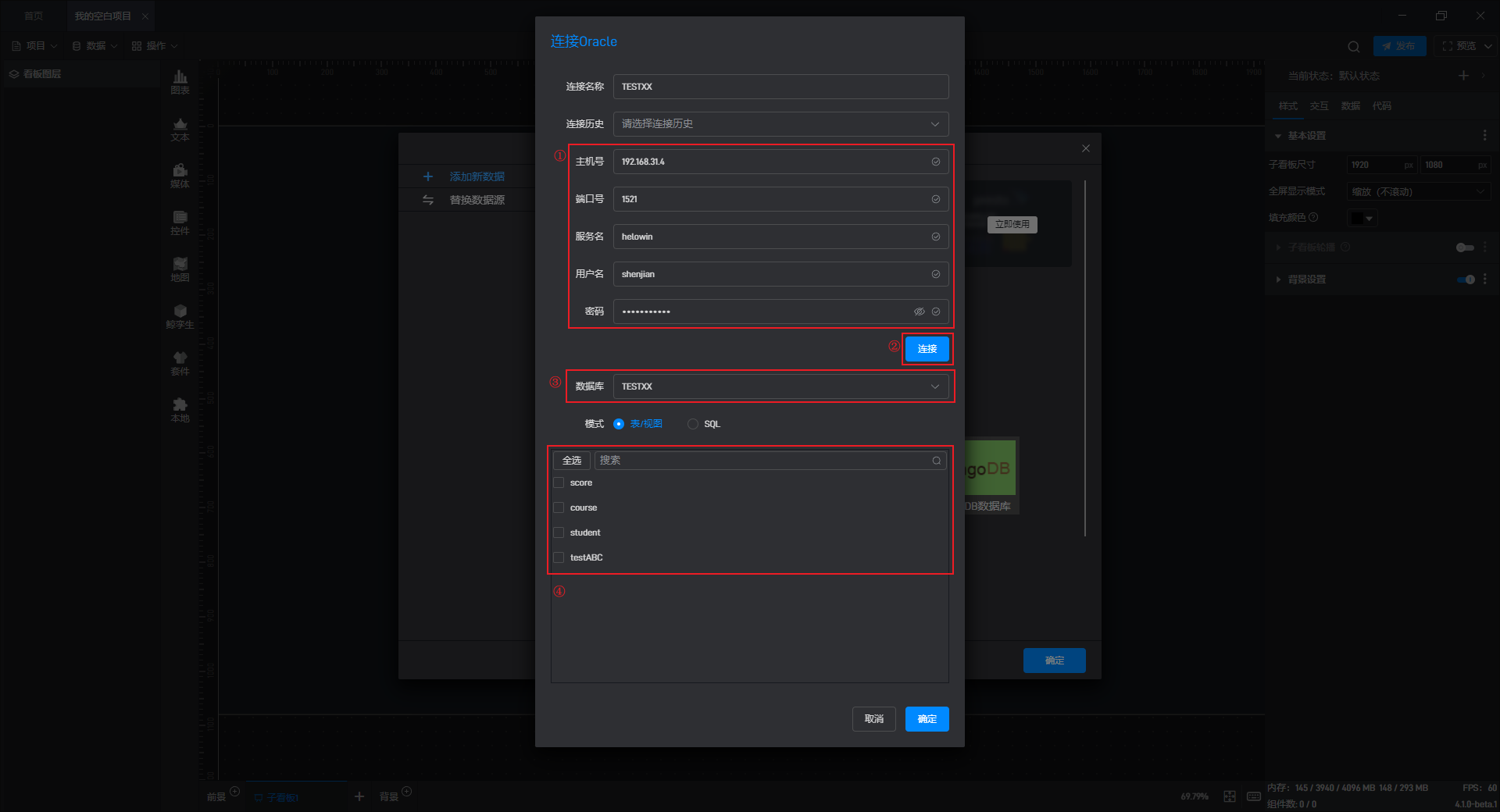 添加数据有两种模式:“表/视图”模式和“SQL”模式。