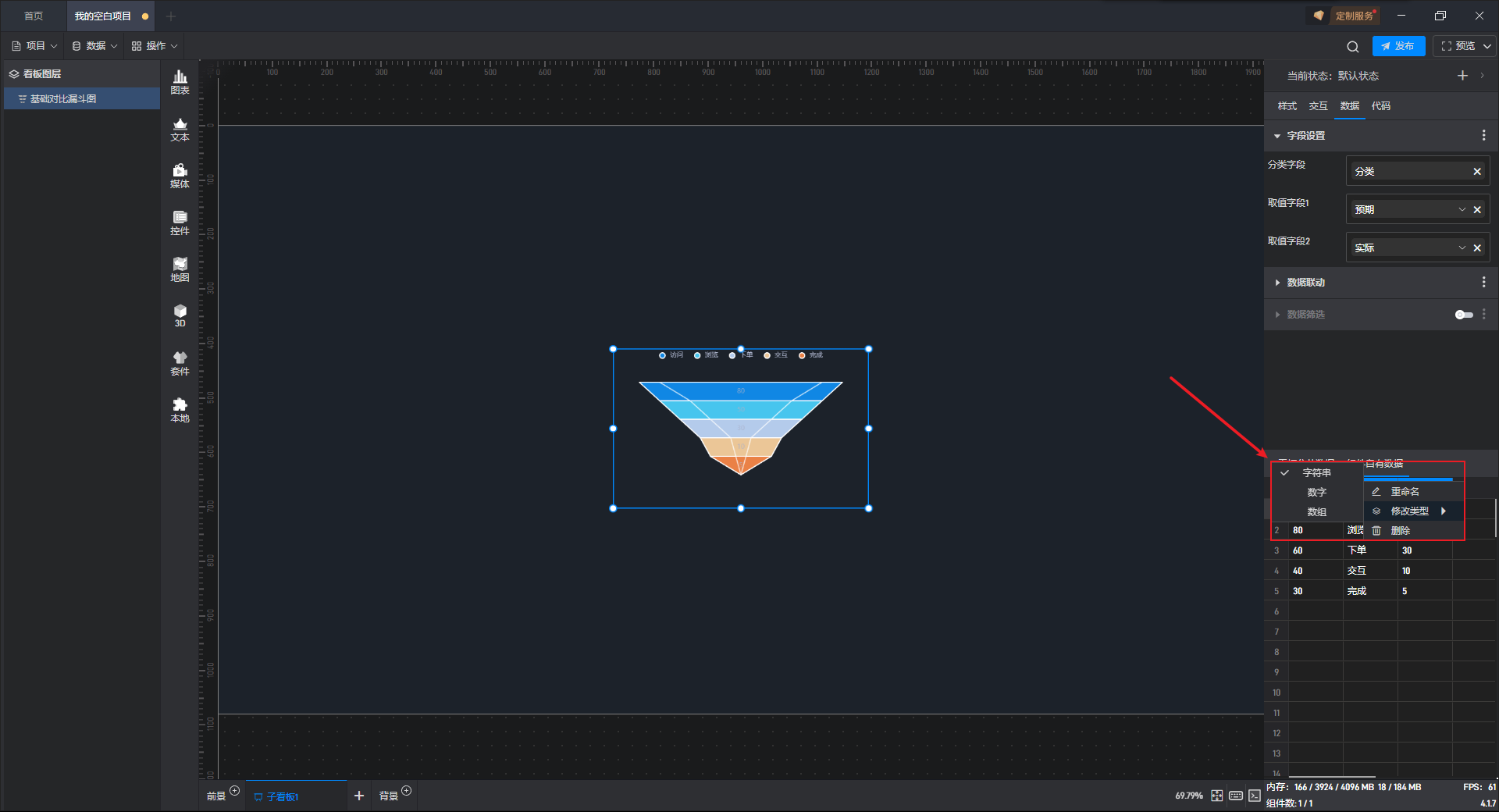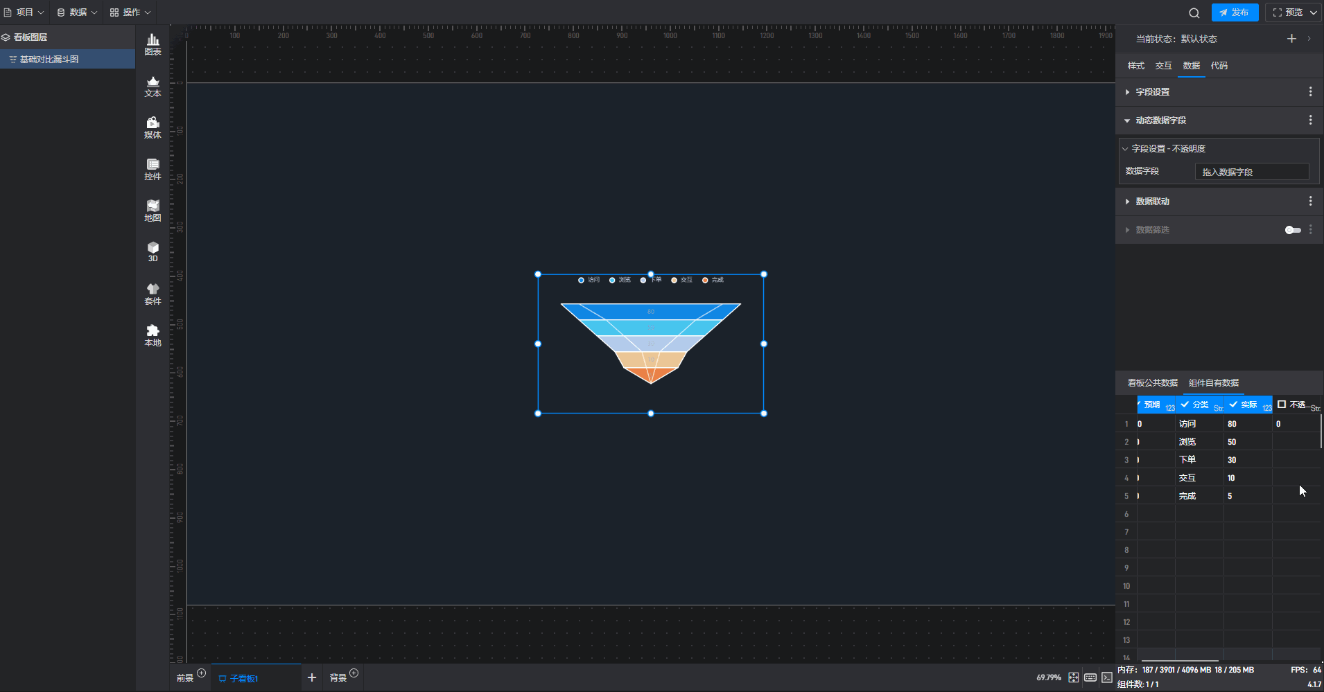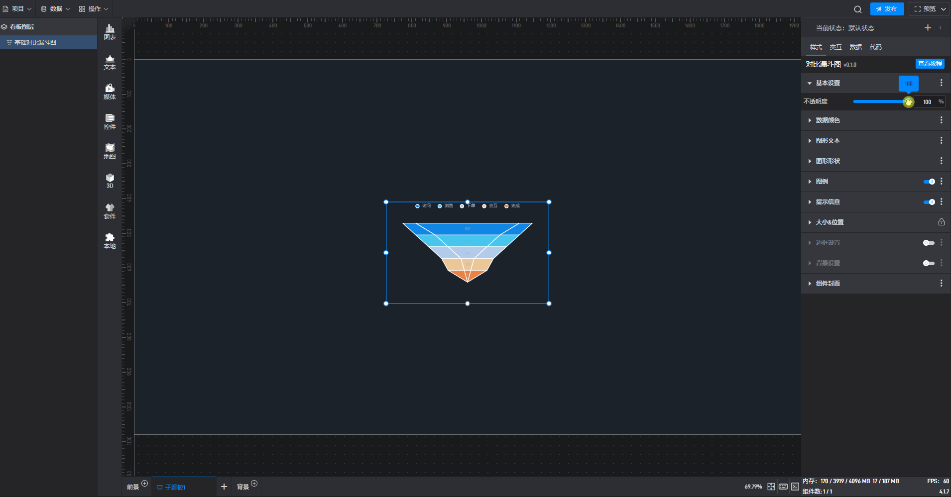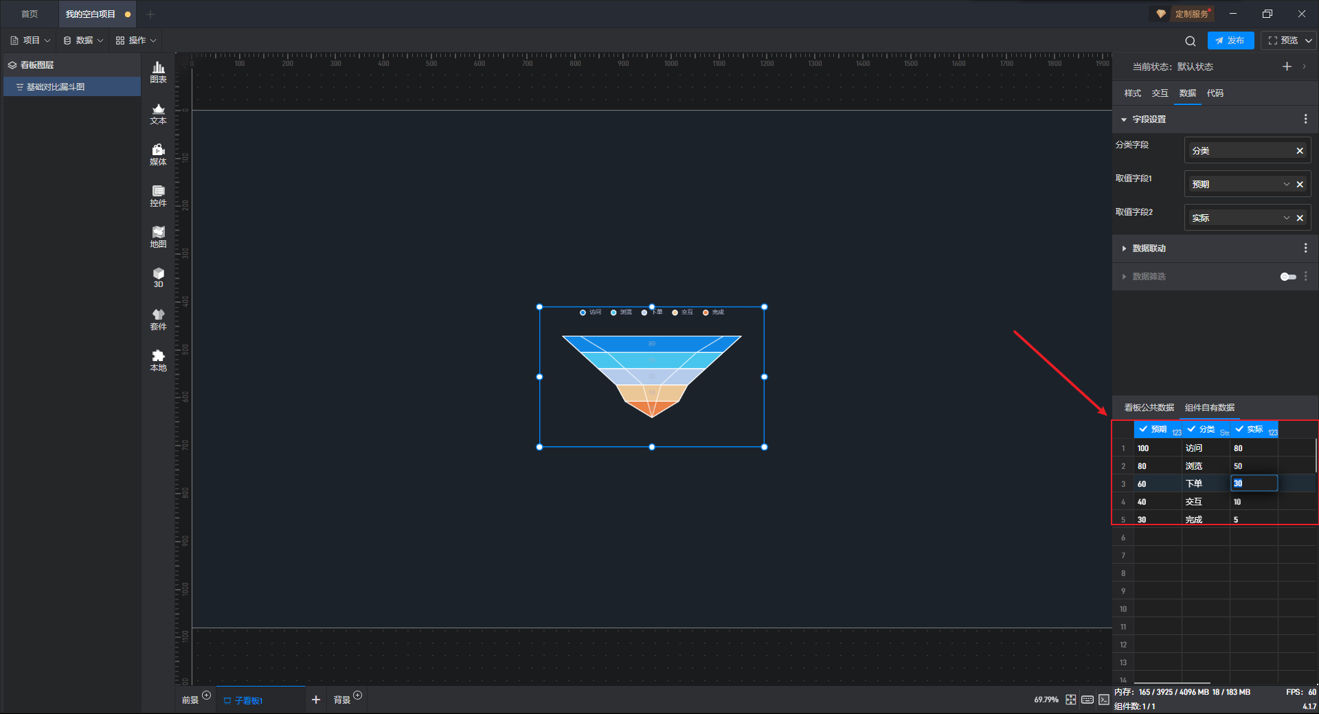 下面我们以基础对比漏斗图为例,为大家介绍一下组件的使用步骤:
