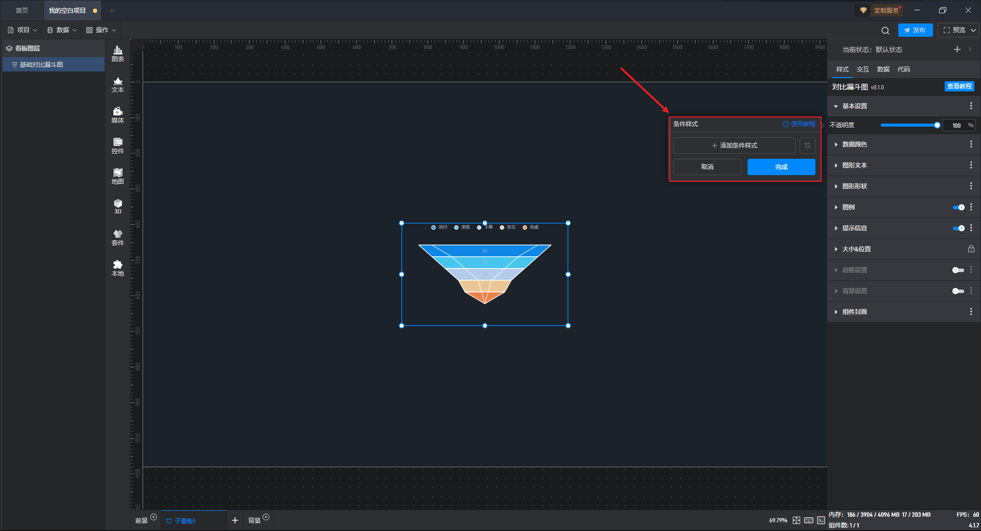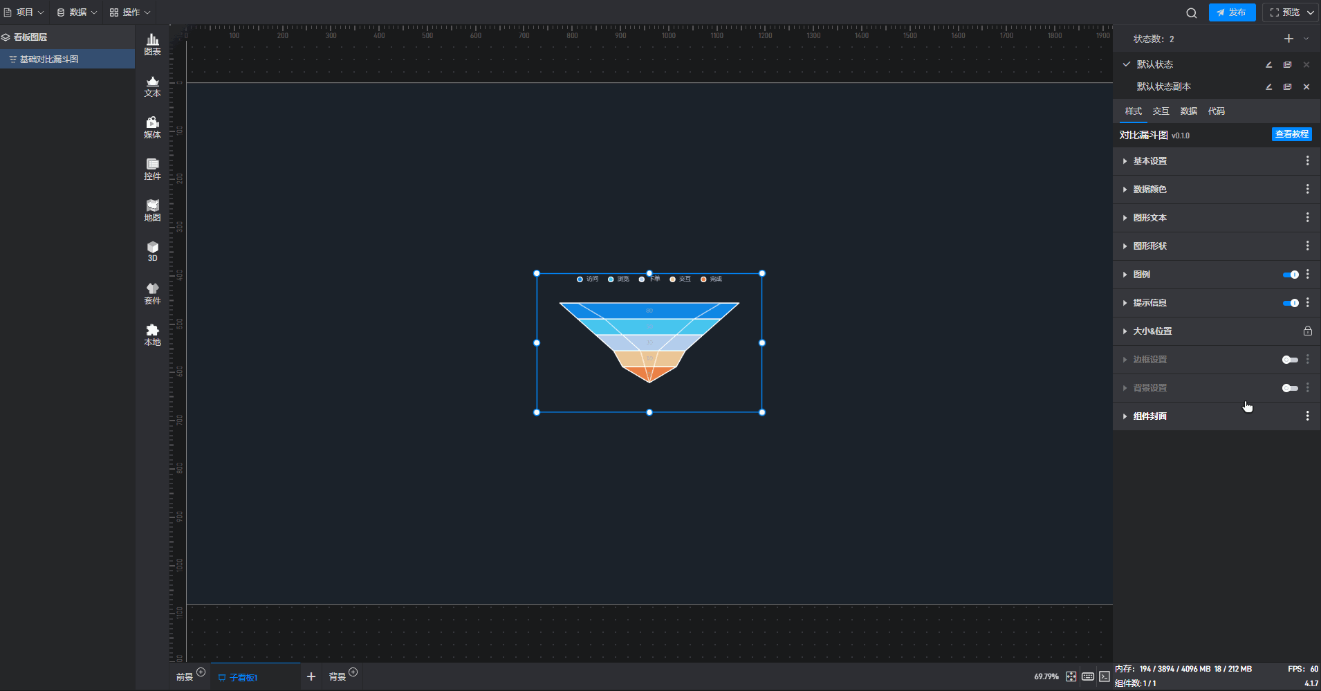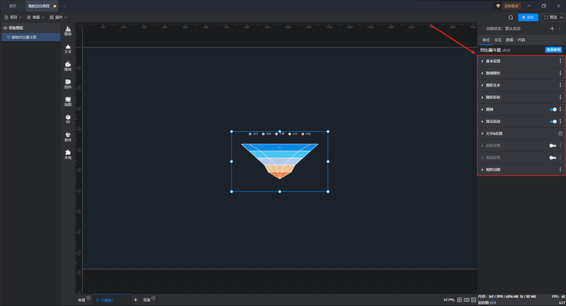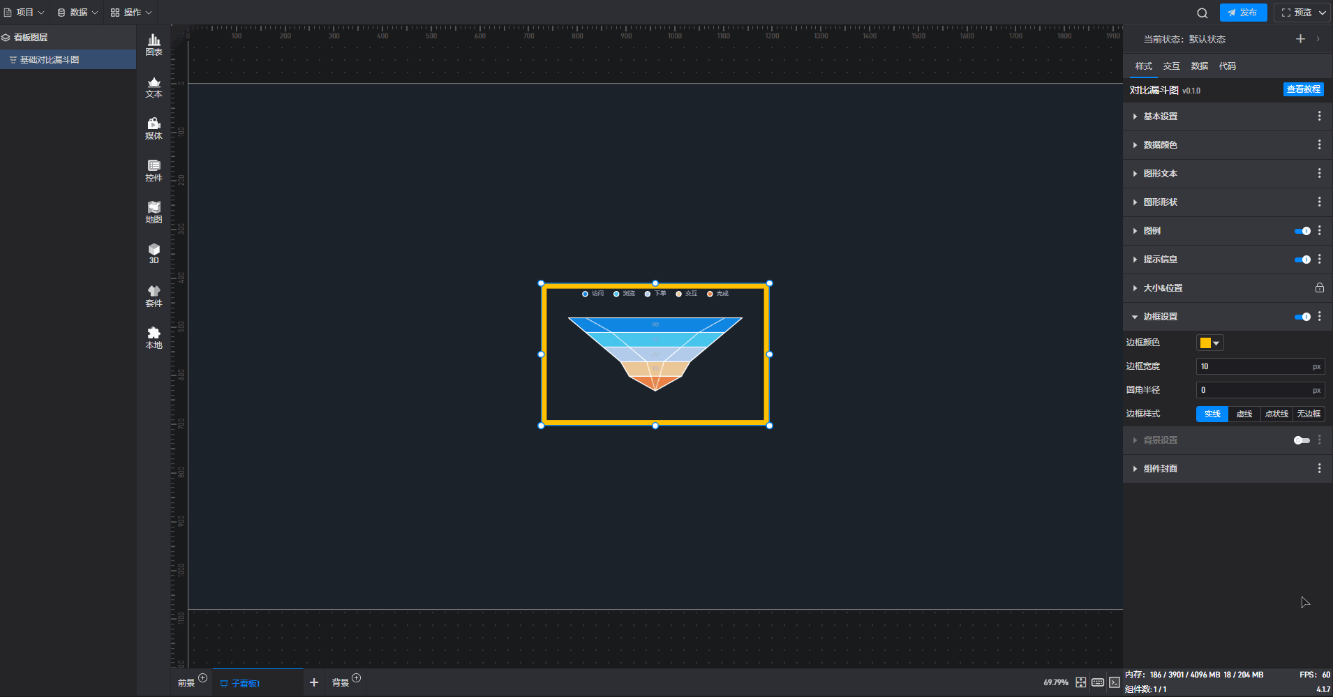 下面我们以基础对比漏斗图为例,为大家介绍一下组件的使用步骤: