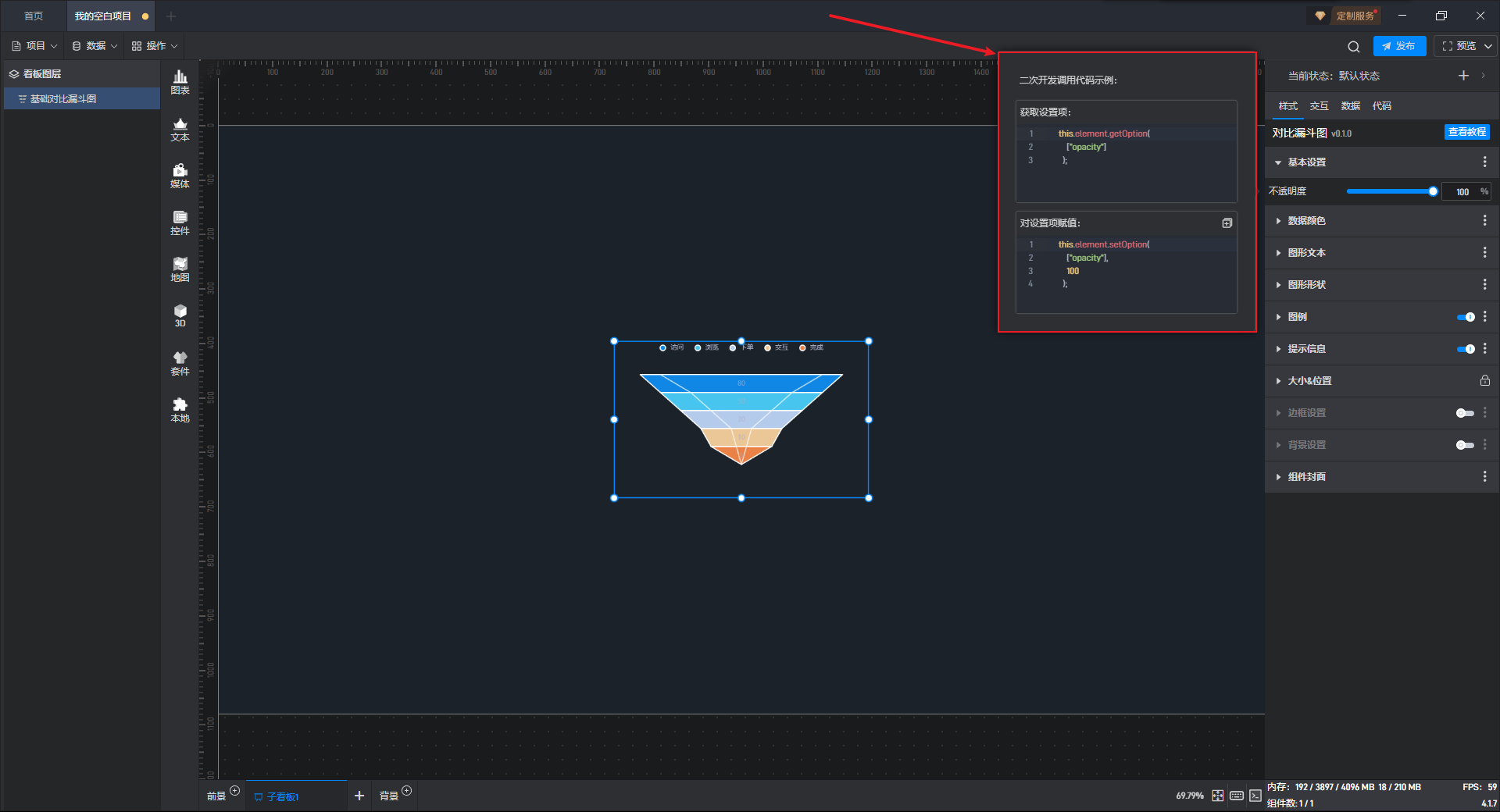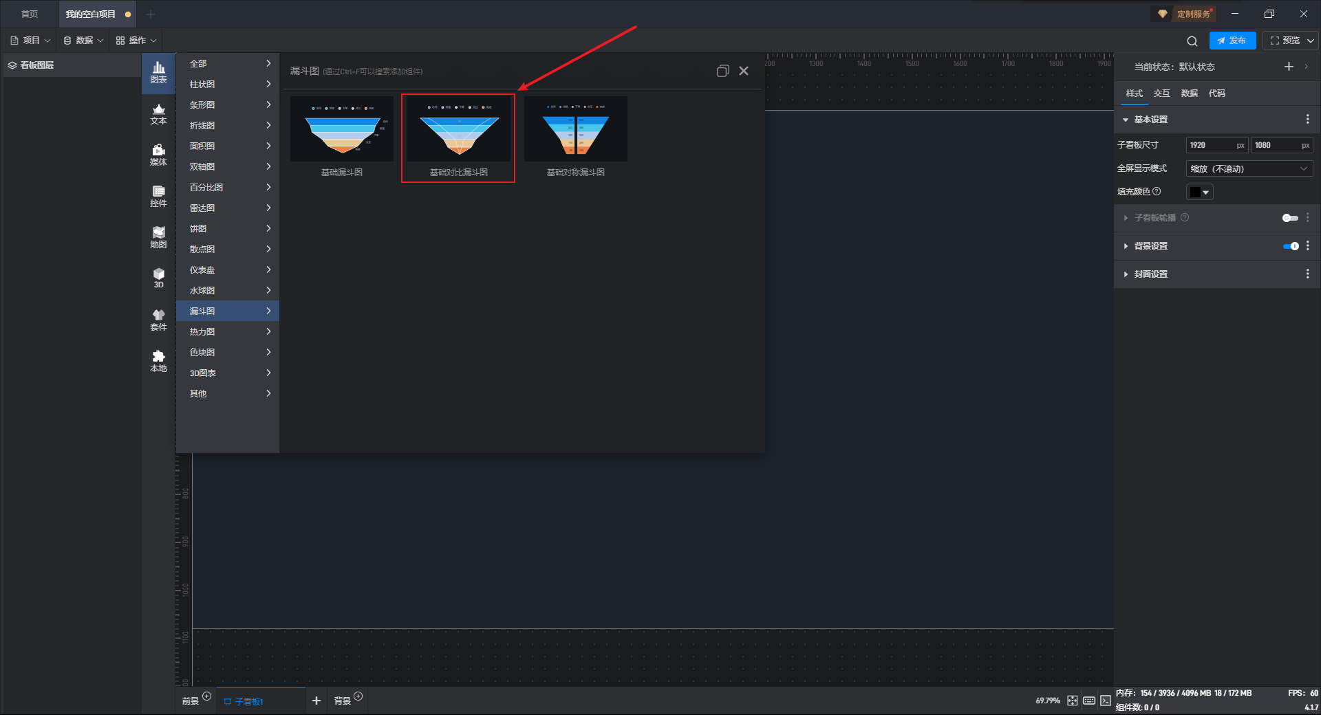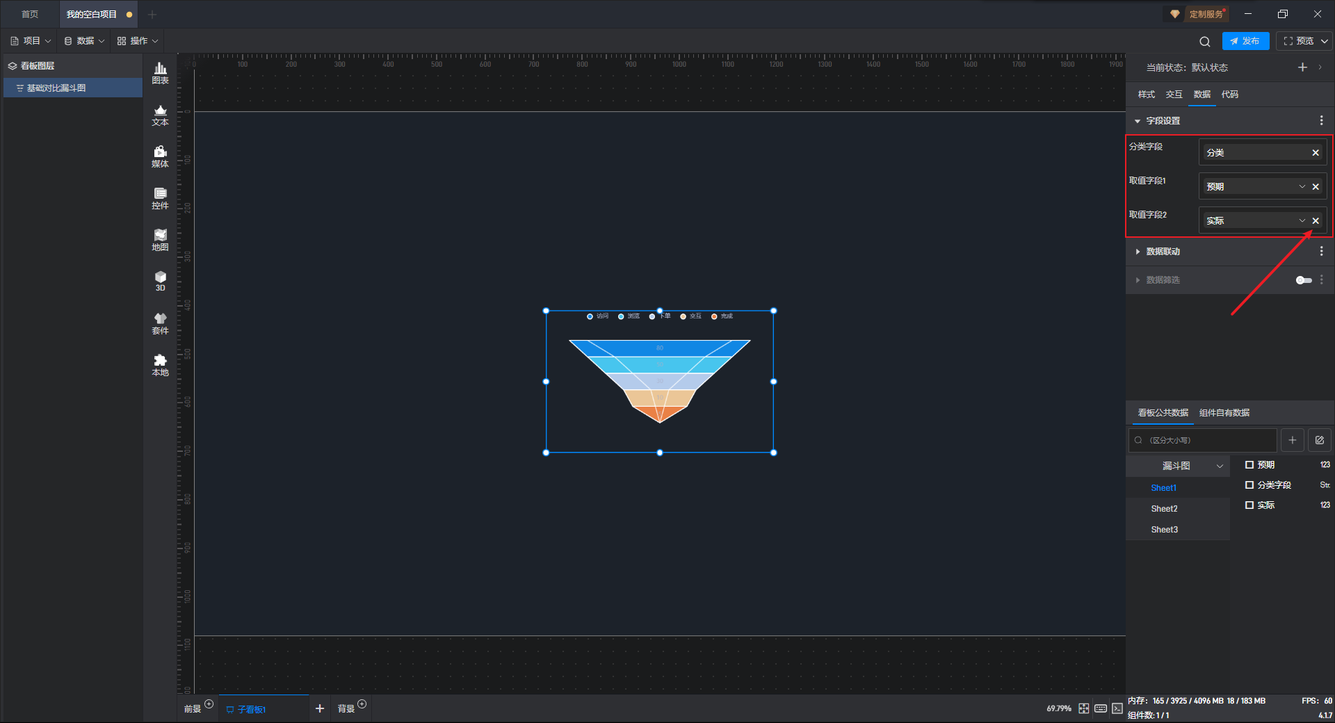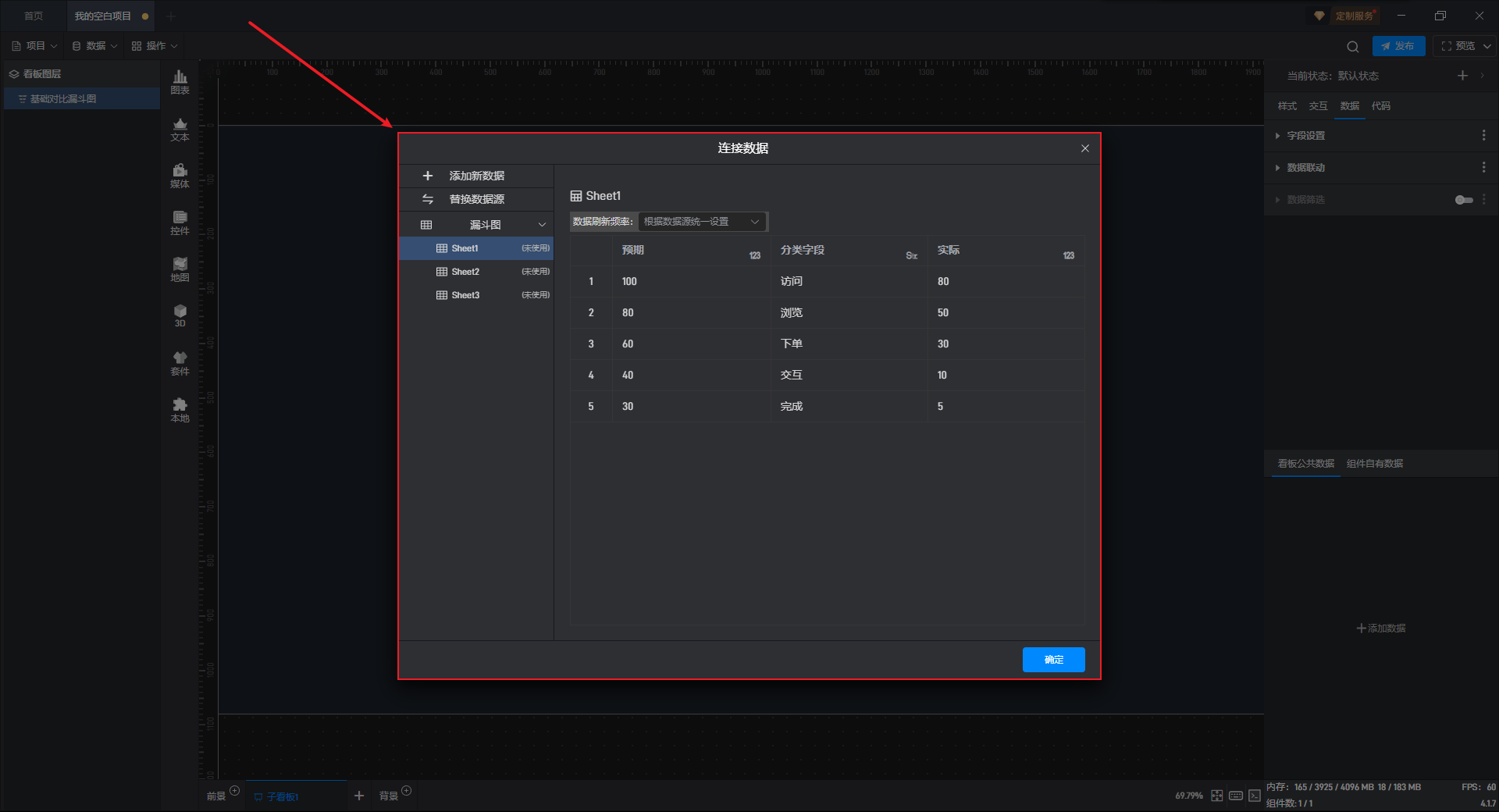 下面我们以基础对比漏斗图为例,为大家介绍一下组件的使用步骤: