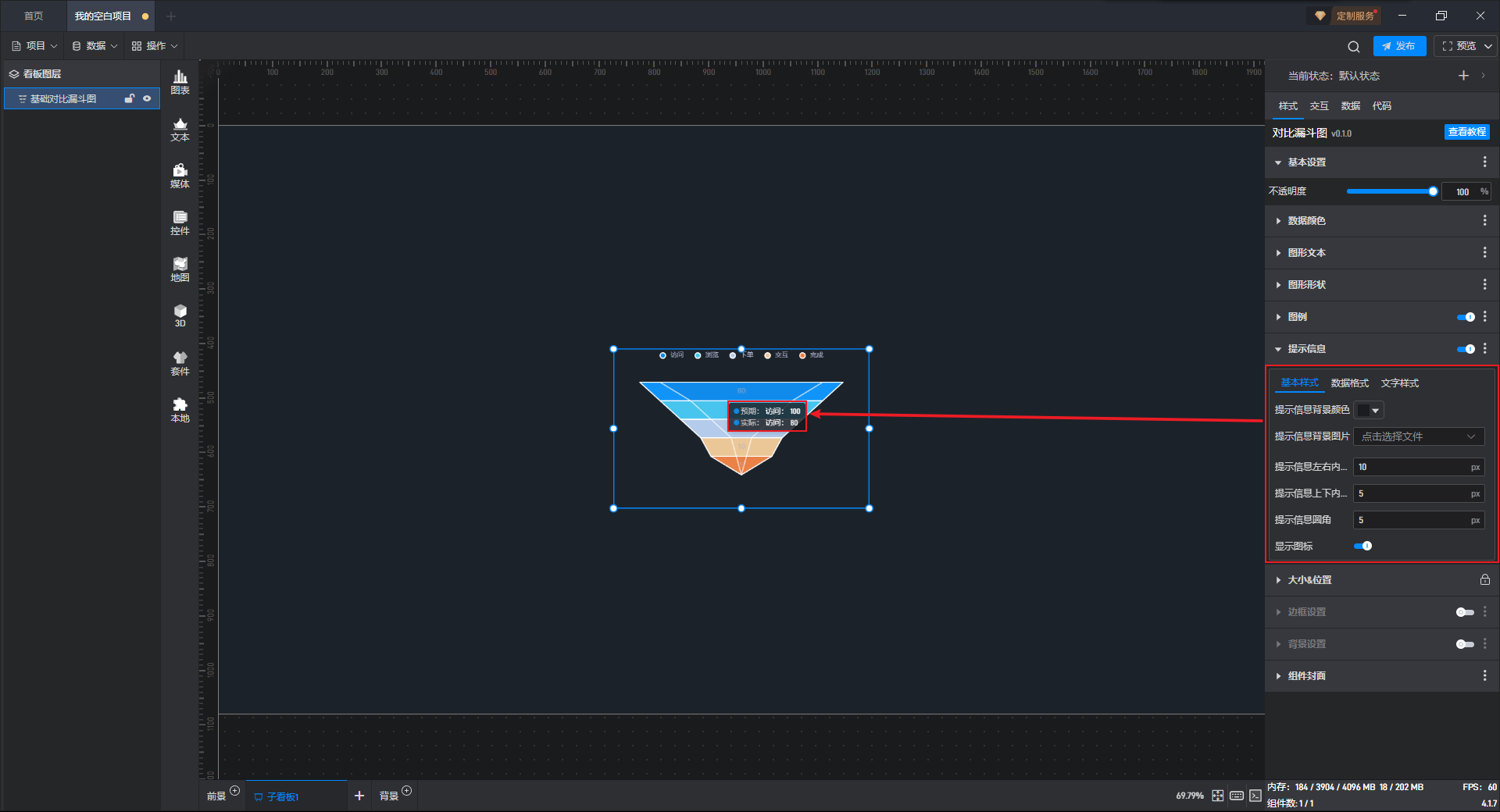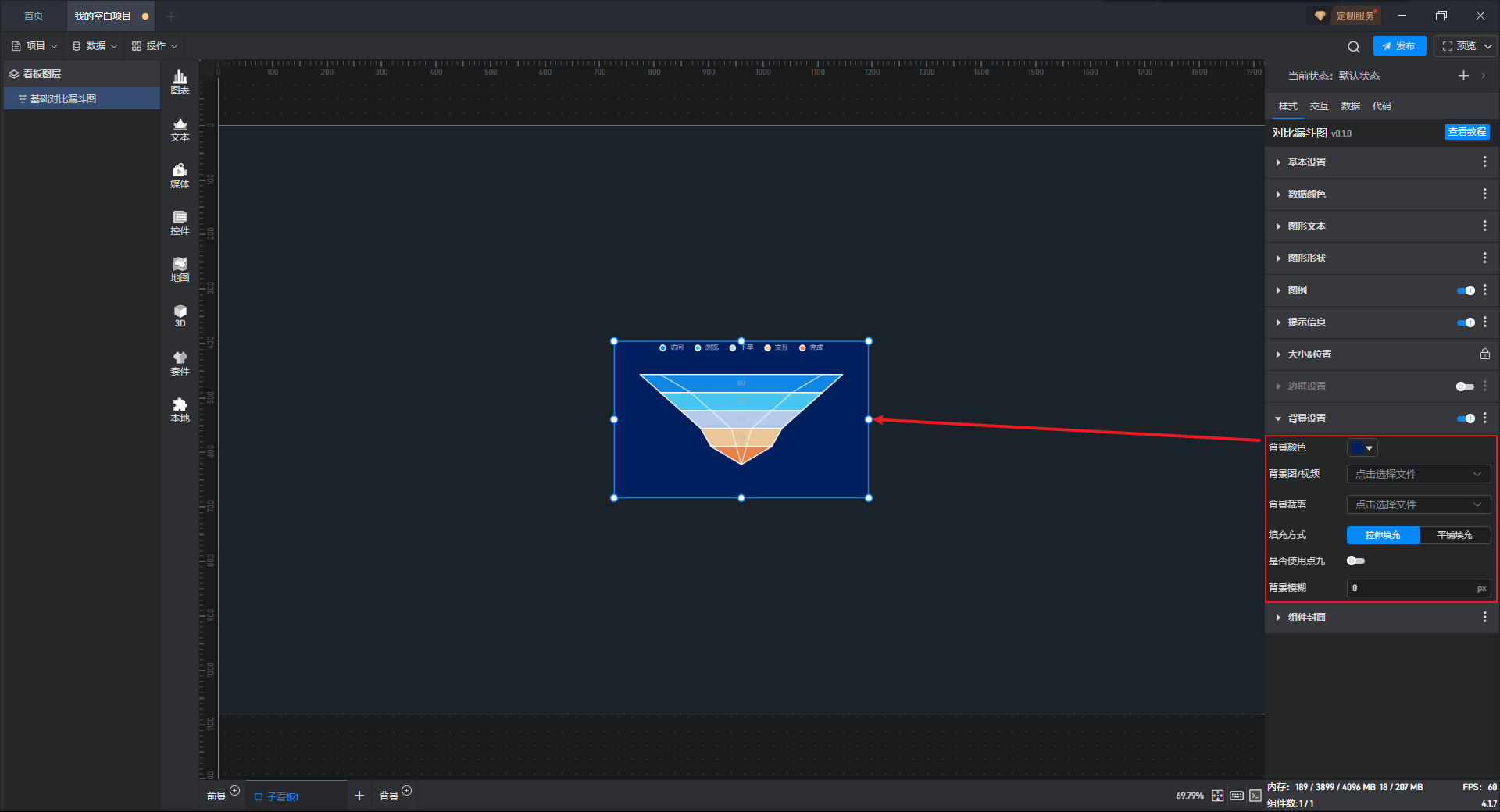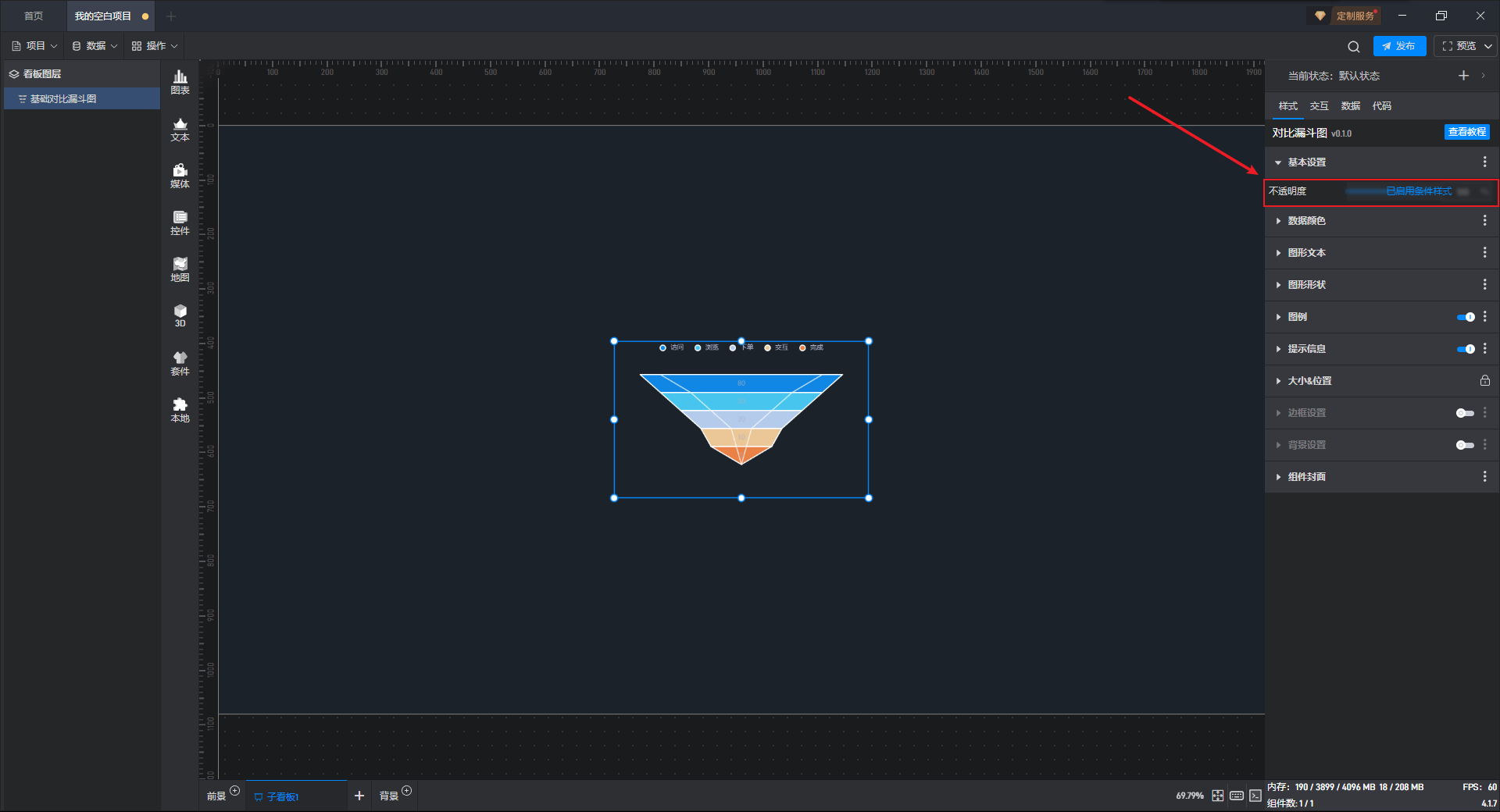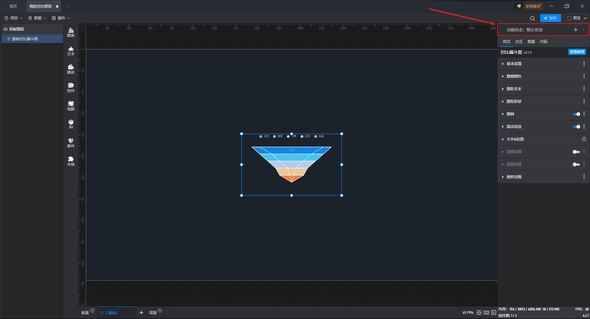下面我们以基础对比漏斗图为例,为大家介绍一下组件的使用步骤: