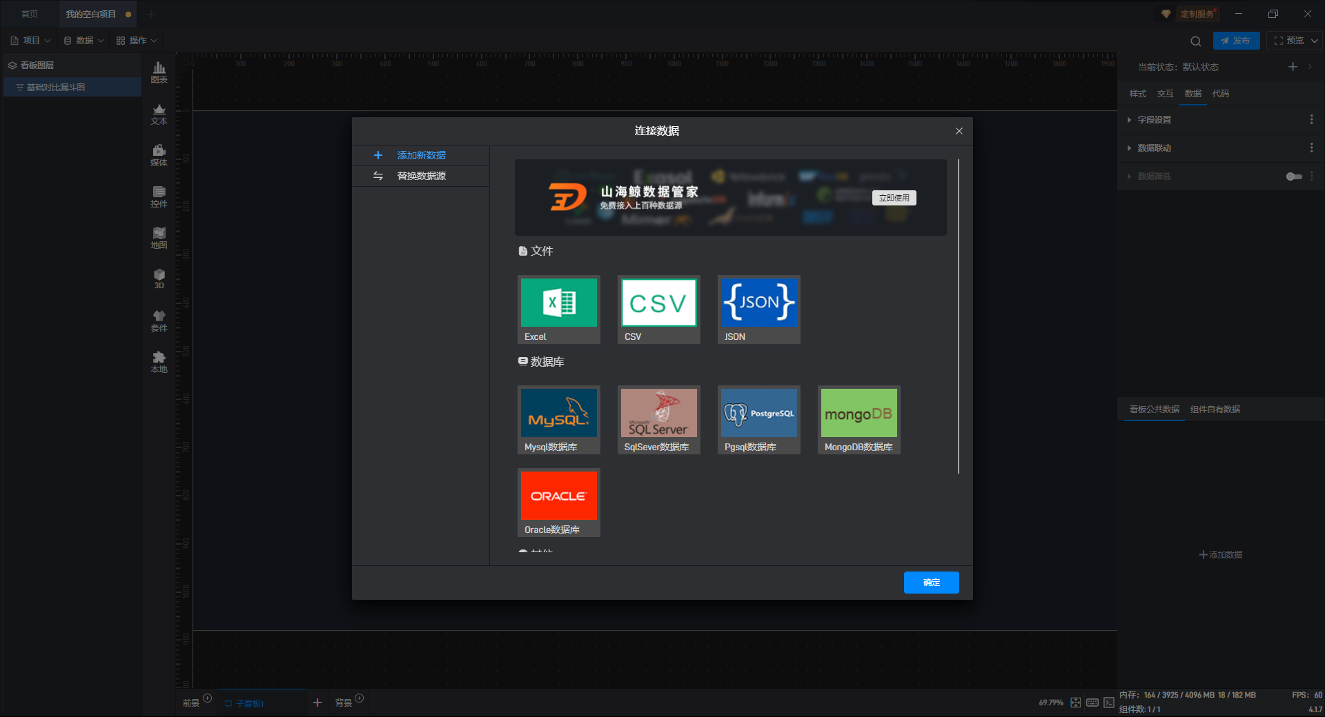 在连接数据弹窗中,我们选择对应的数据源类型。