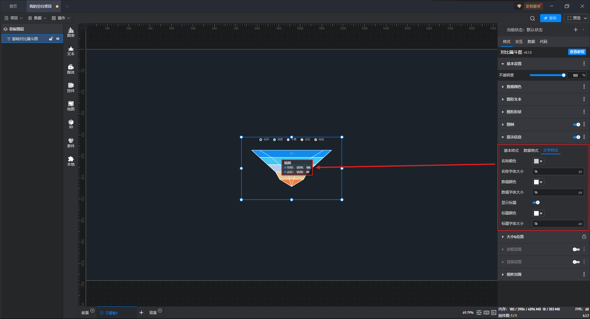 基础对比漏斗图 图形文本显示名称,如下图所示: