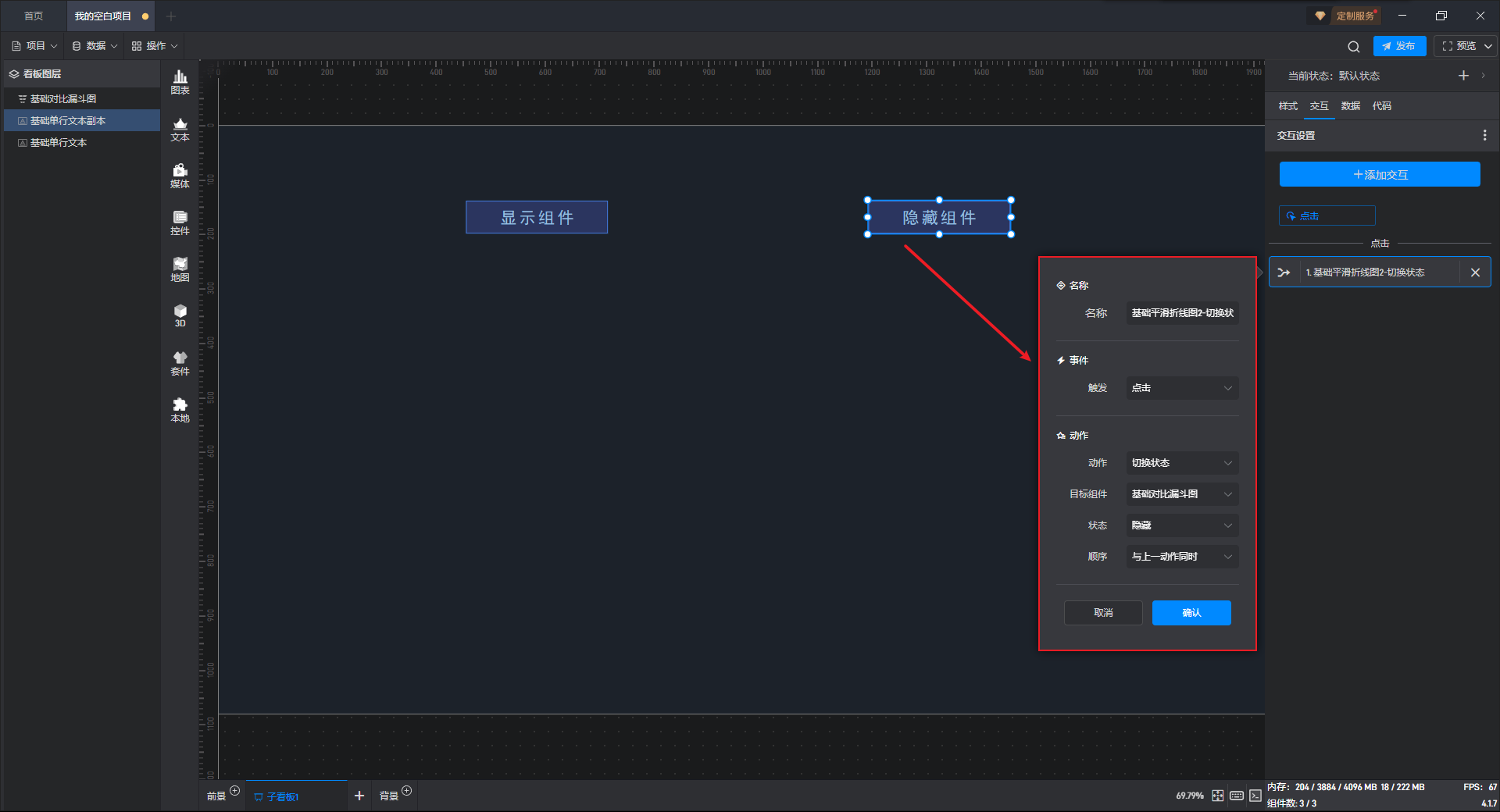 给隐藏按钮组件添加一个交互,点击后切换漏斗图组件到隐藏状态。