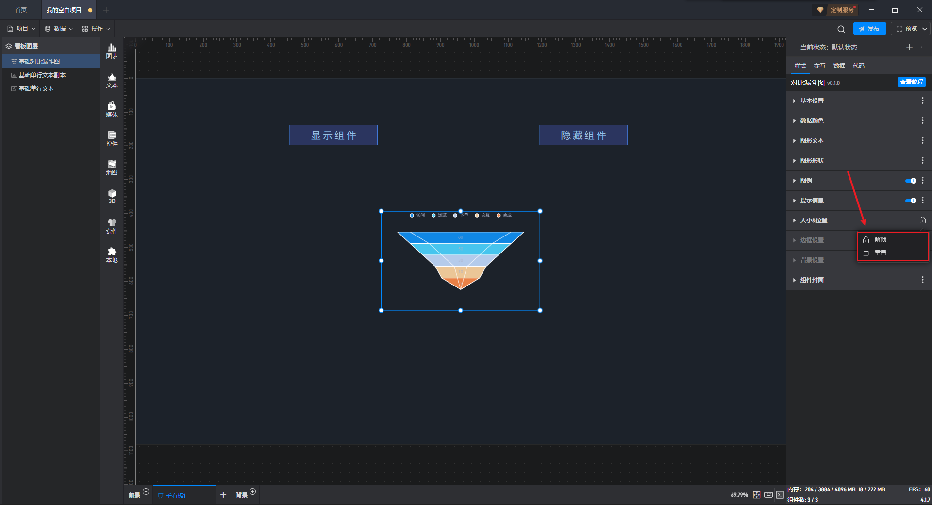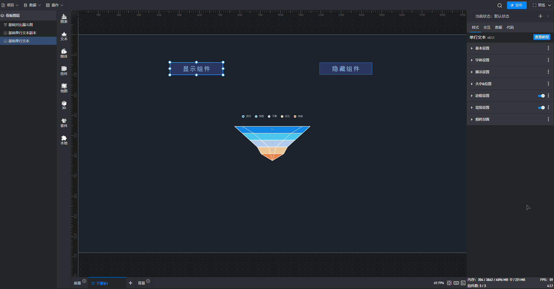 这样我们就实现了点击按钮切换漏斗图组件显示隐藏的效果了。