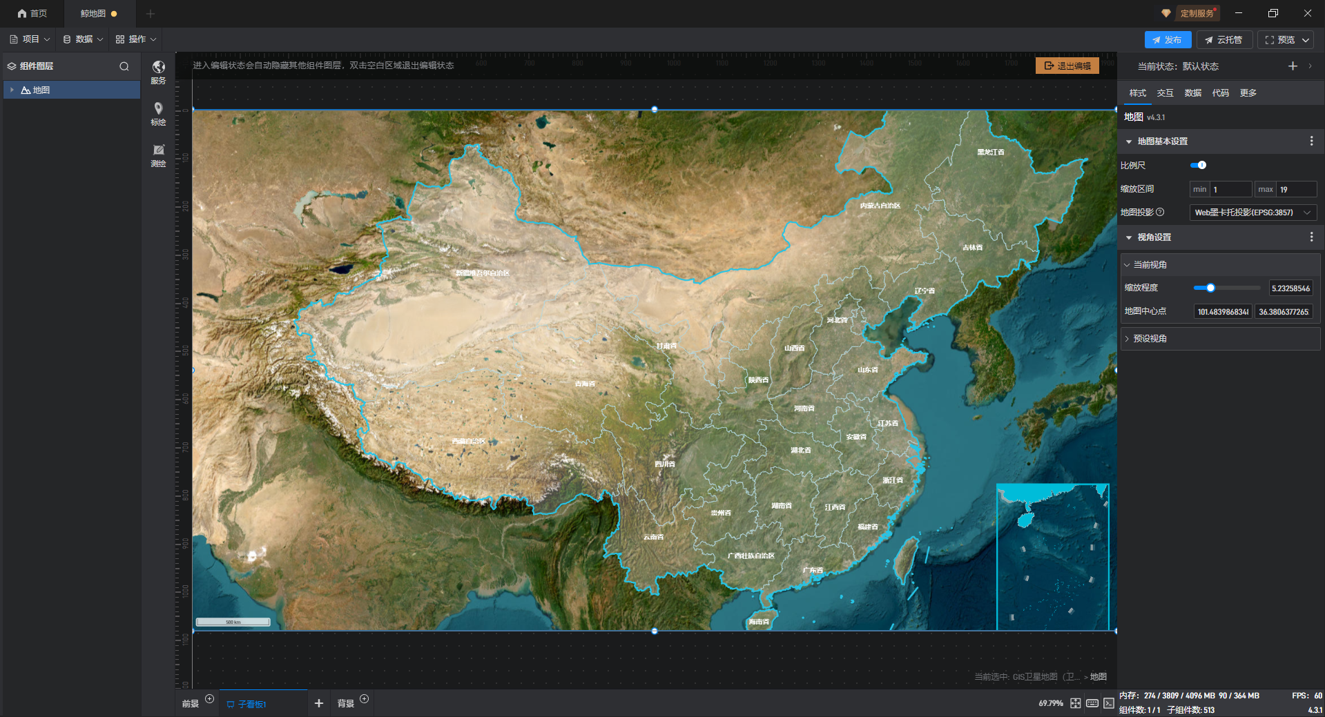 打开一个添加了“鲸地图”组件的项目,双击进入鲸地图的“编辑状态”。