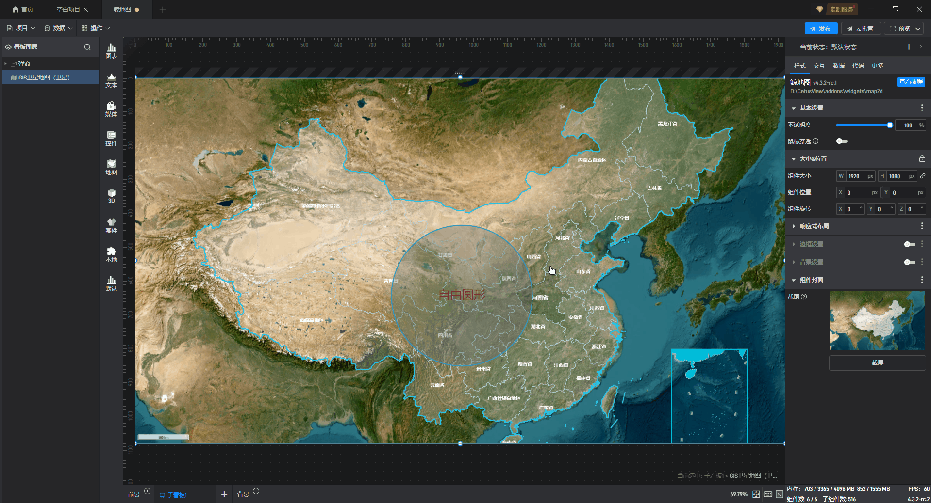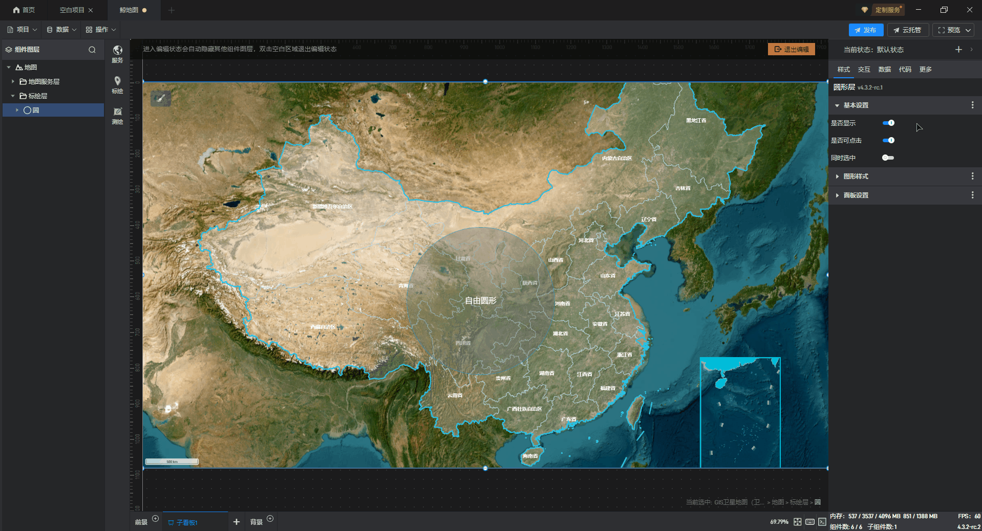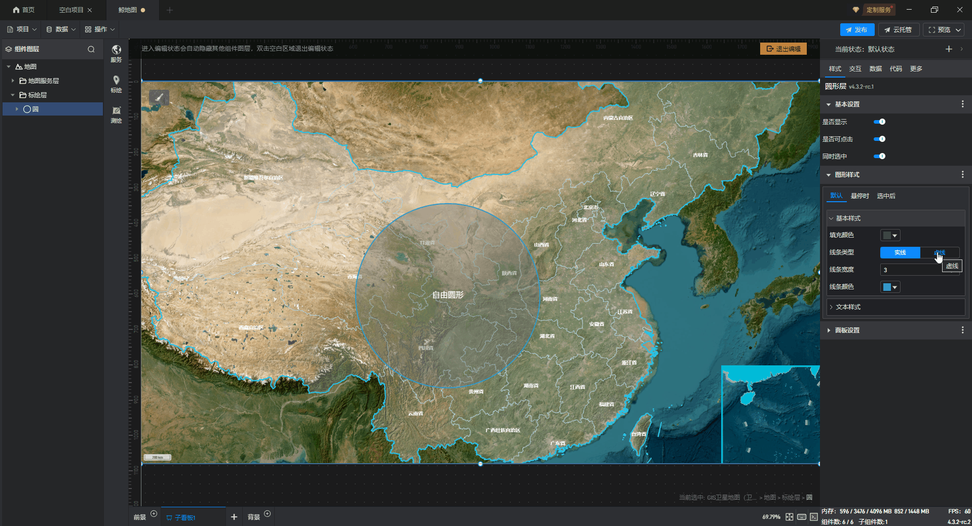 鲸地图可以在“标绘”中添加图形,而“圆”就是图形的一种类型,通过选择圆点的位置,然后使用鼠标缩放半径的大小即可生成一个圆。