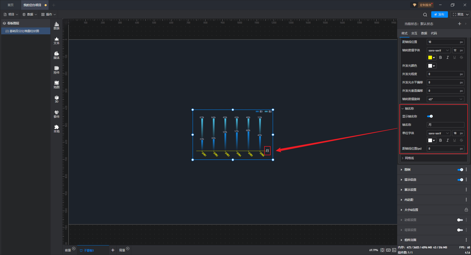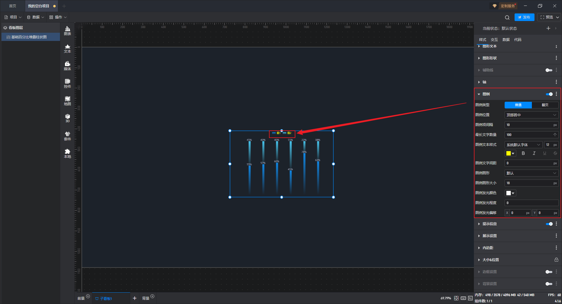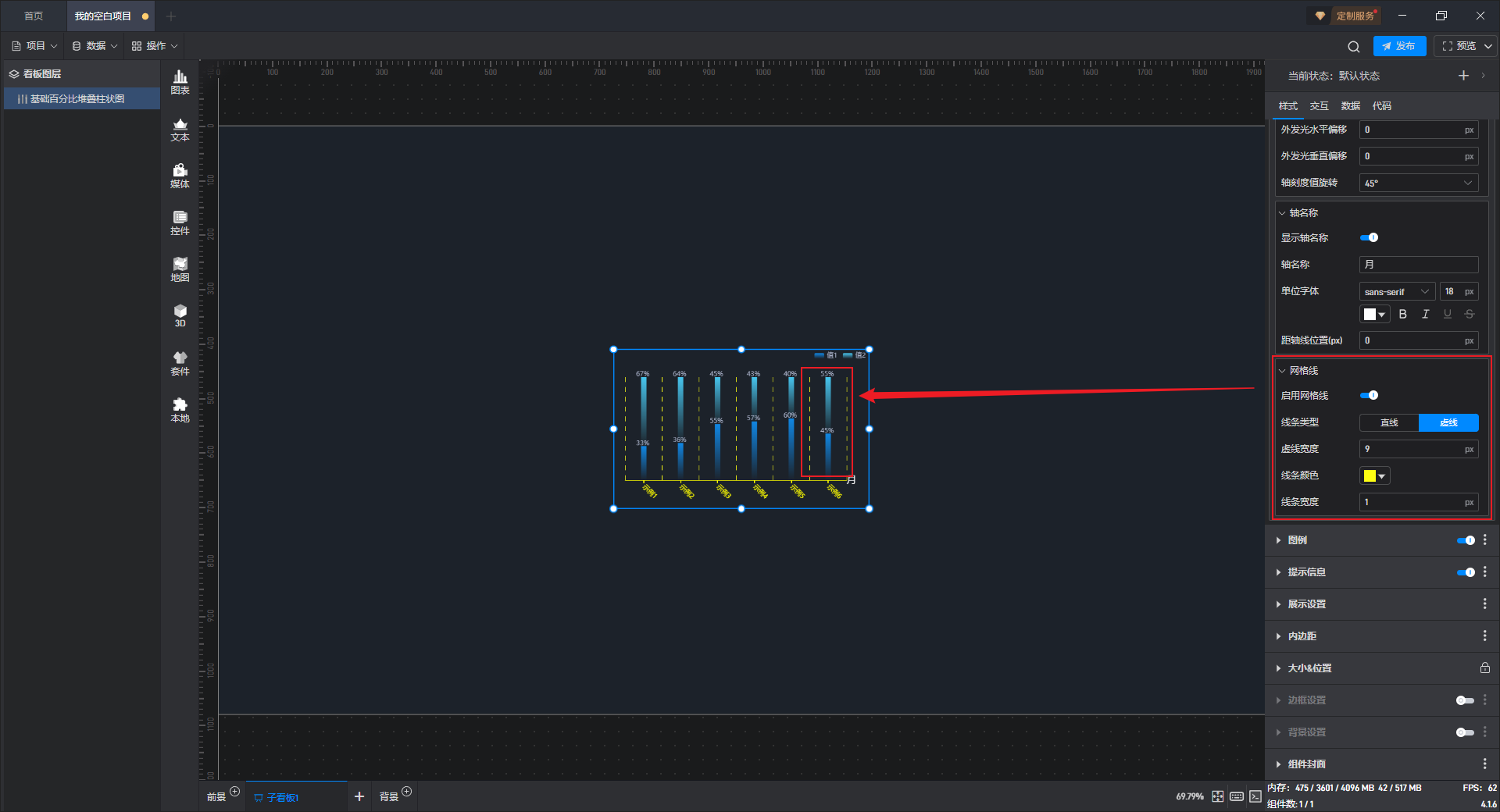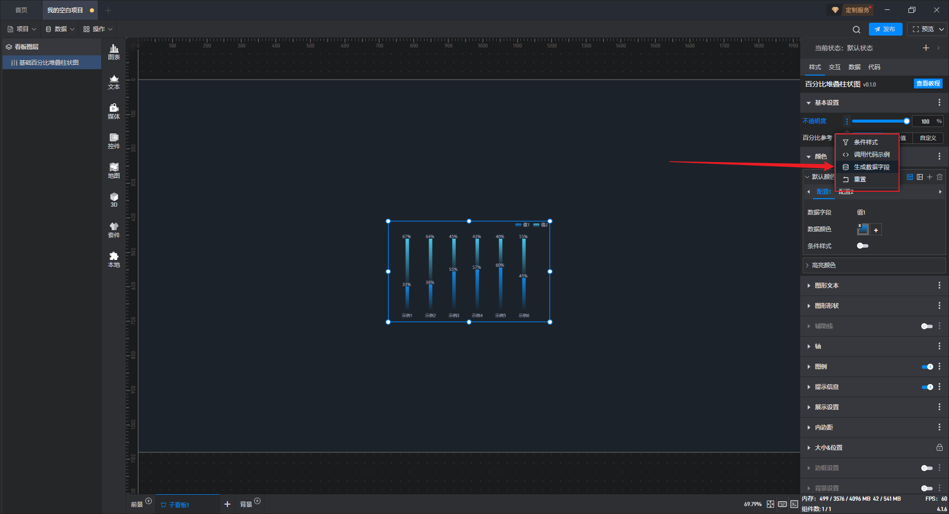 基础百分比堆叠柱状图本质是堆叠柱状图的一种预设样式,包含了柱状图组件所有的功能。