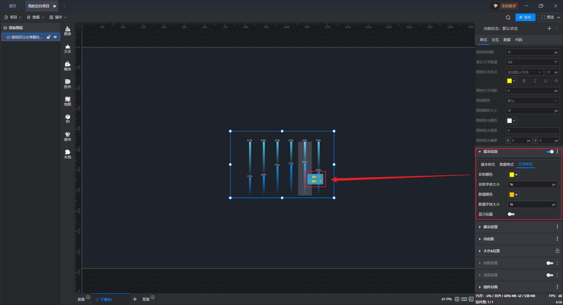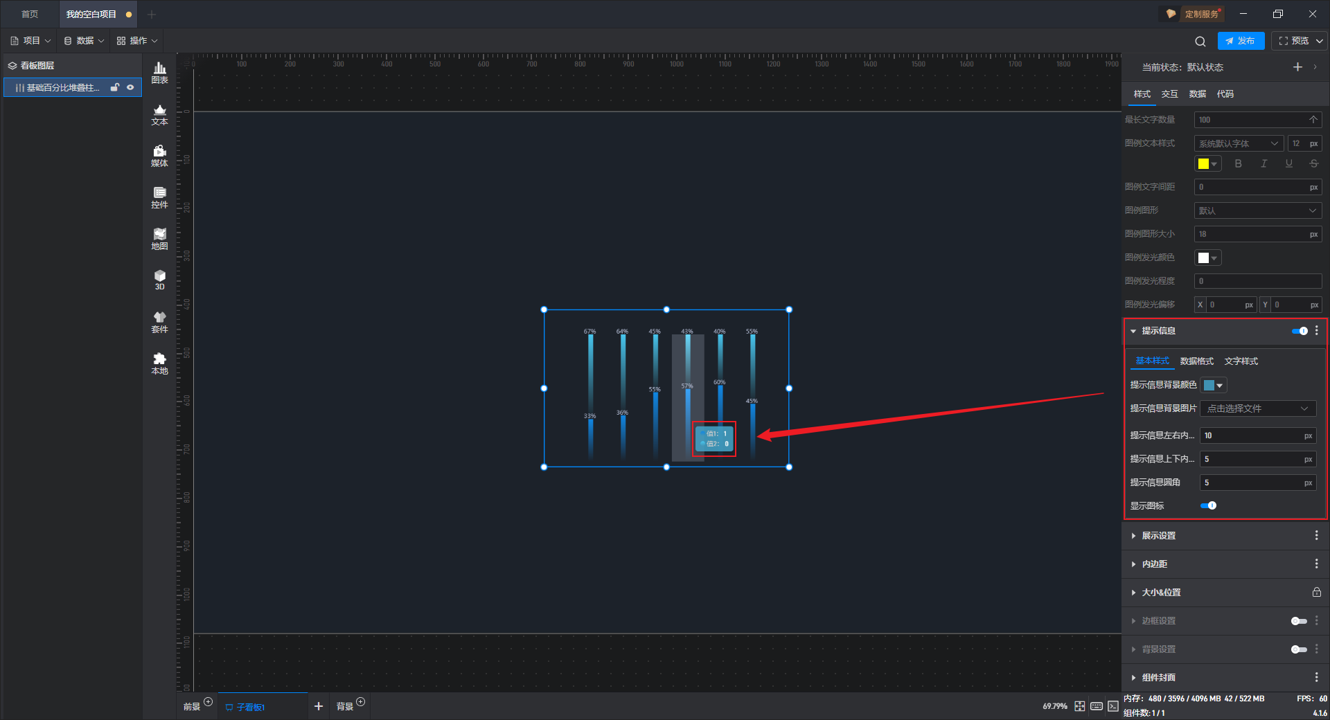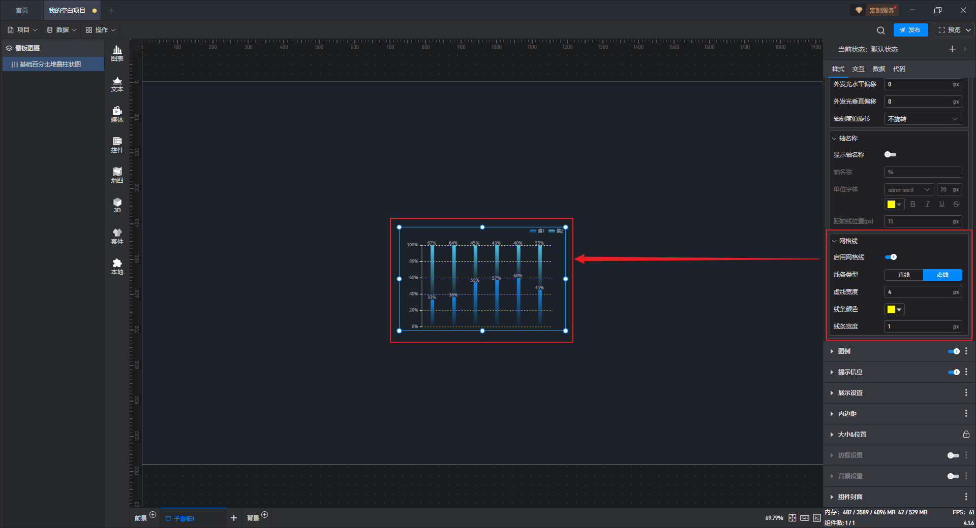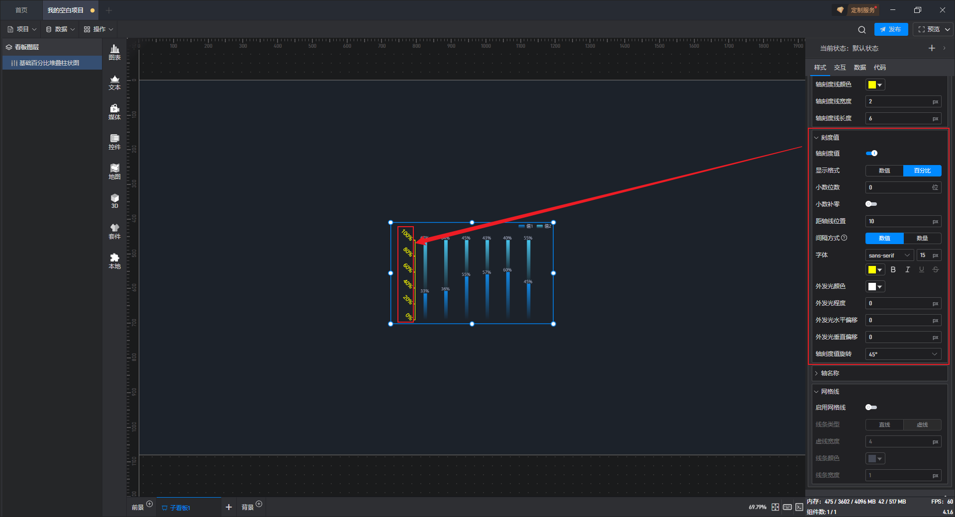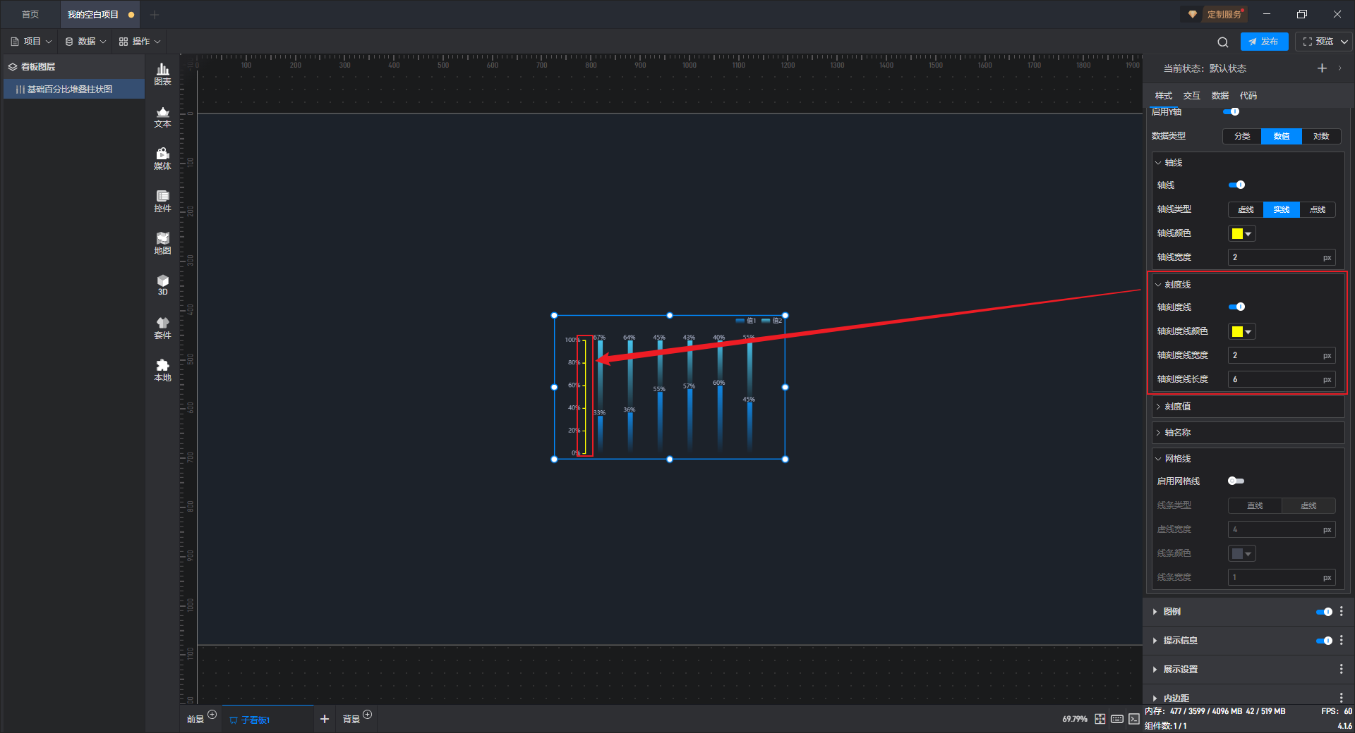 基础百分比堆叠柱状图本质是堆叠柱状图的一种预设样式,包含了柱状图组件所有的功能。