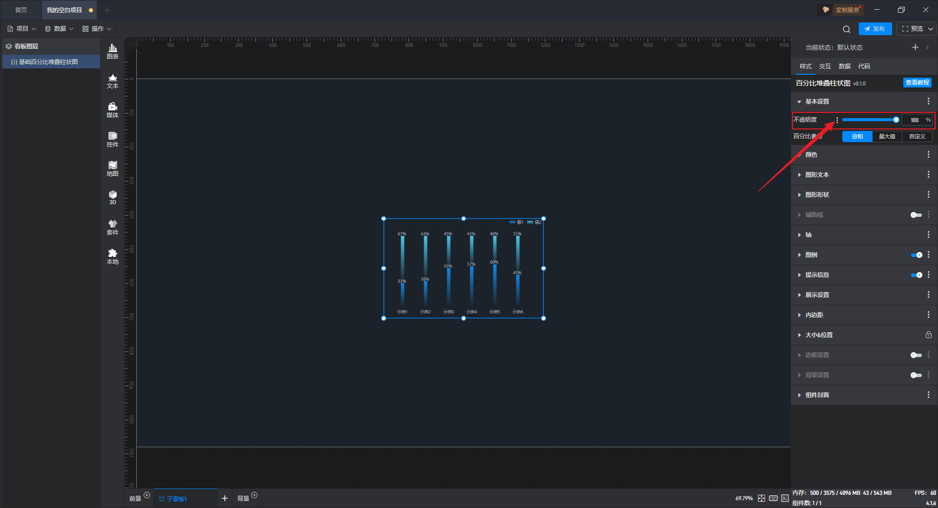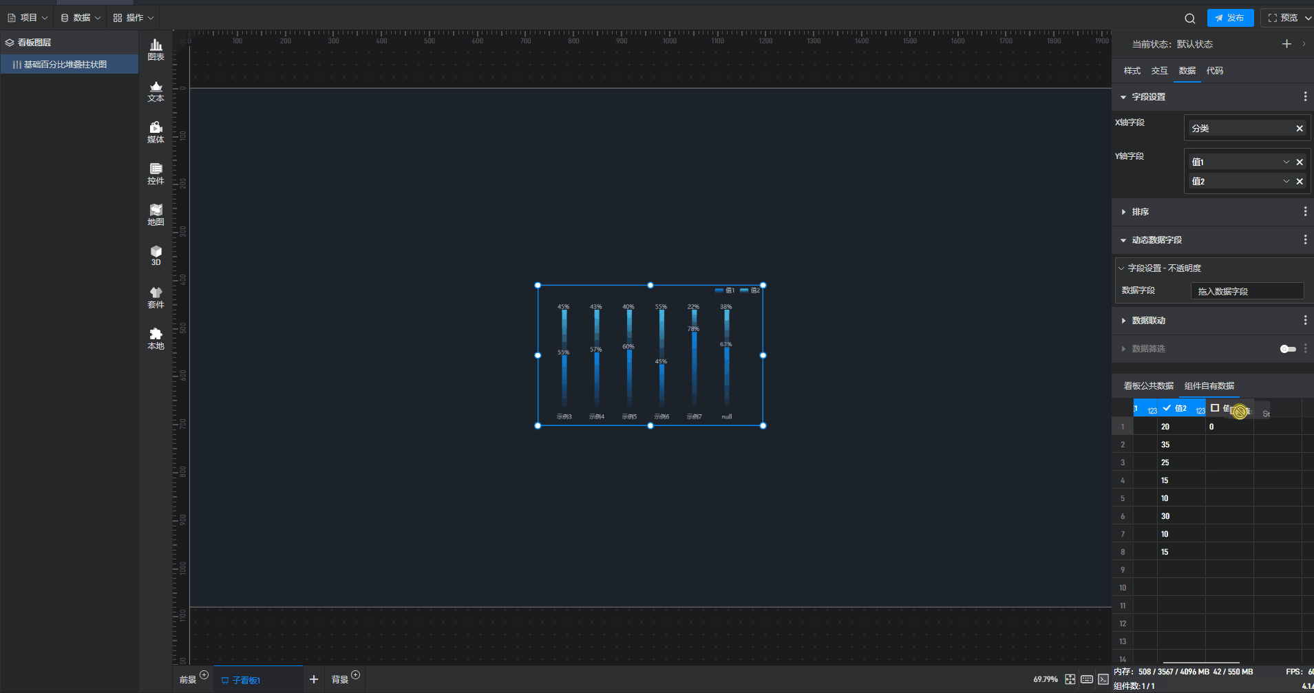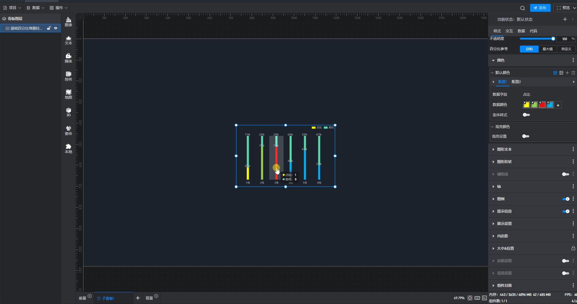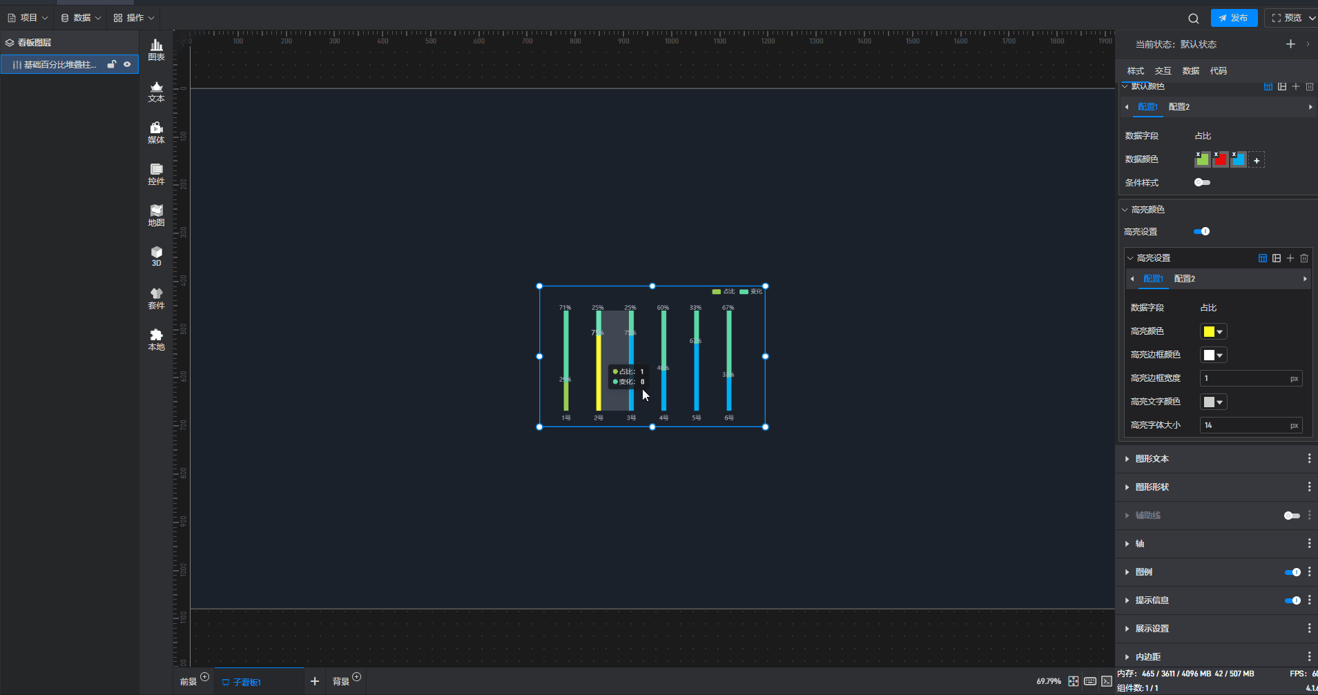 这是一个没有开启“高亮设置”按钮的基础百分比堆叠柱状图组件: