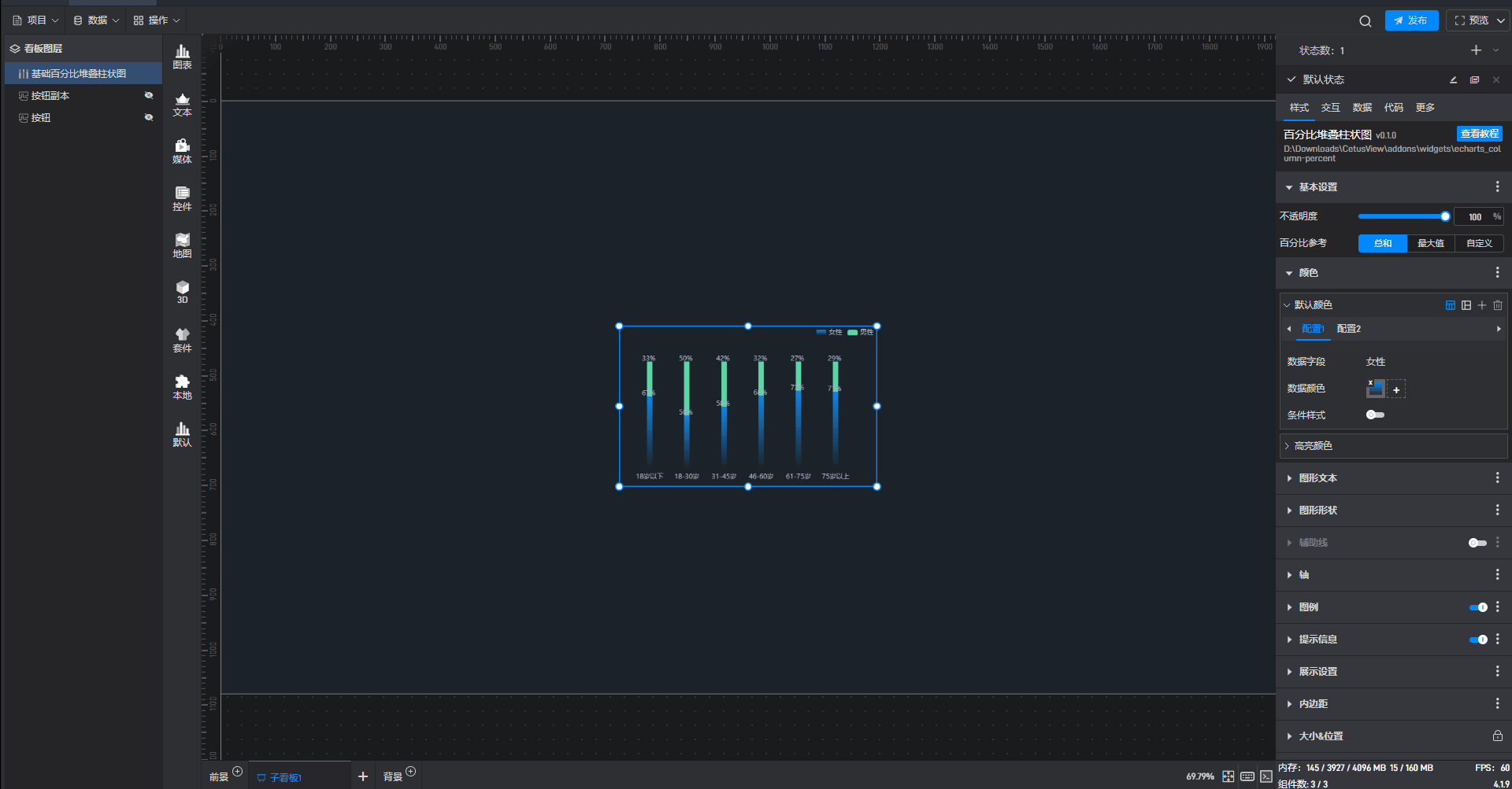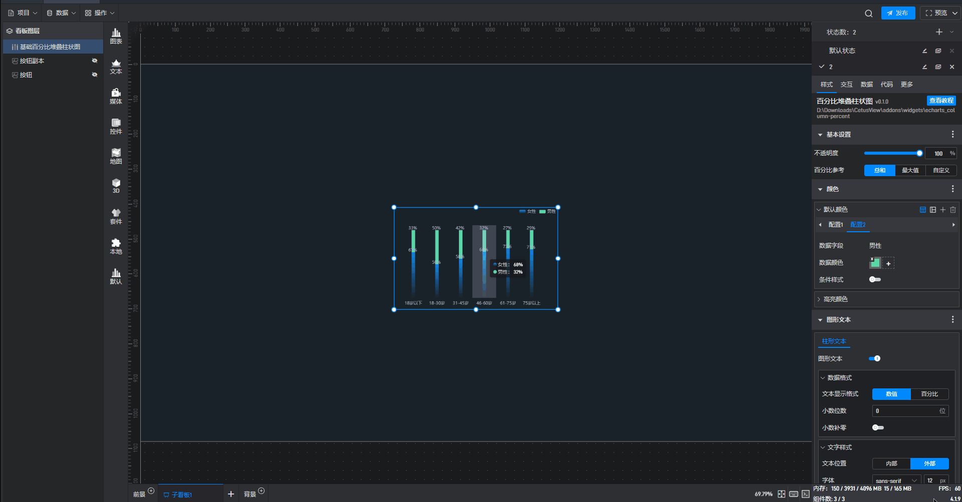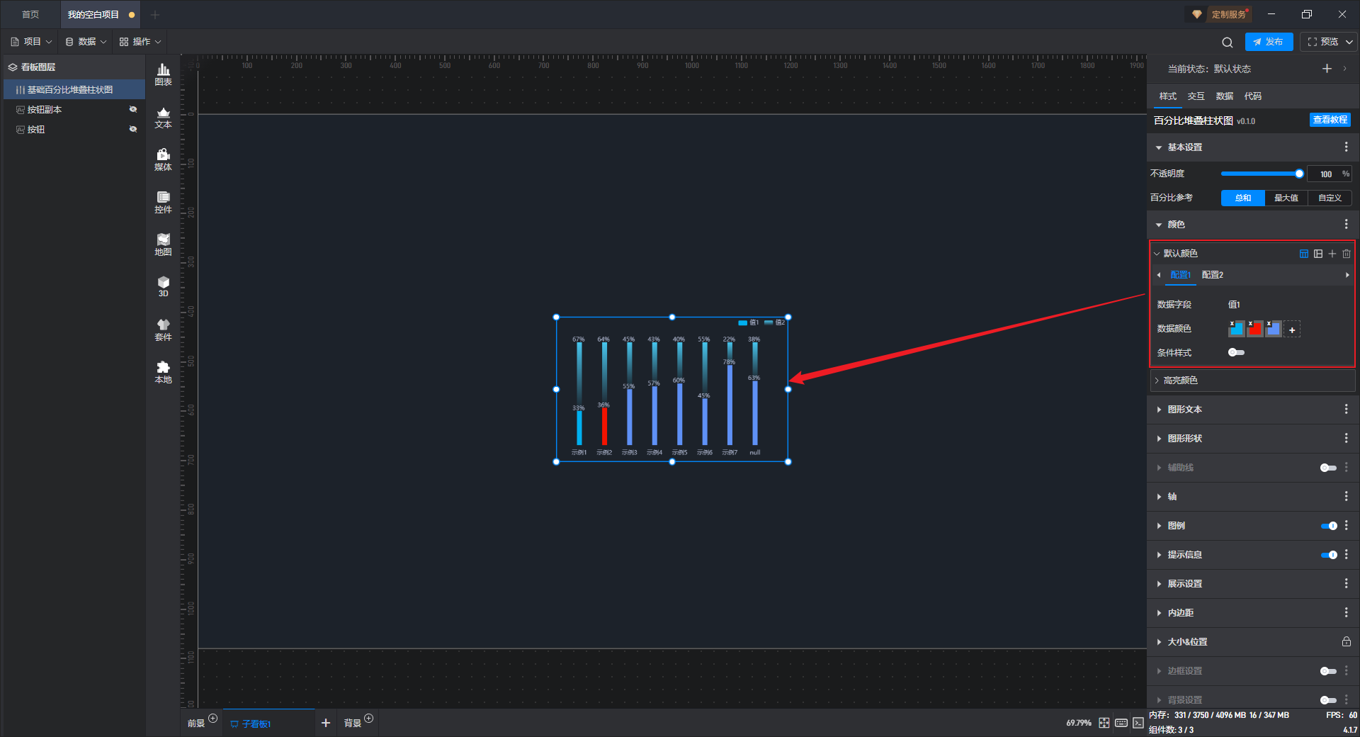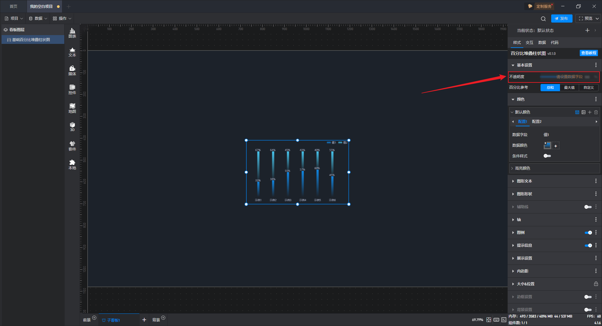 这是一个没有开启“高亮设置”按钮的基础百分比堆叠柱状图组件: