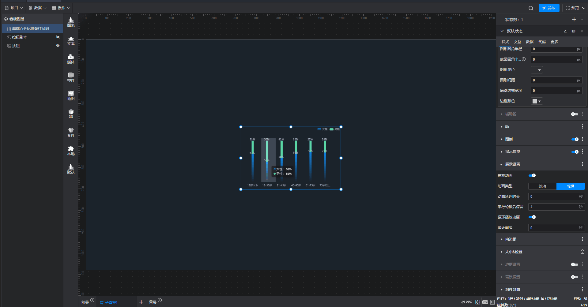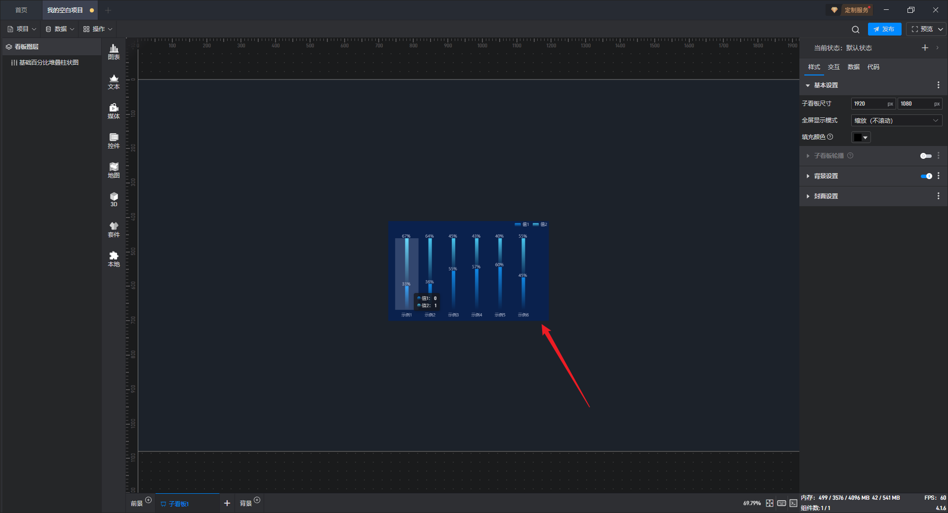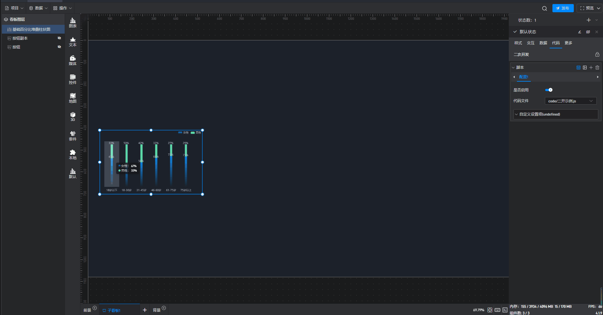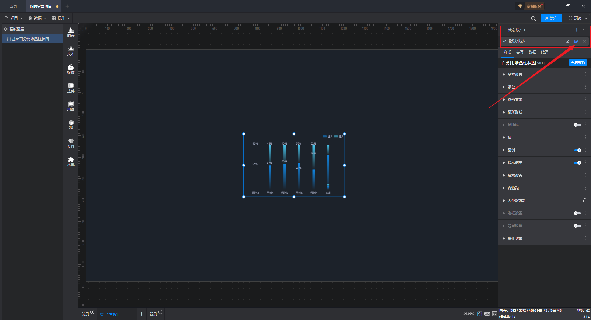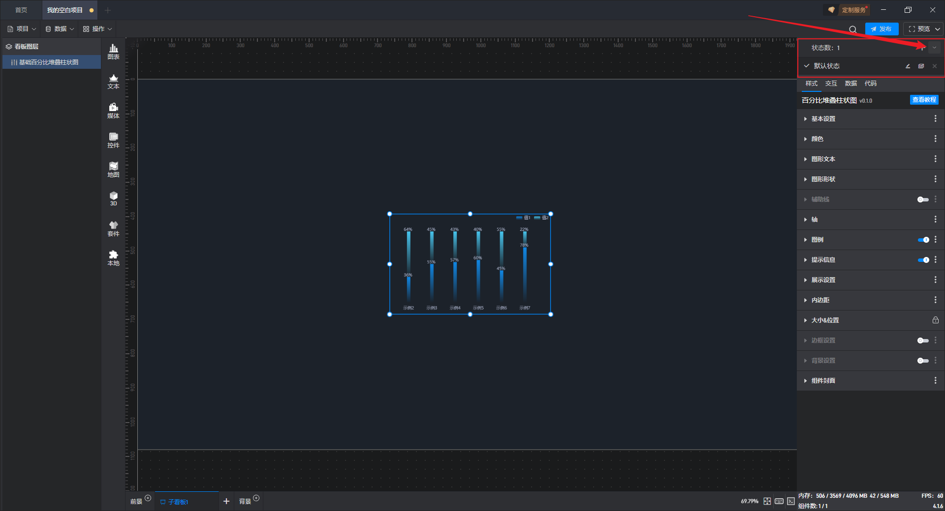 这是一个没有开启“高亮设置”按钮的基础百分比堆叠柱状图组件: