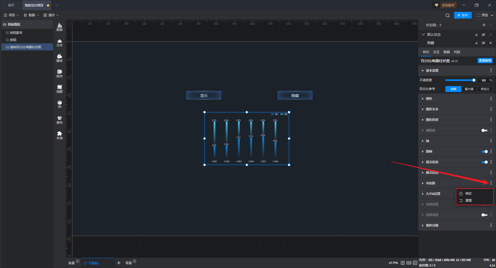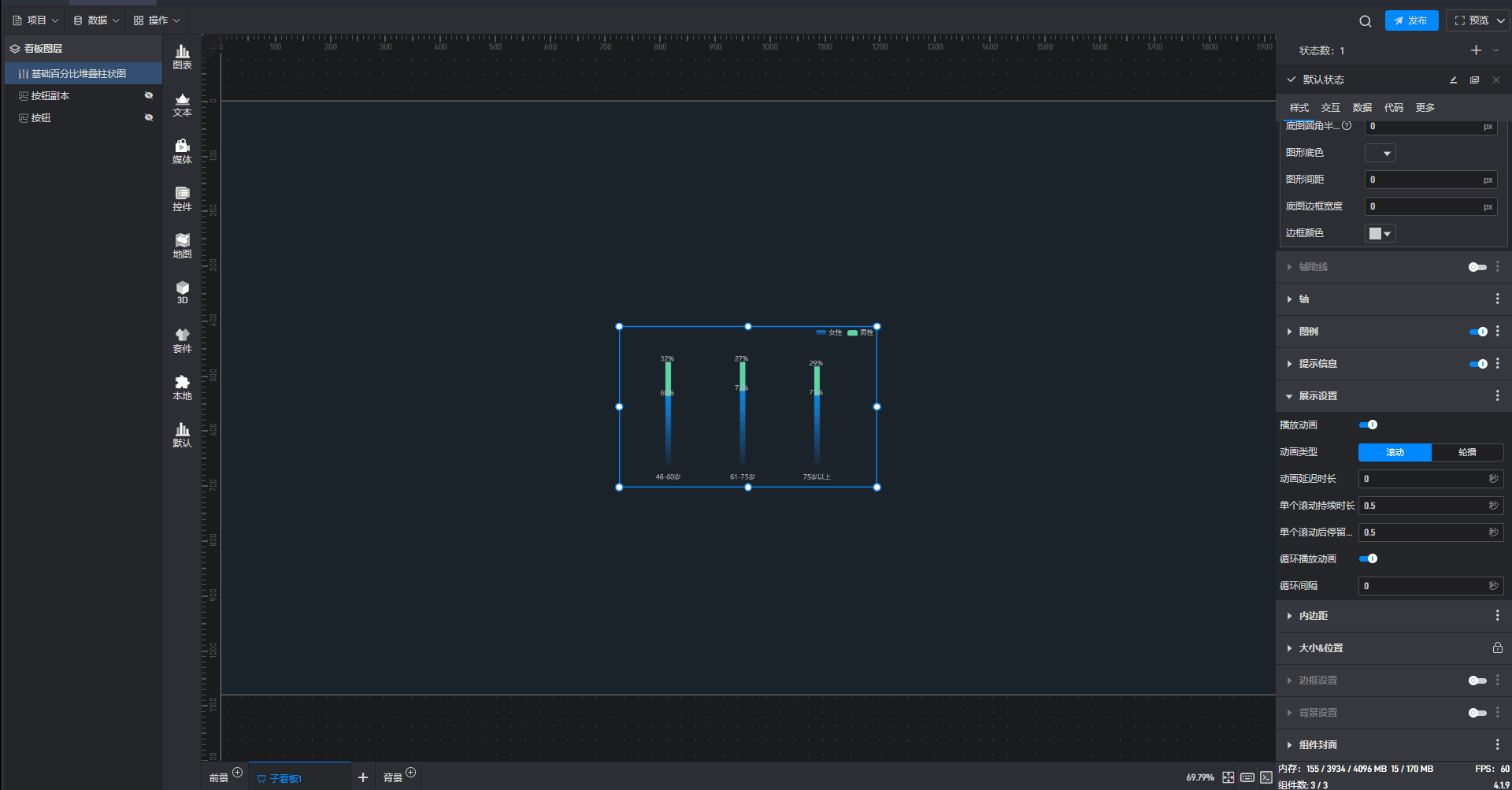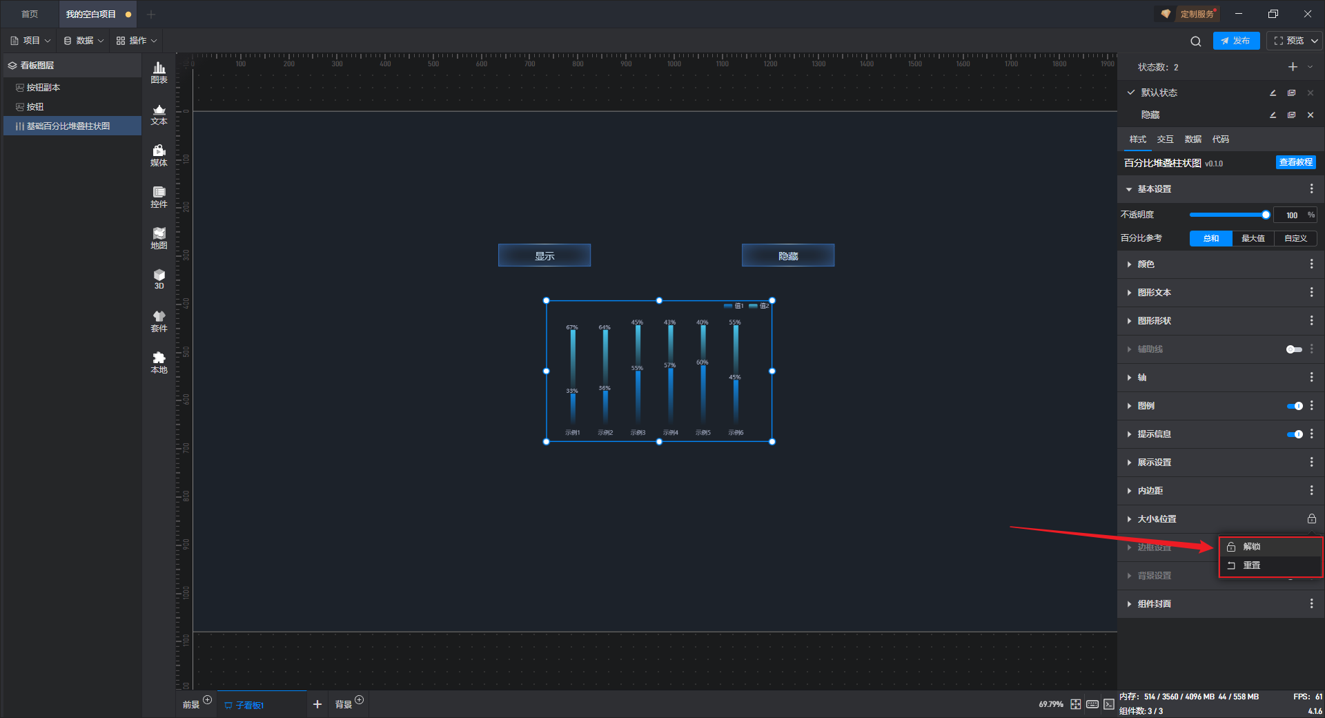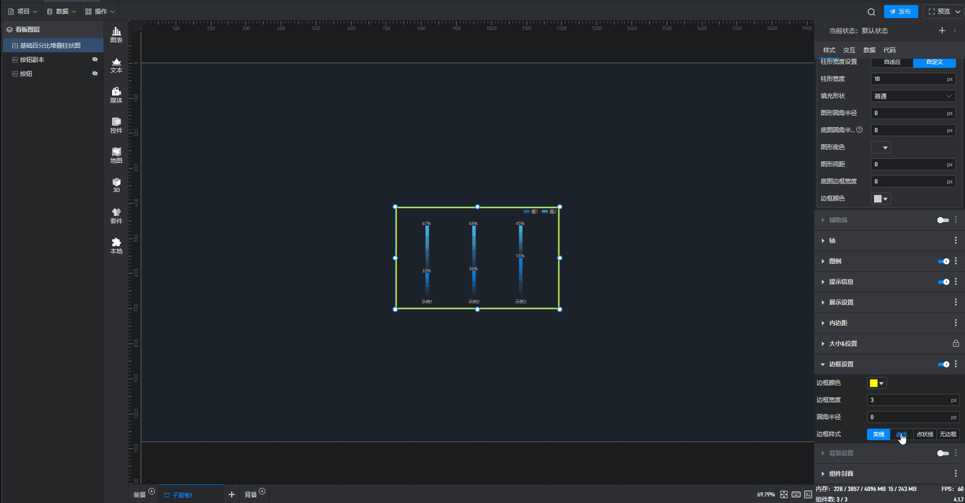 这是一个没有开启“高亮设置”按钮的基础百分比堆叠柱状图组件:
