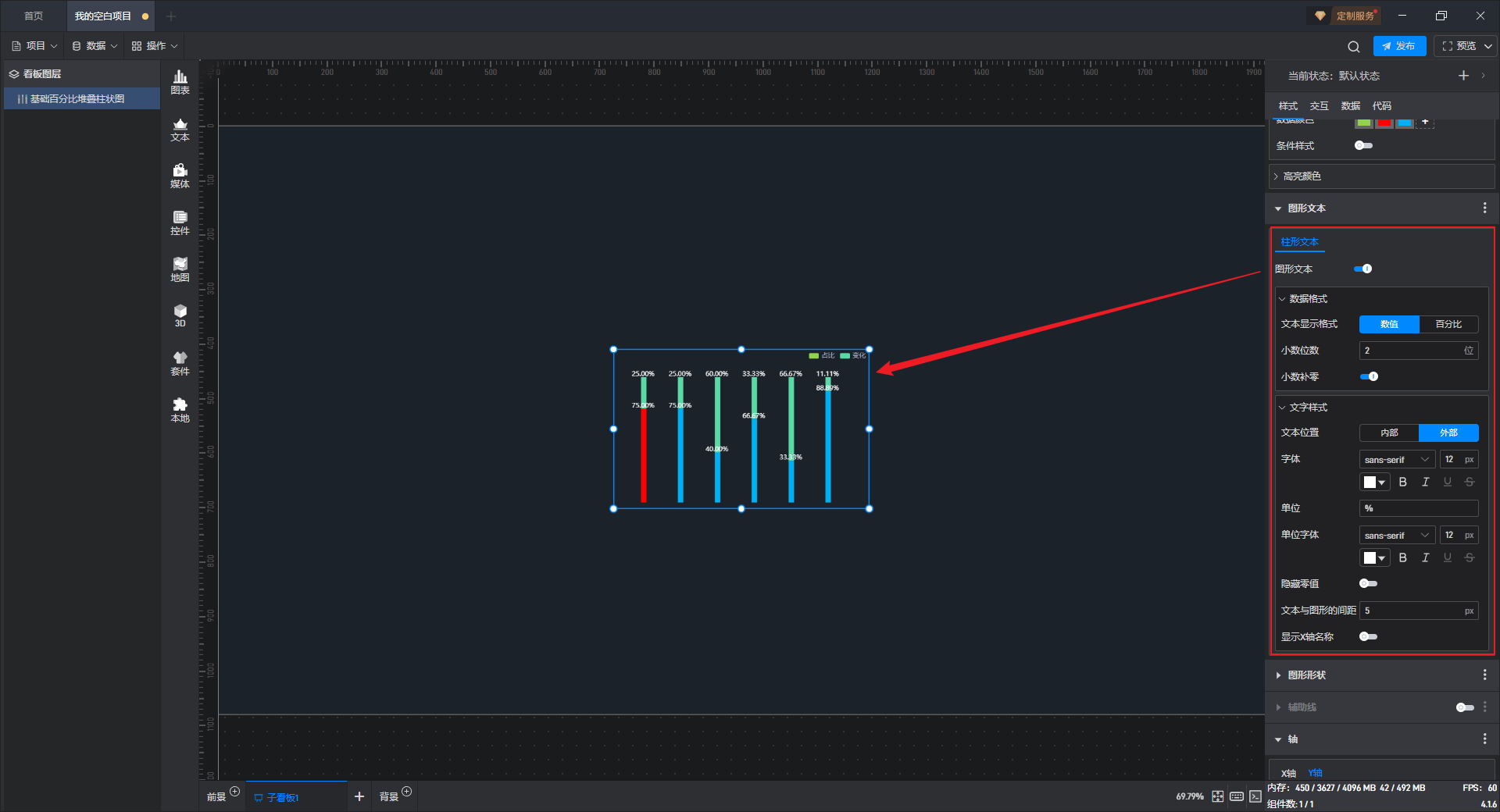 百分比堆叠柱状图 开启 2 位小数补零,如下图所示: