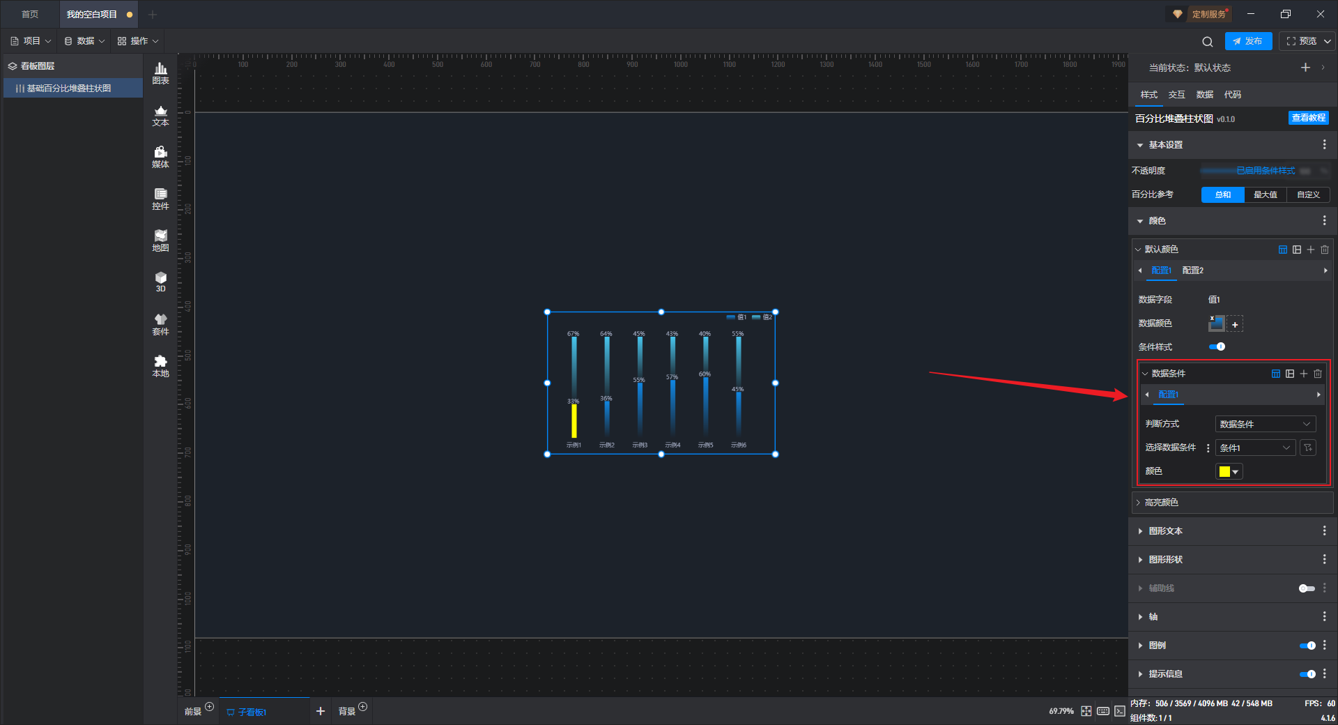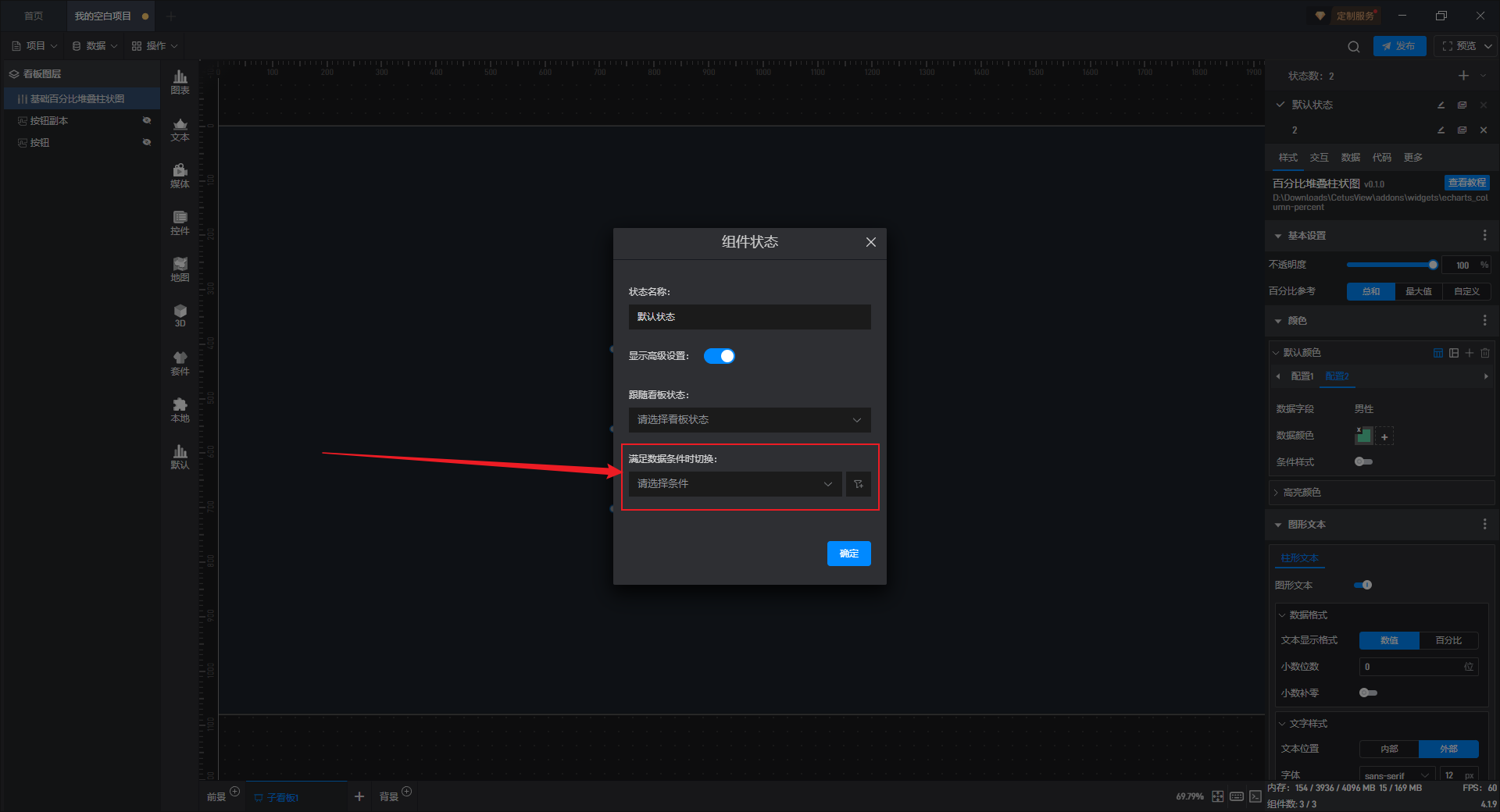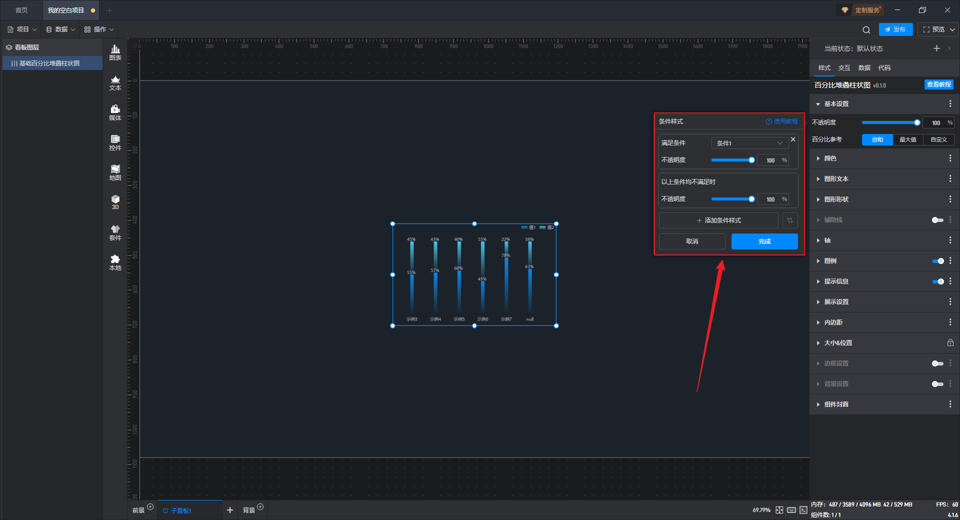 点击选中组件,开启“条件样式”按钮,就可以进行条件样式的设置。