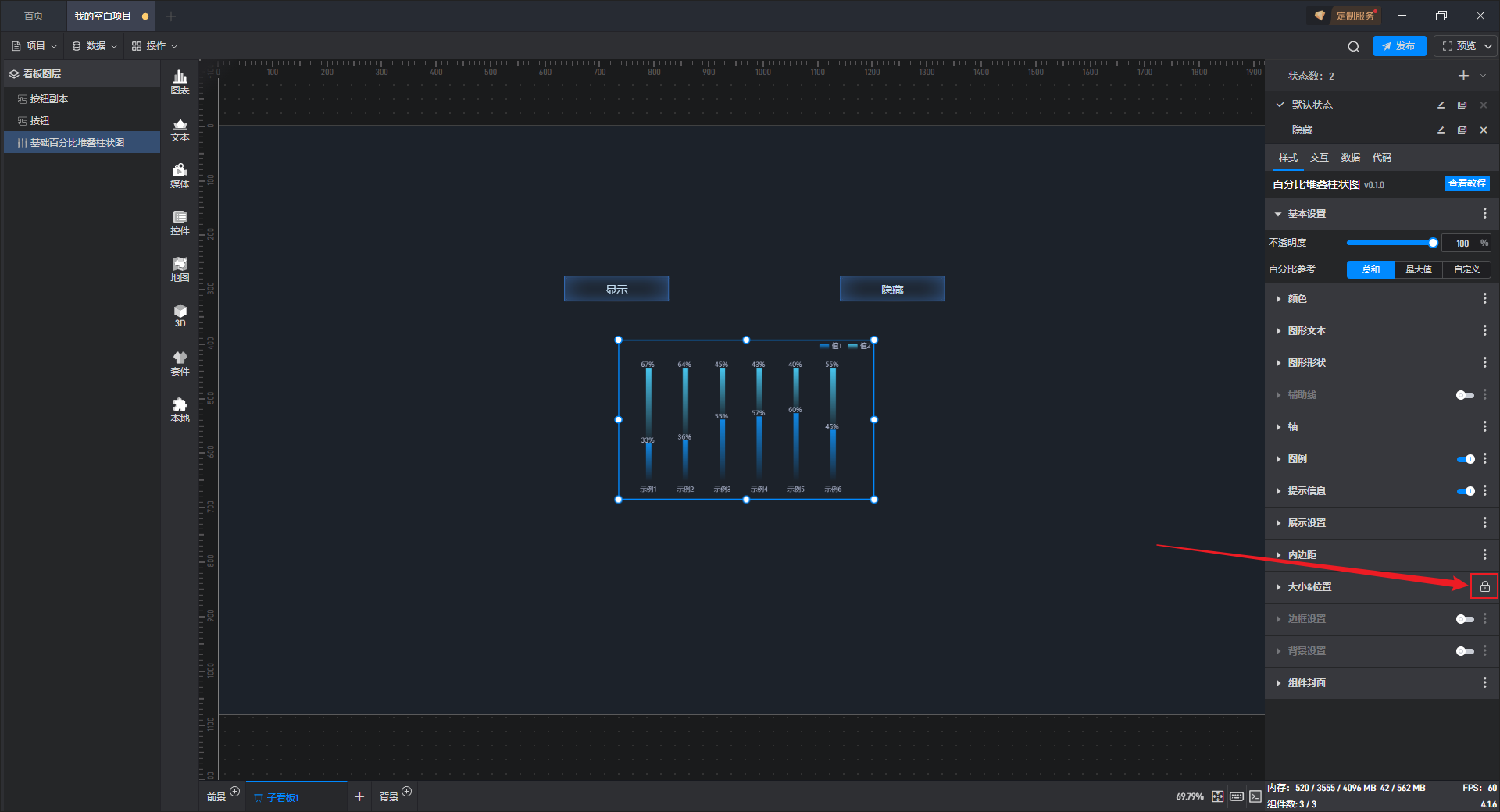 这样我们就实现了点击按钮切换柱状图组件显示隐藏的效果了。