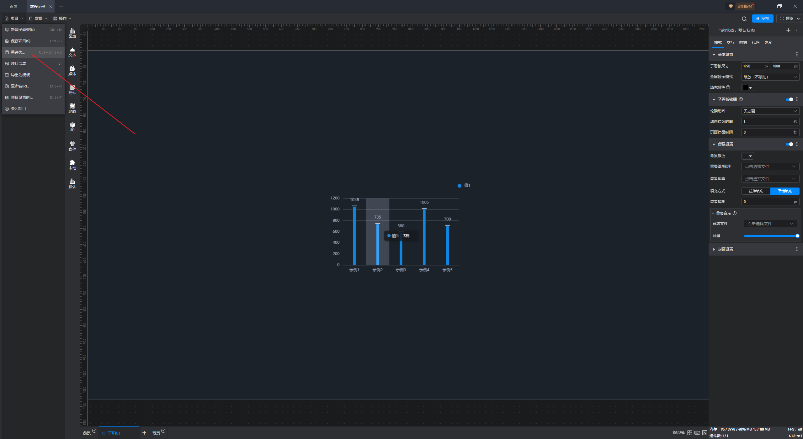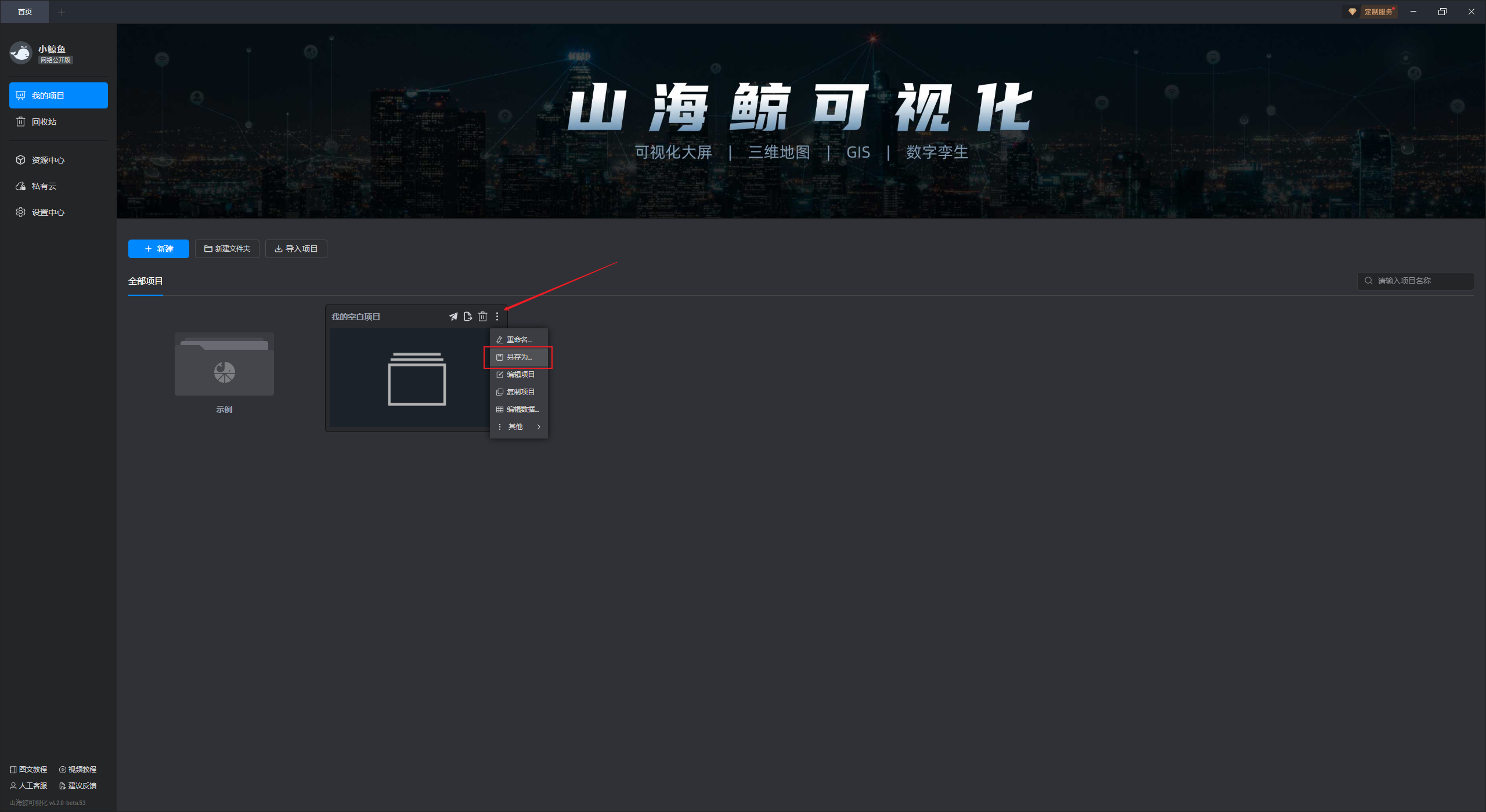 在山海鲸编辑器中,点击“项目——>另存为”: