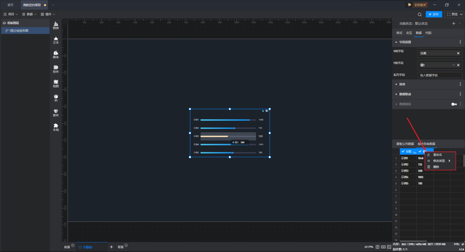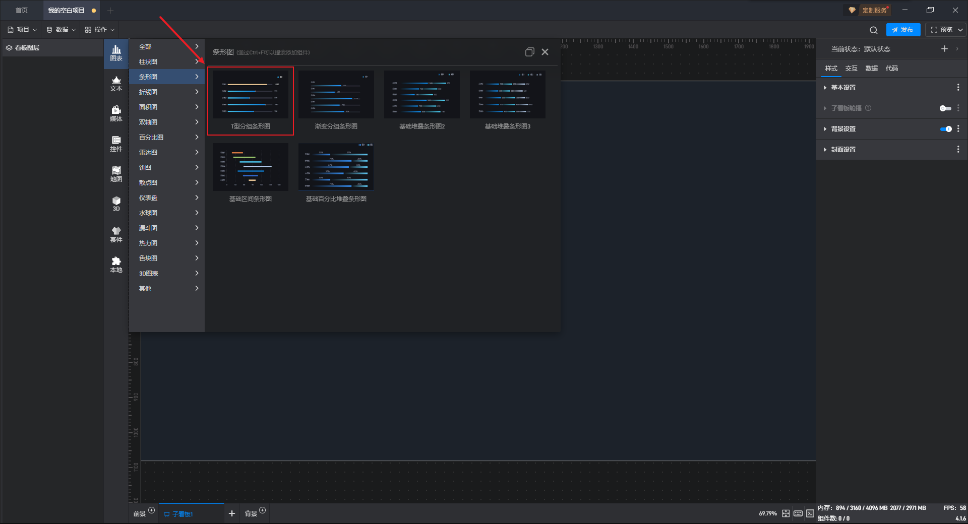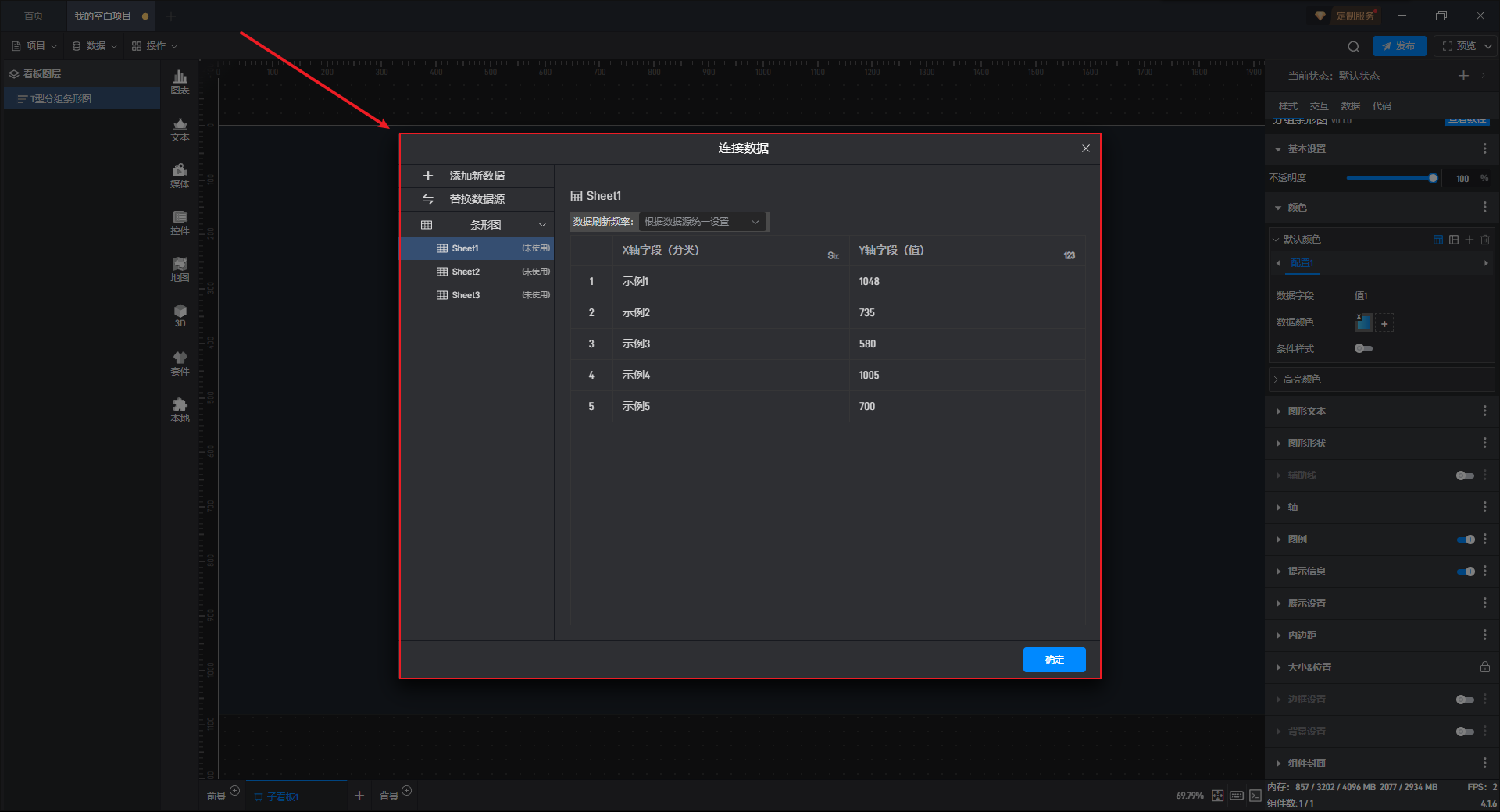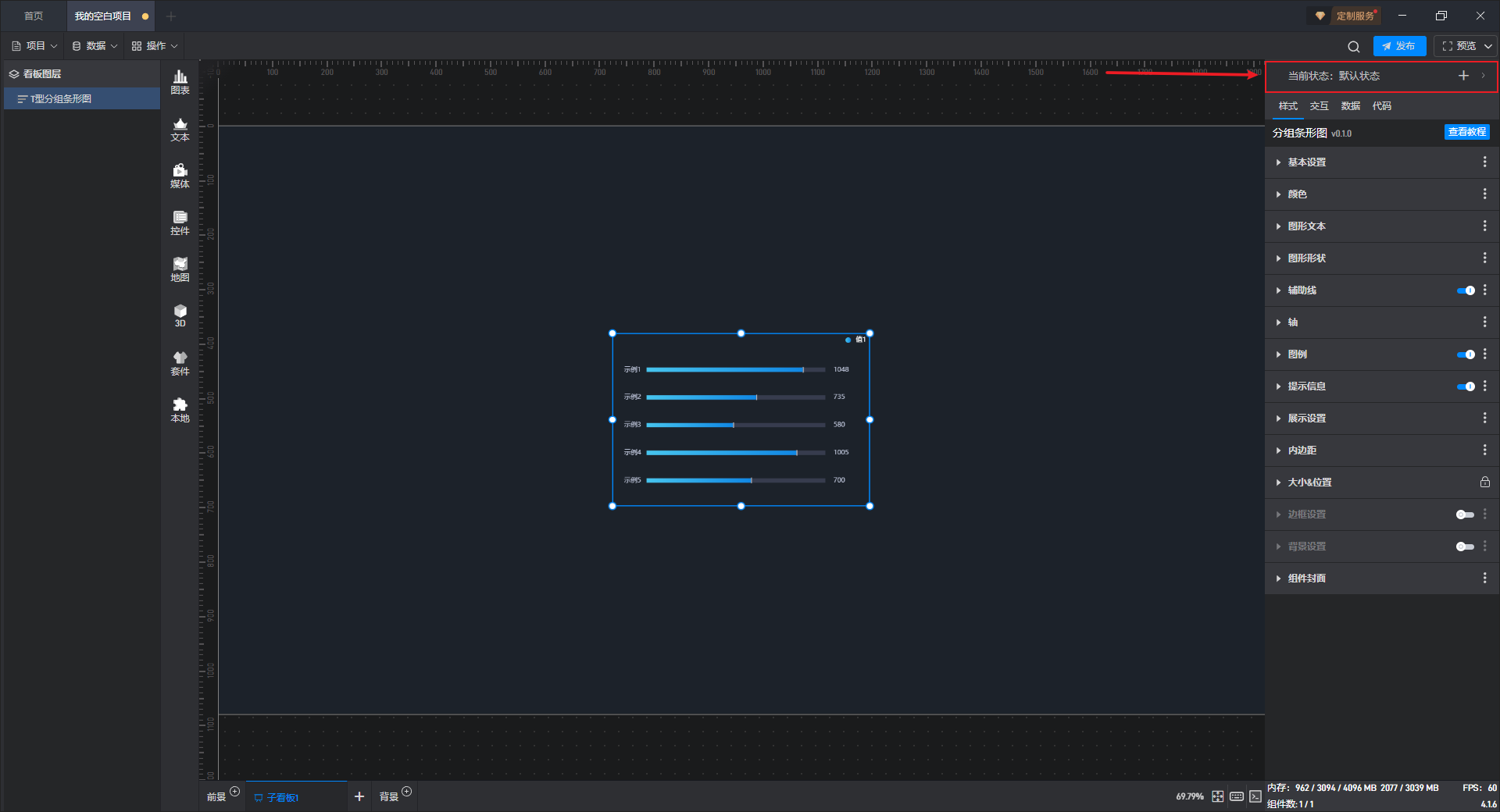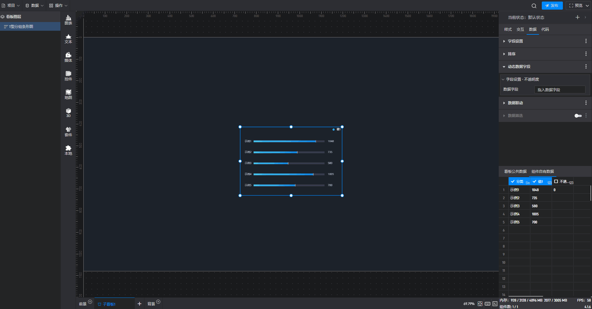下面我们以T 型分组条形图为例,给大家介绍一下该组件的使用步骤: