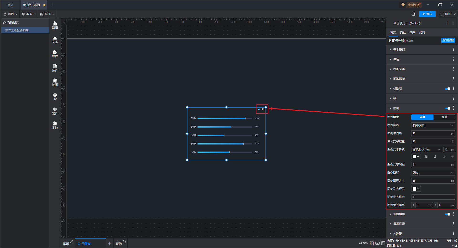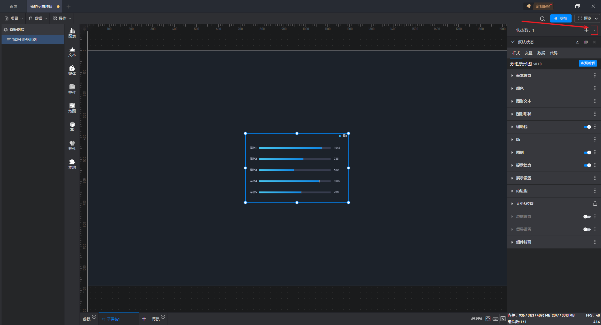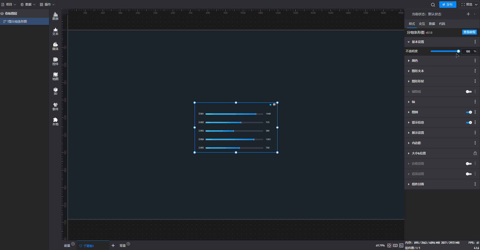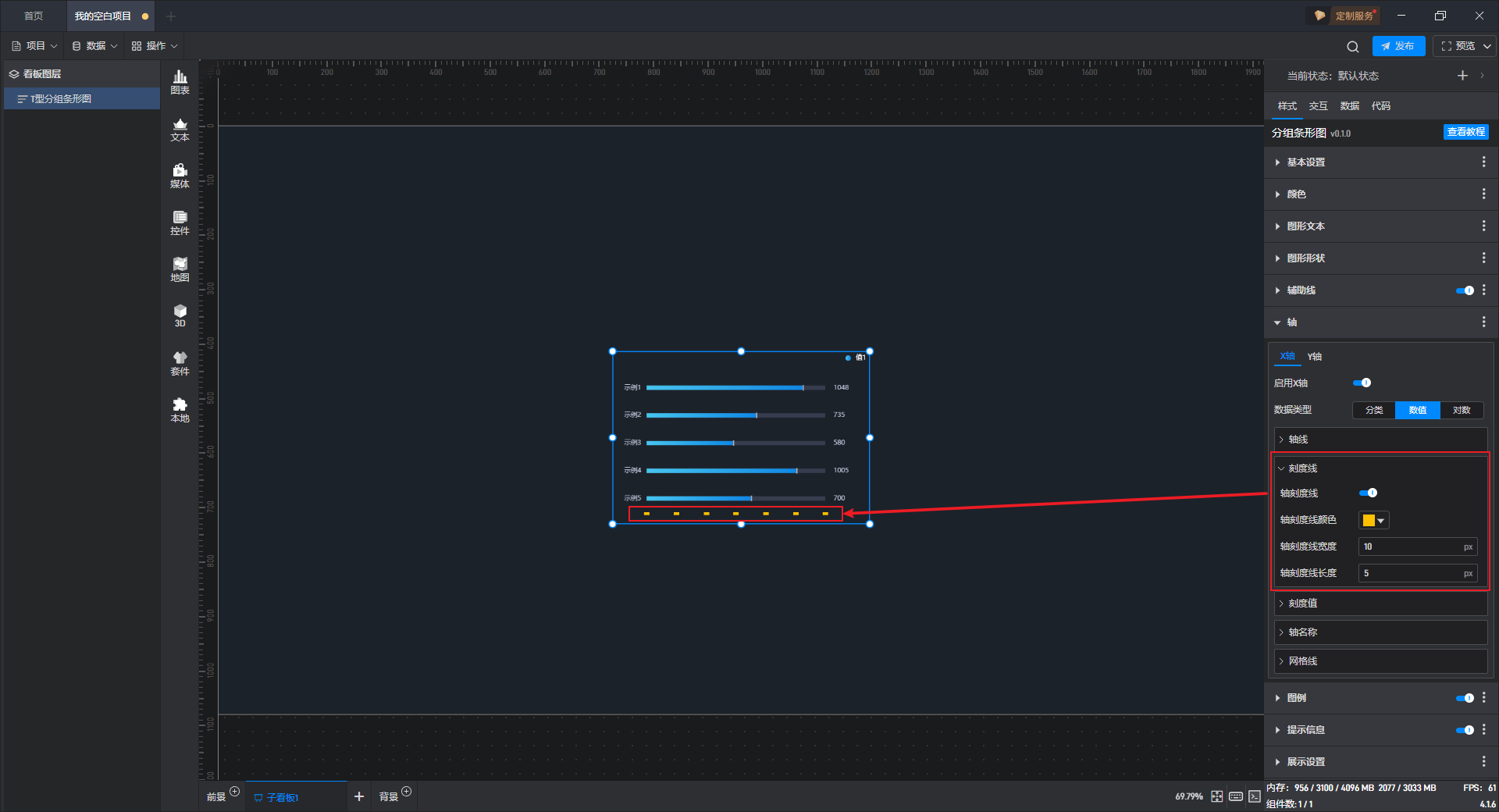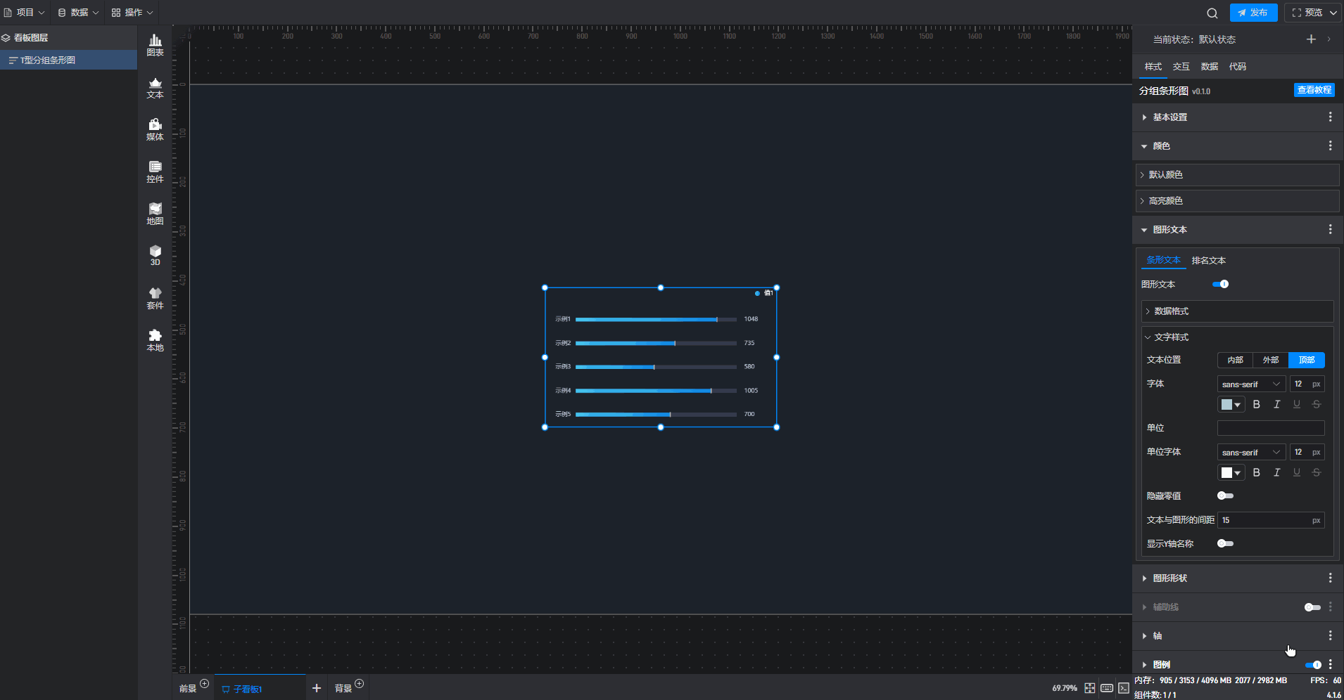 下面我们以T 型分组条形图为例,给大家介绍一下该组件的使用步骤: