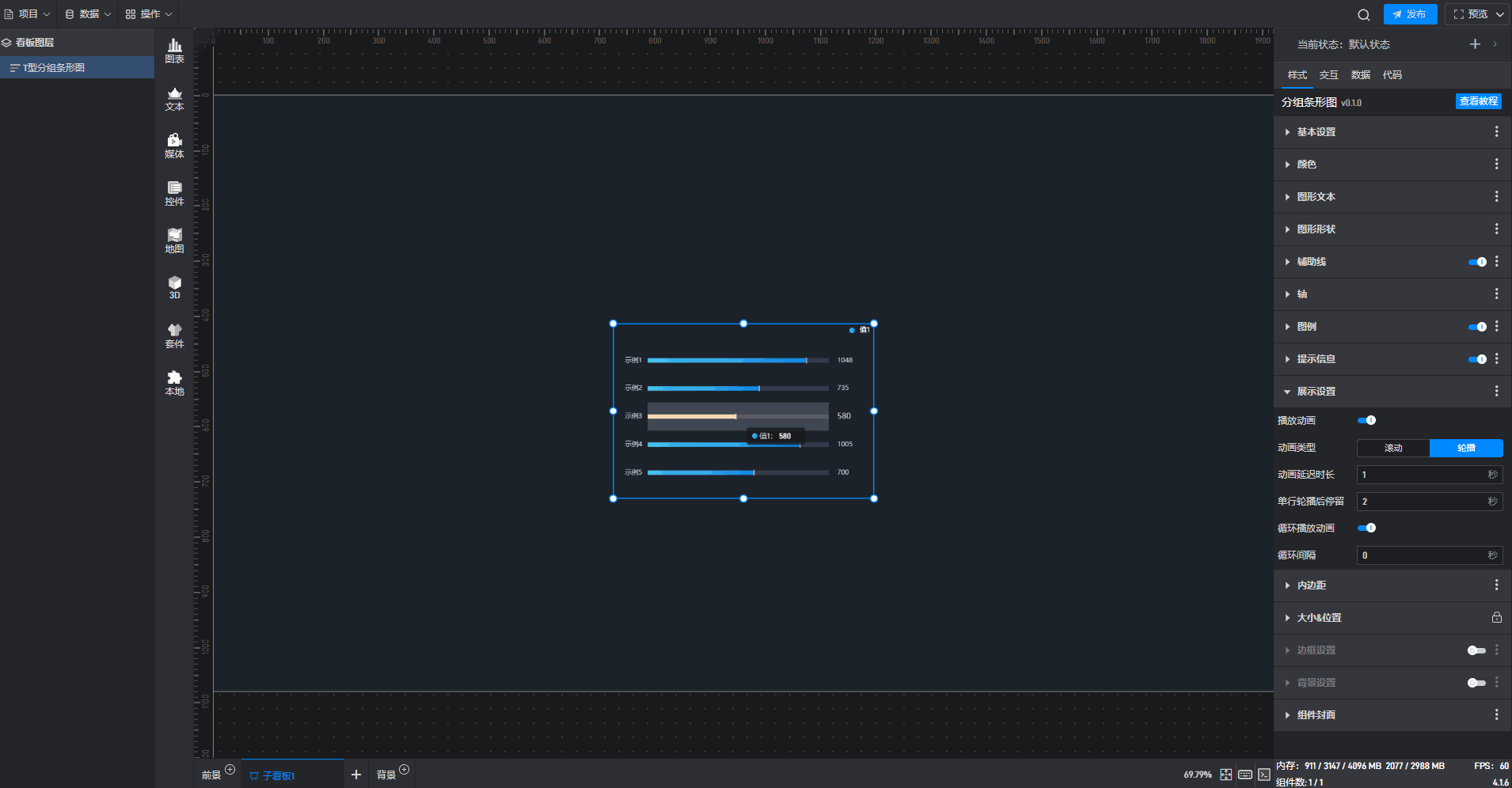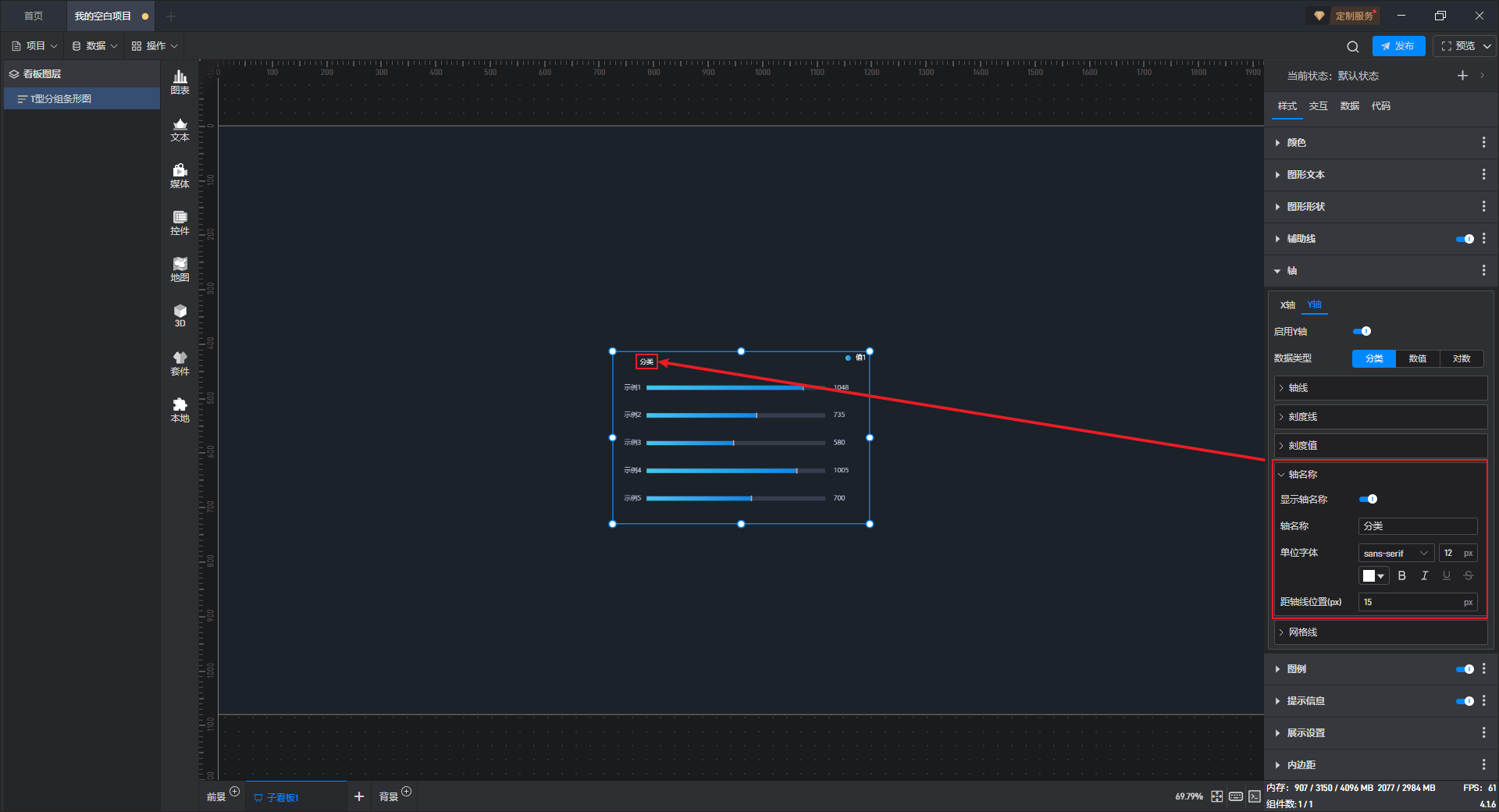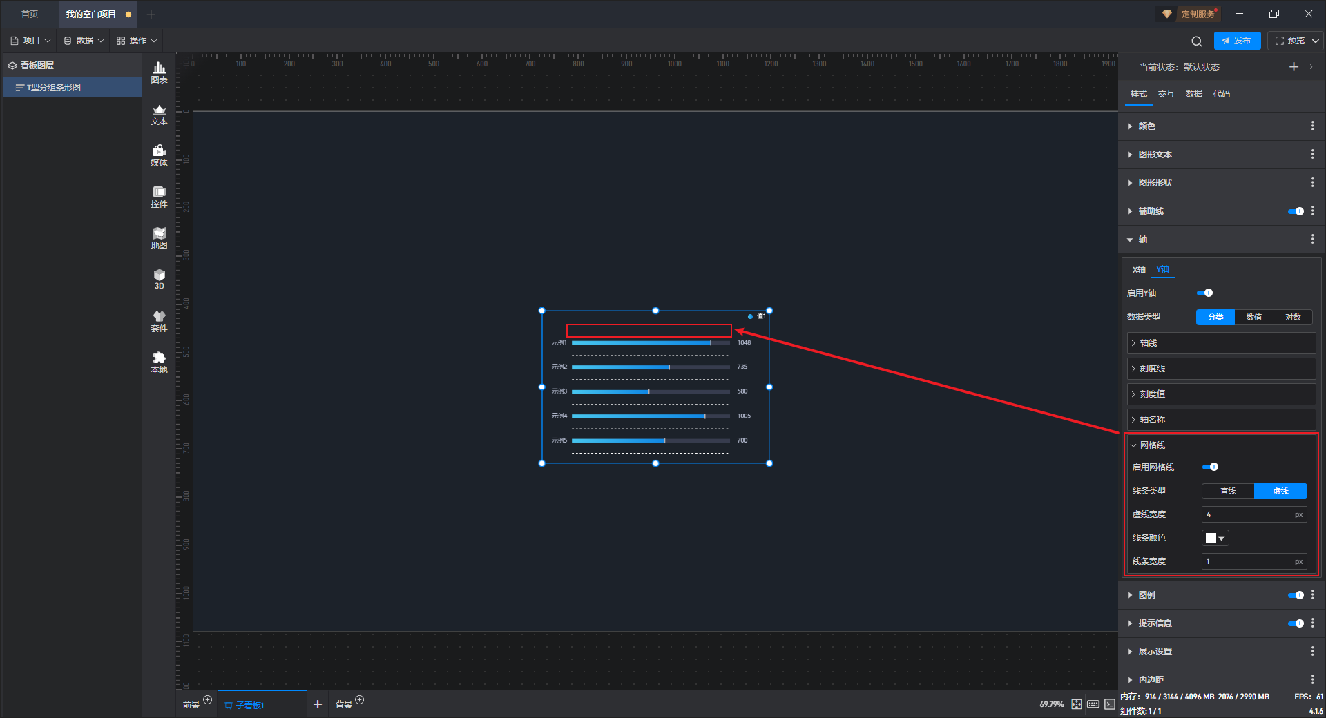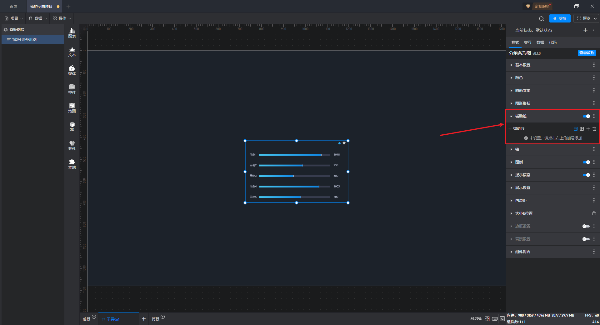 下面我们以T 型分组条形图为例,给大家介绍一下该组件的使用步骤: