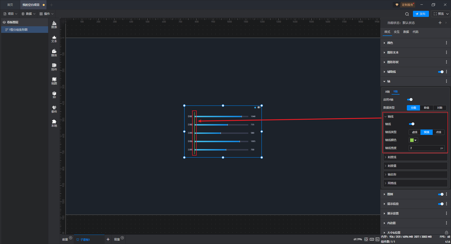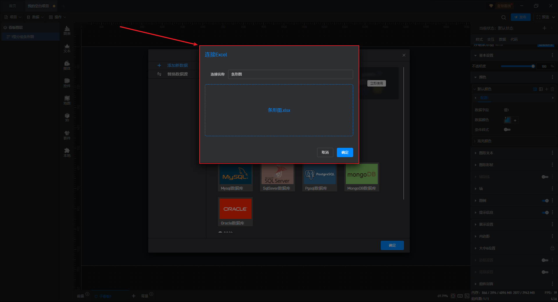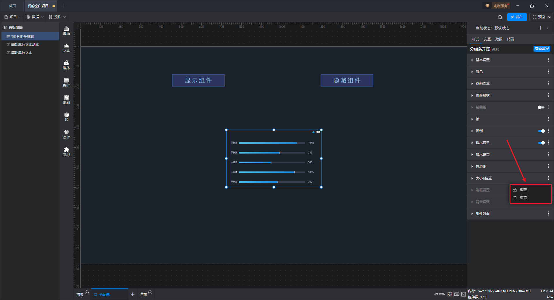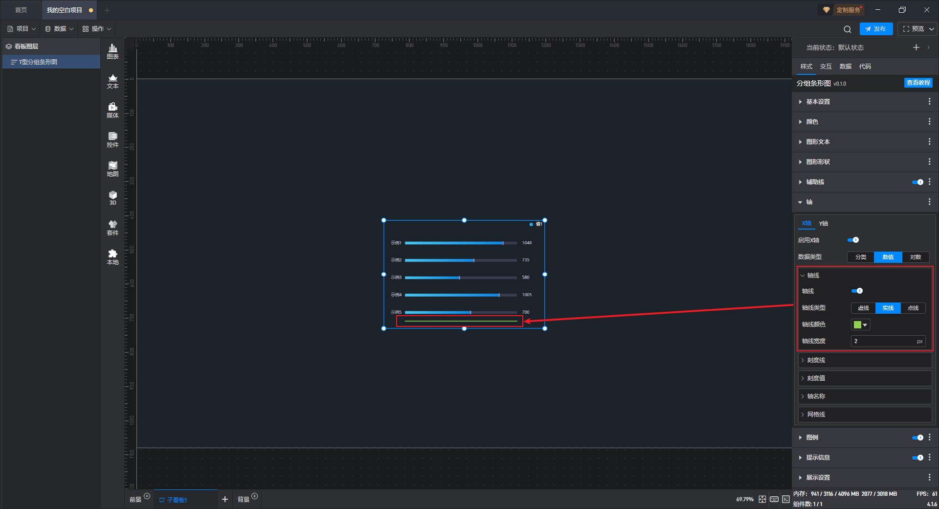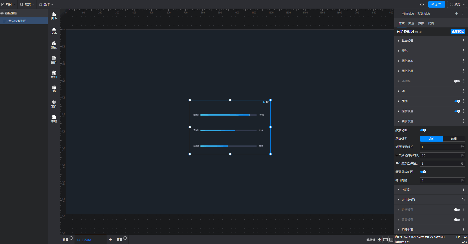 下面我们以T 型分组条形图为例,给大家介绍一下该组件的使用步骤: