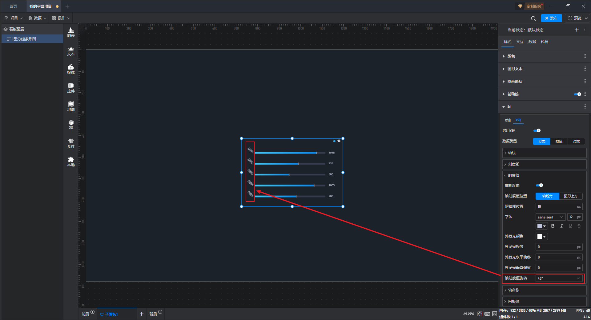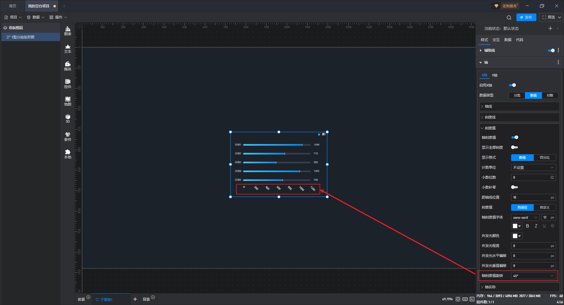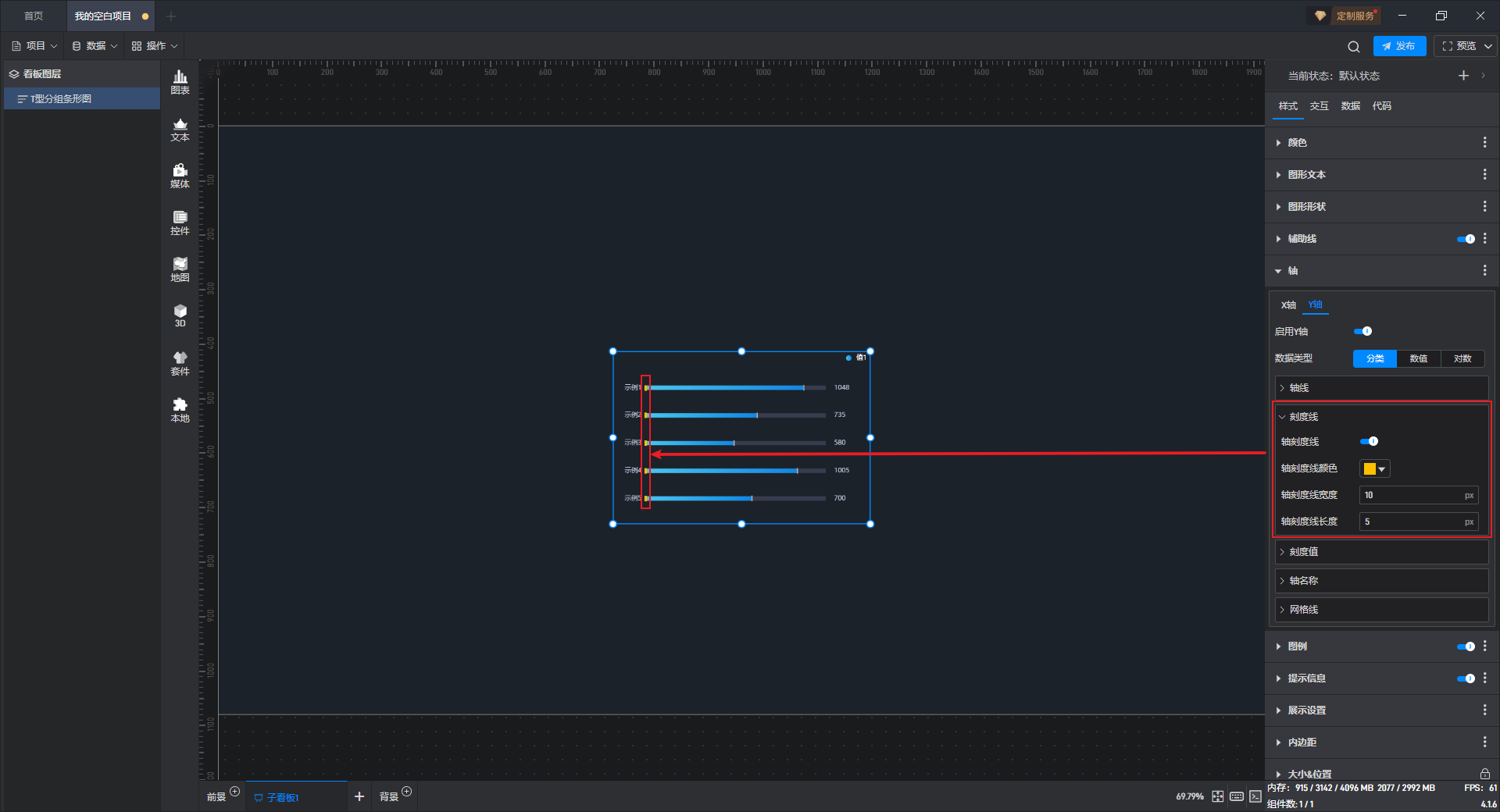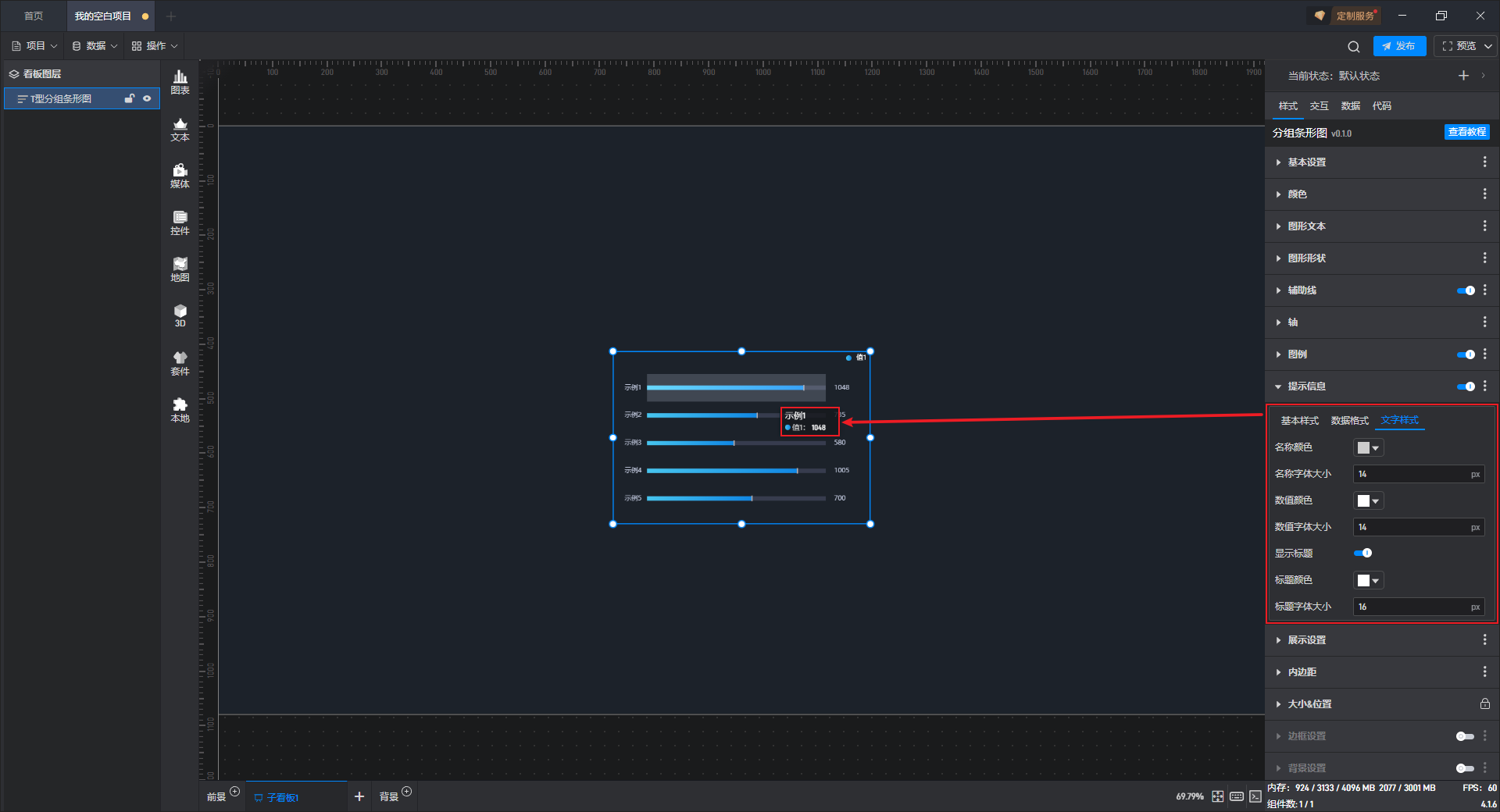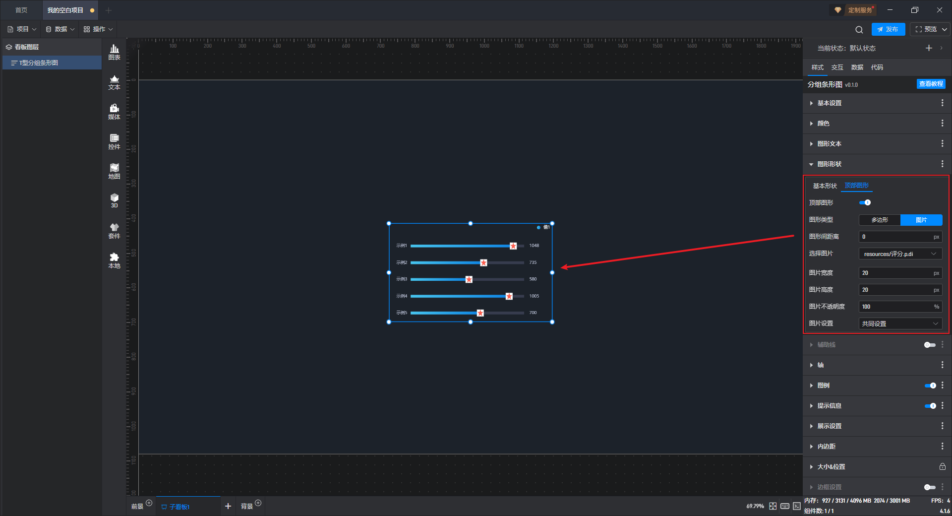 下面我们以T 型分组条形图为例,给大家介绍一下该组件的使用步骤: