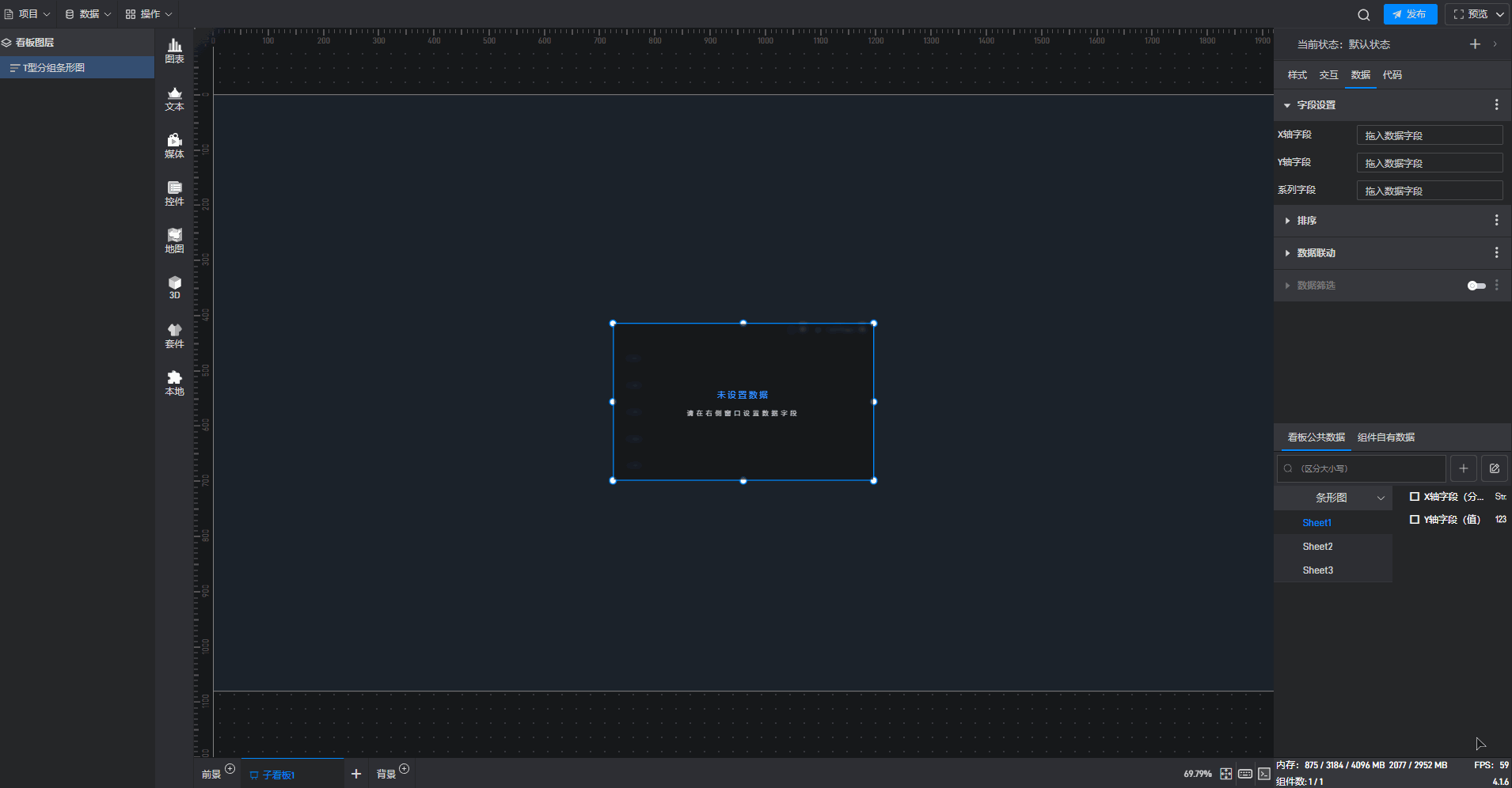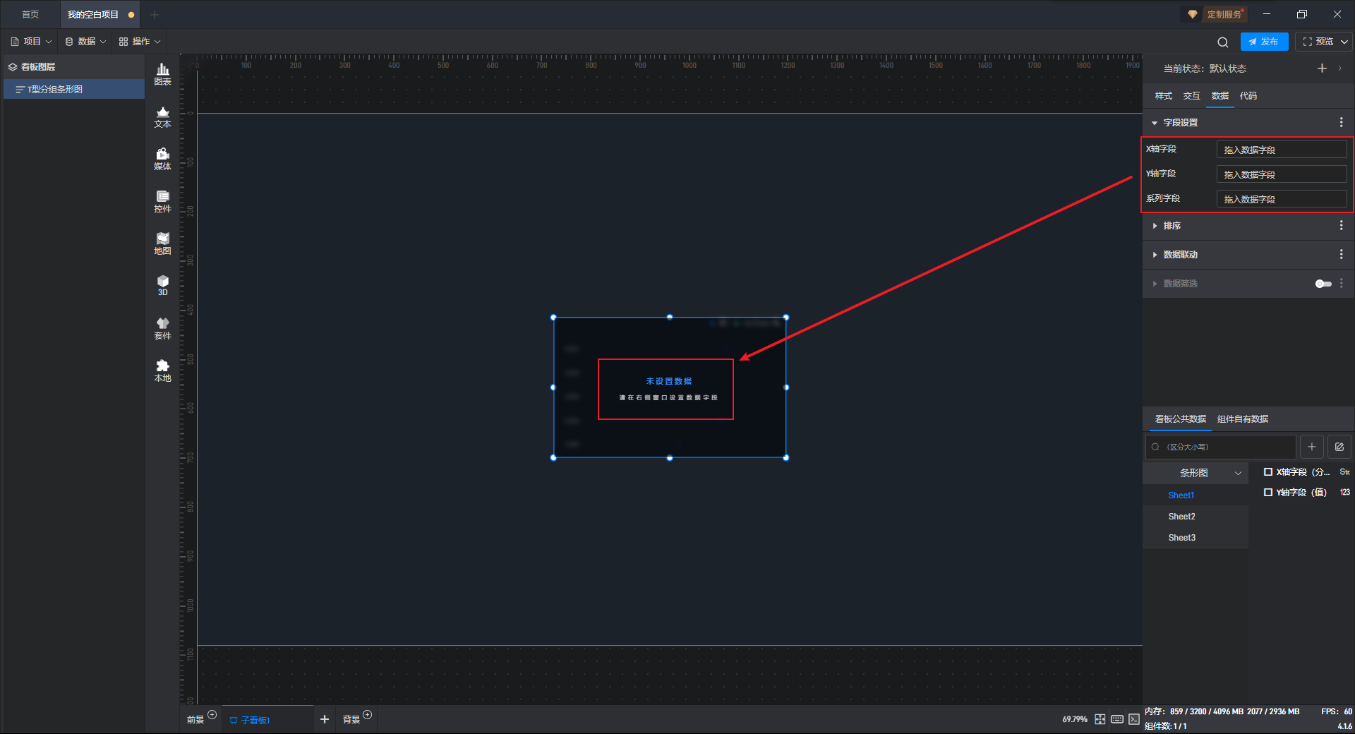 删除当前字段后,右侧字段栏为空,同时组件会提示“未设置数据”。