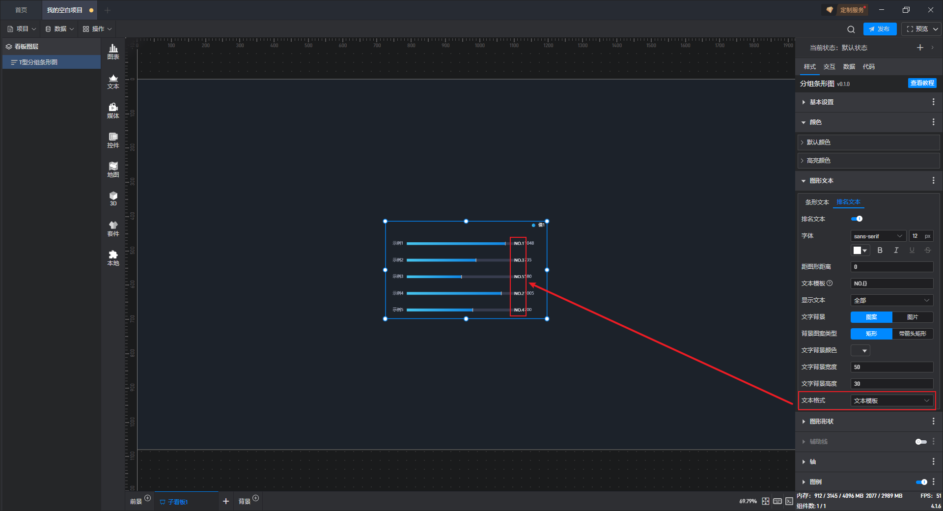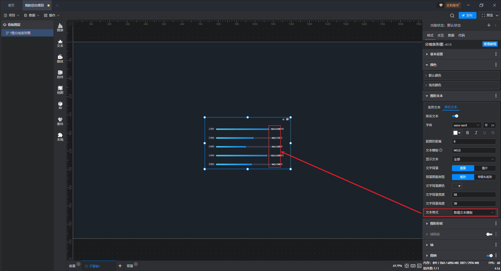 开启“排名文本”按钮后,组件中才能显示图形排名。
