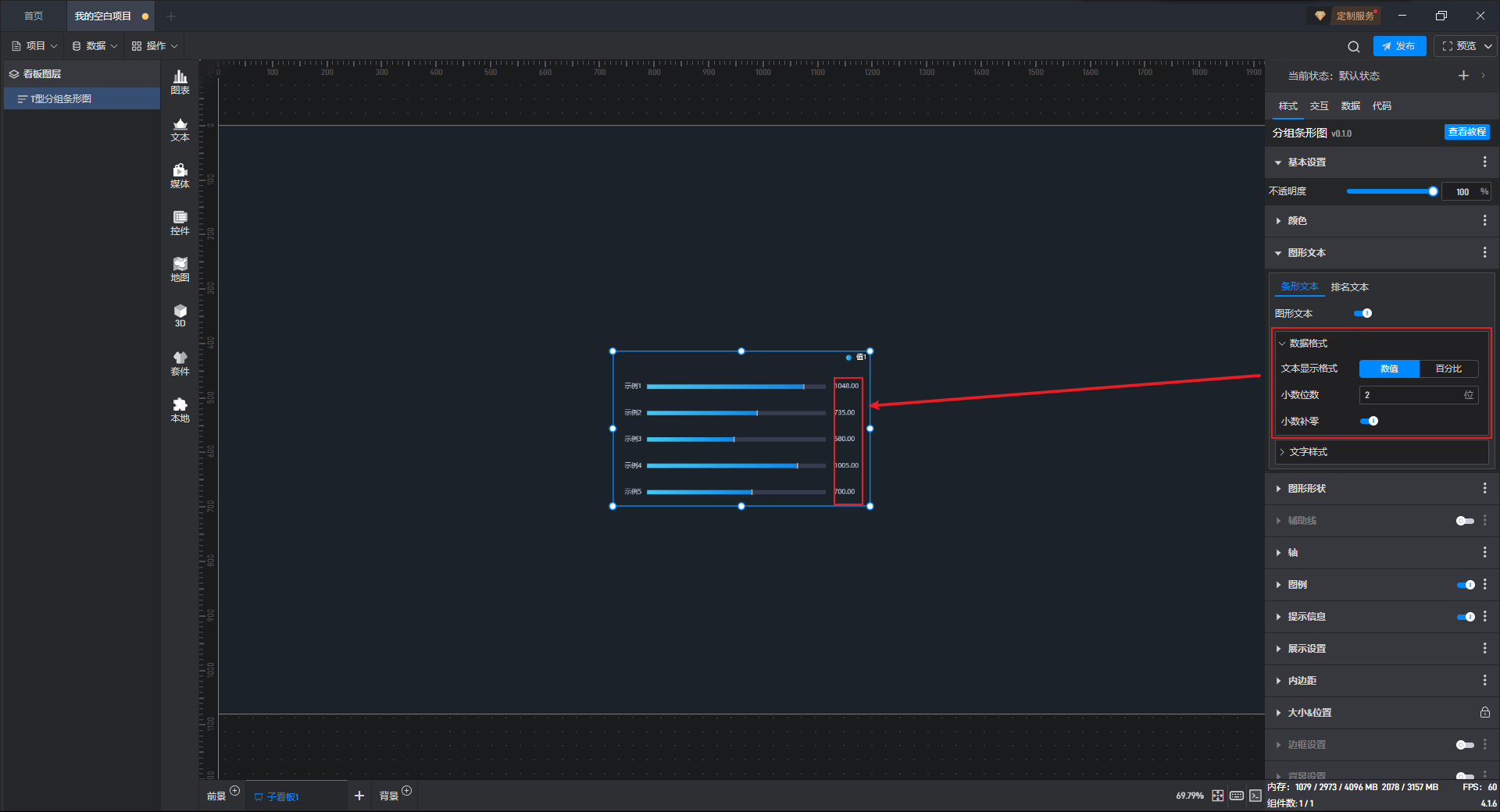 T 型分组条形图 开启 2 位小数补零,如下图所示: