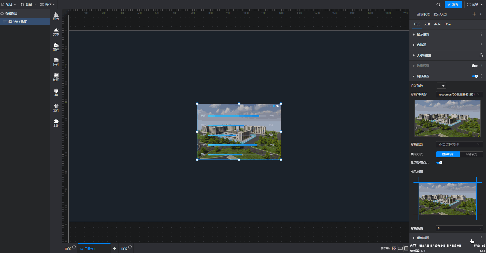 | 背景图/视频 | 可在此处添加本地图片或视频,充当组件背景。 |