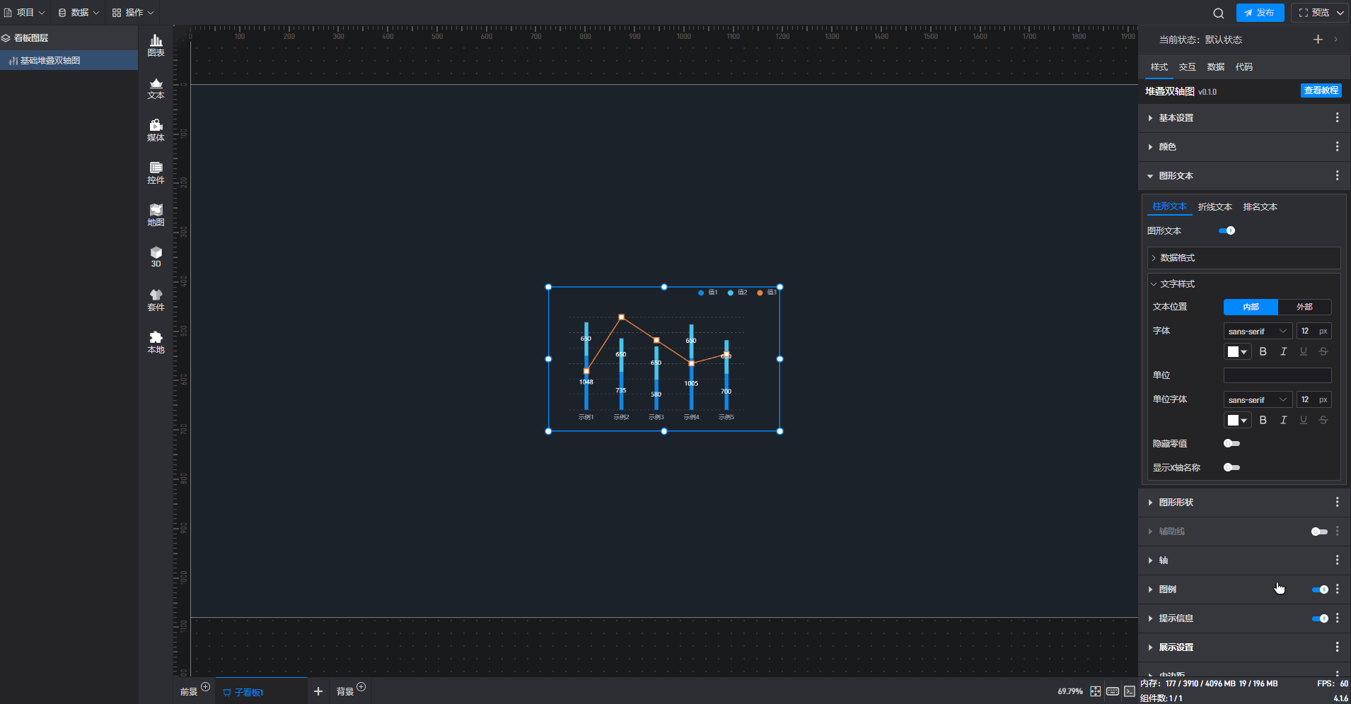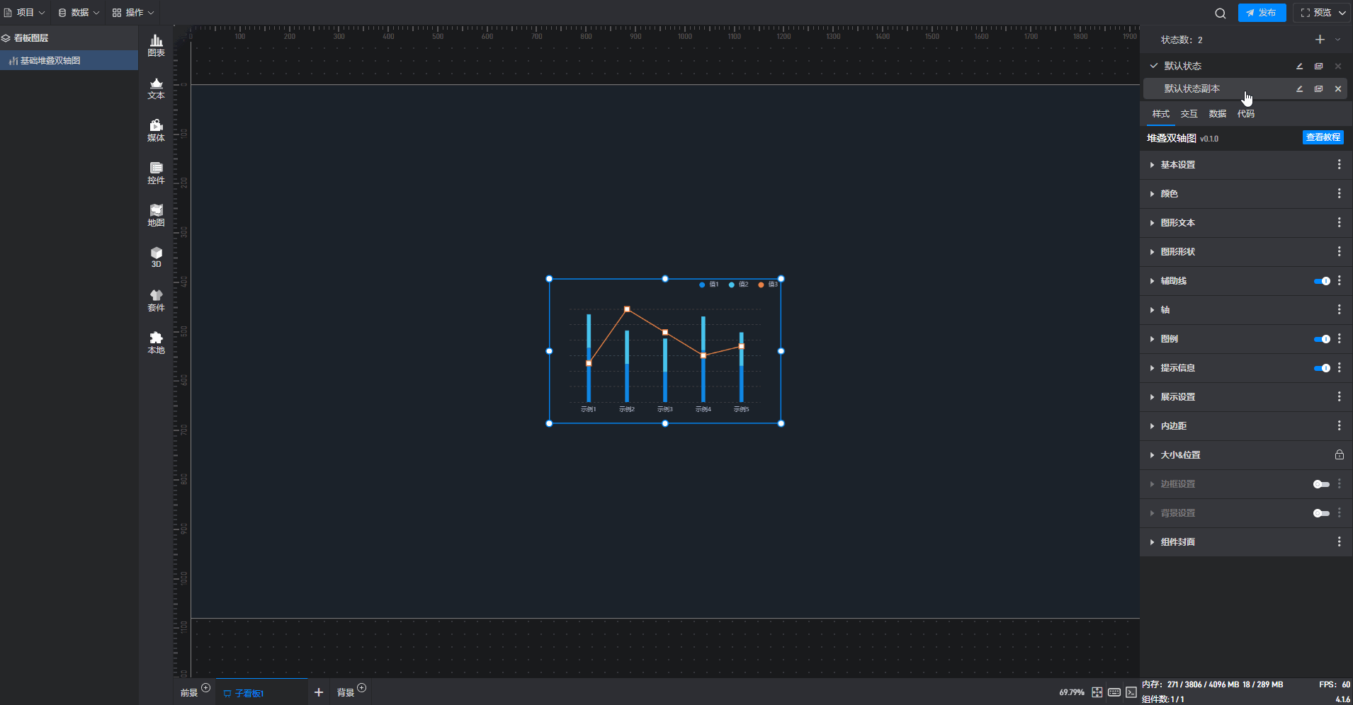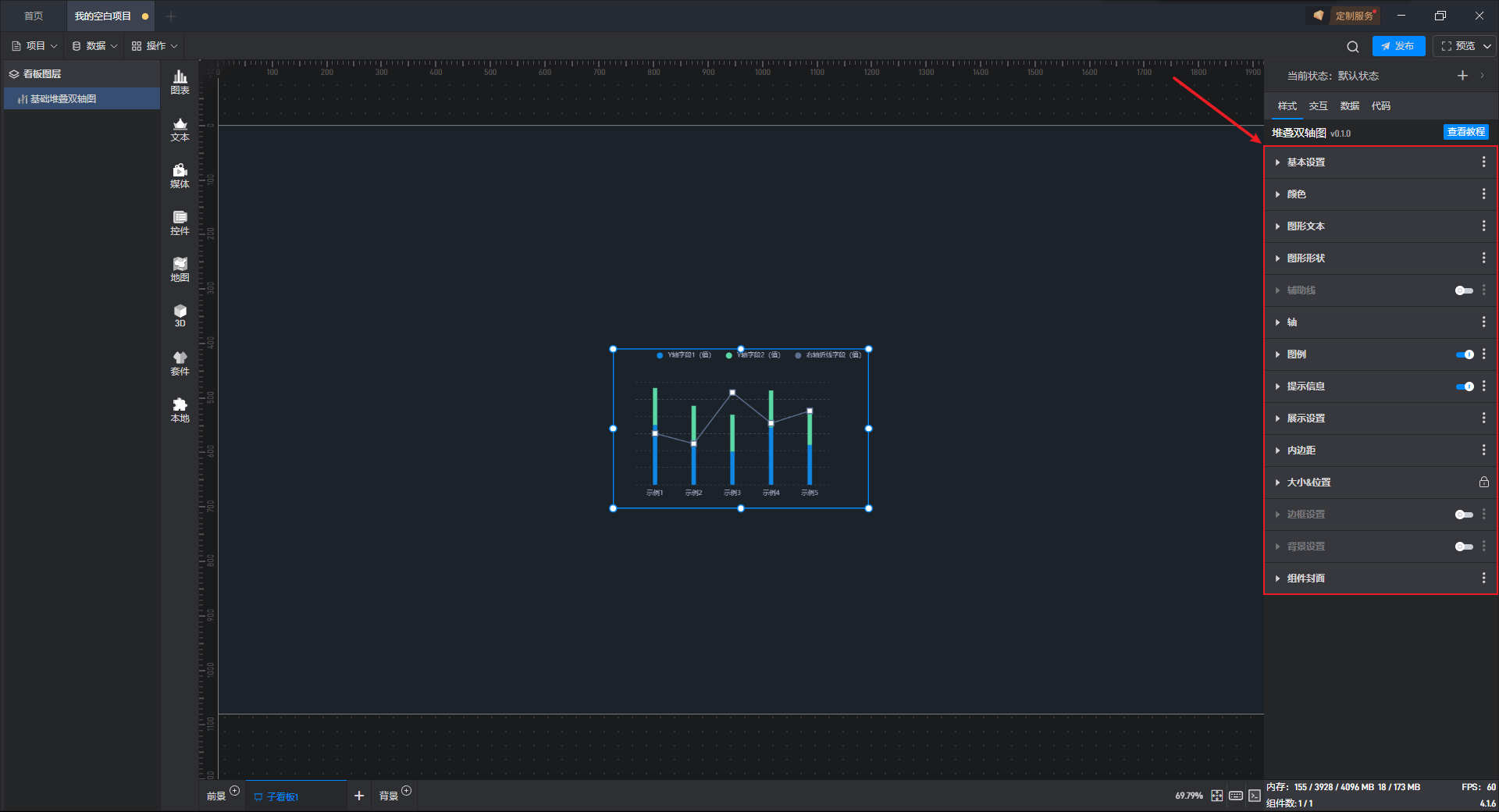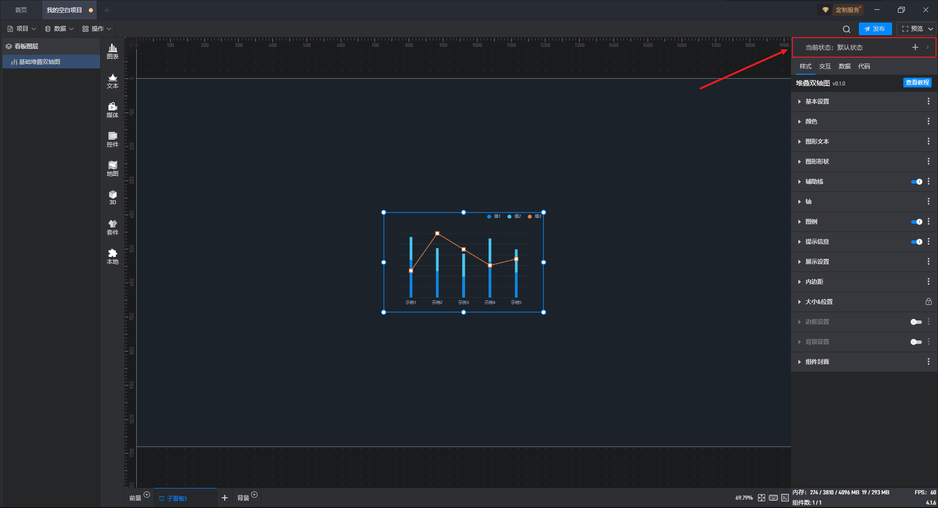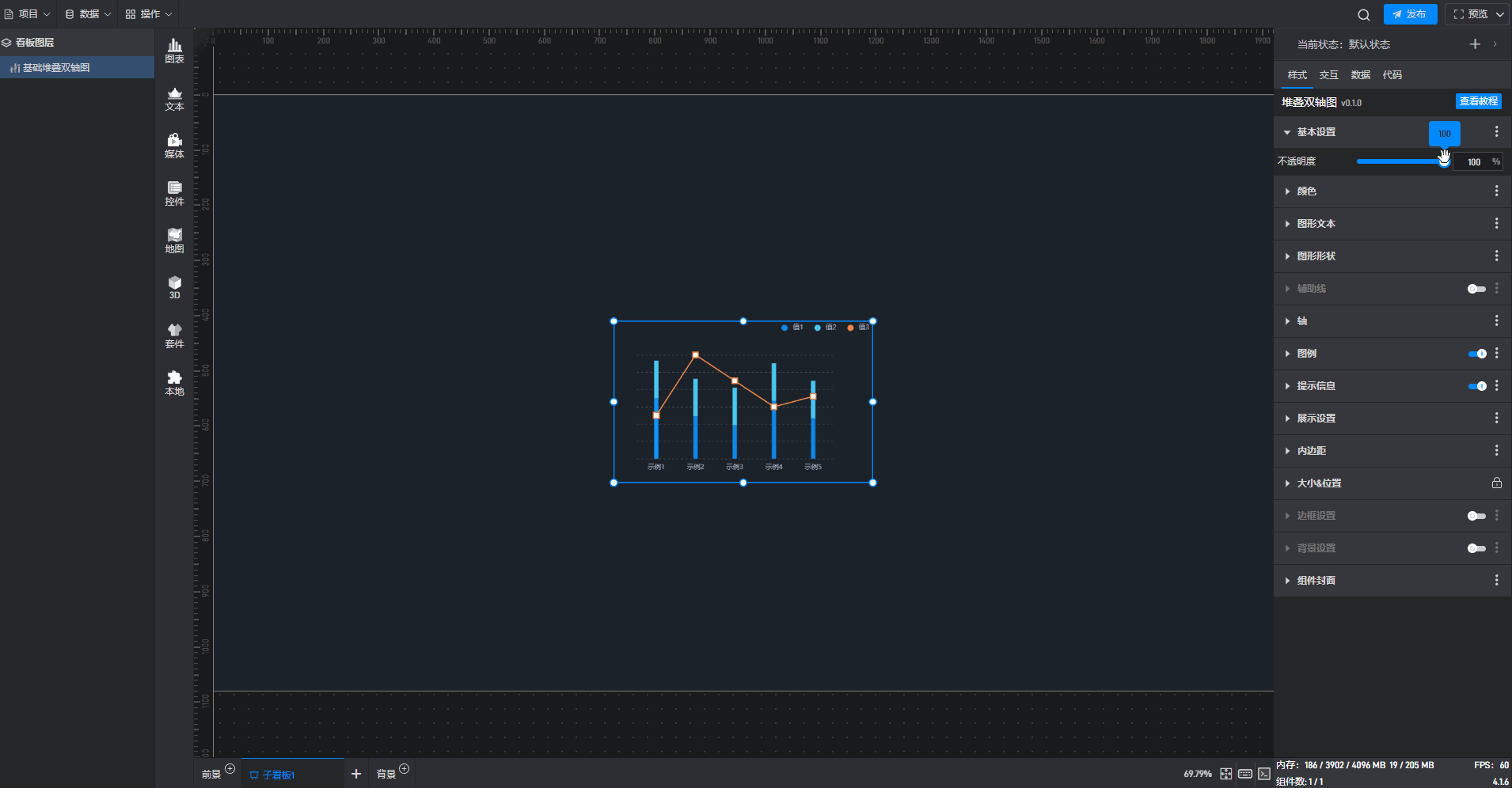 下面我们以基础堆叠双轴图为例,为大家介绍一下组件的使用步骤: