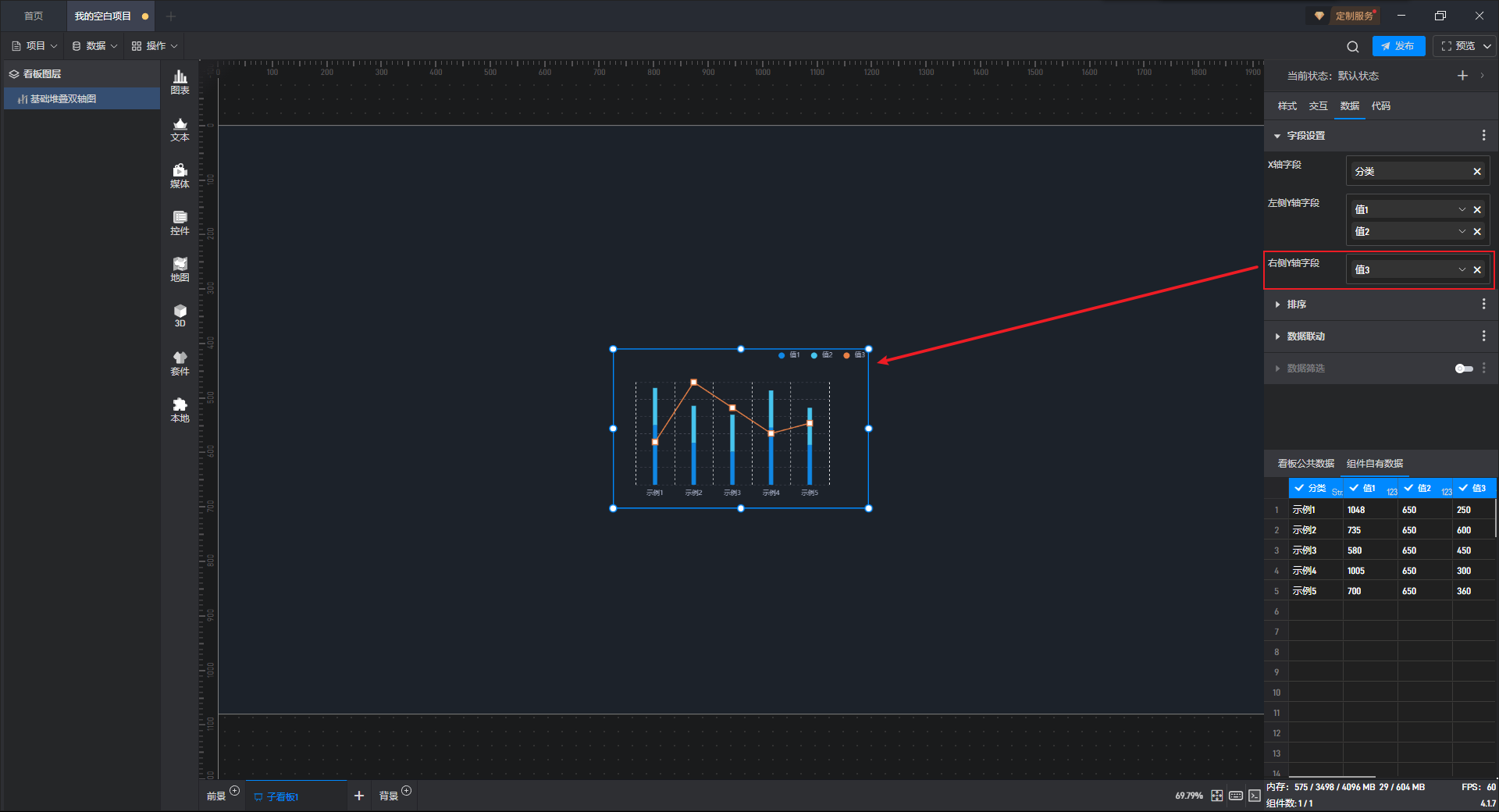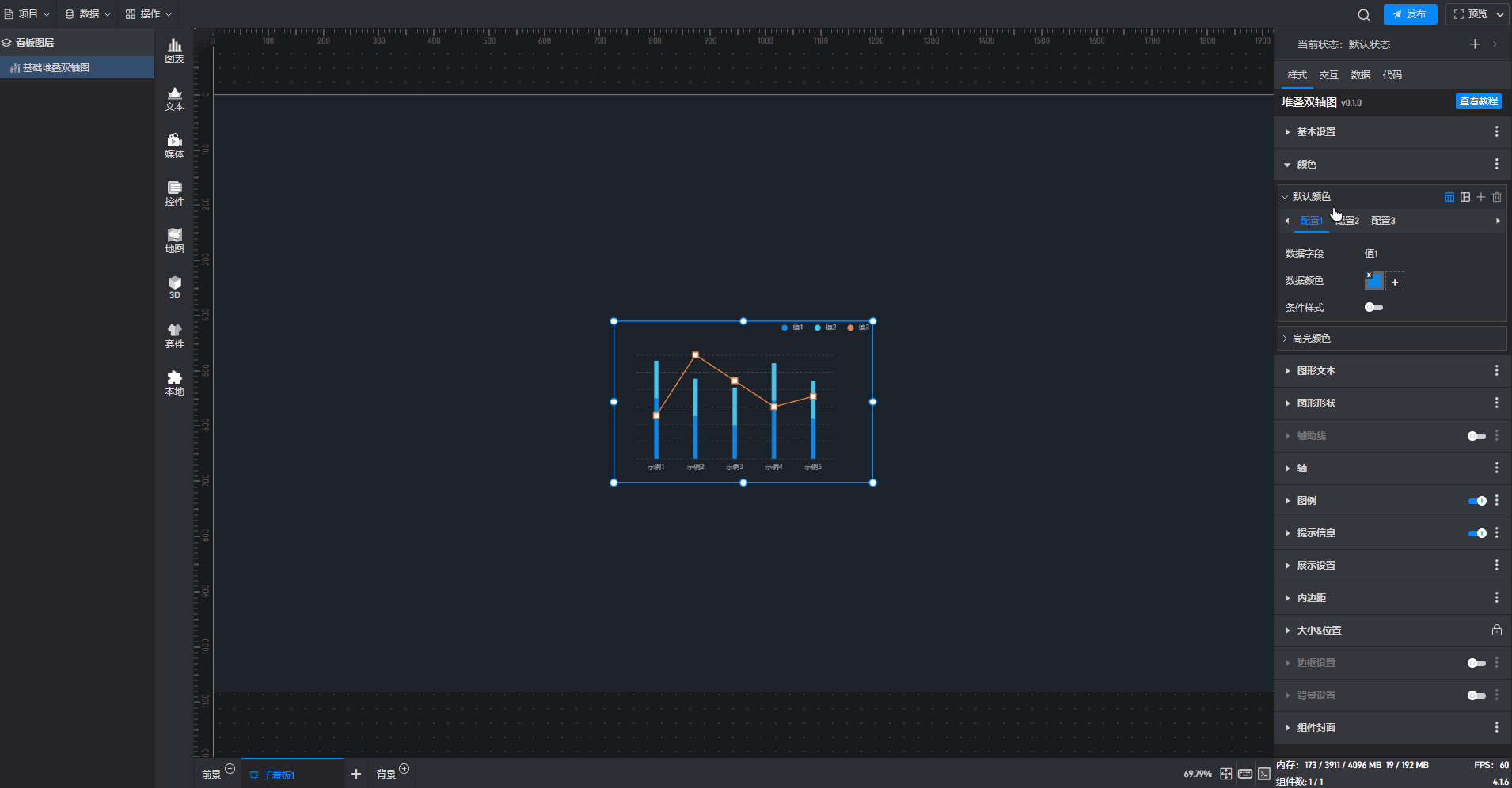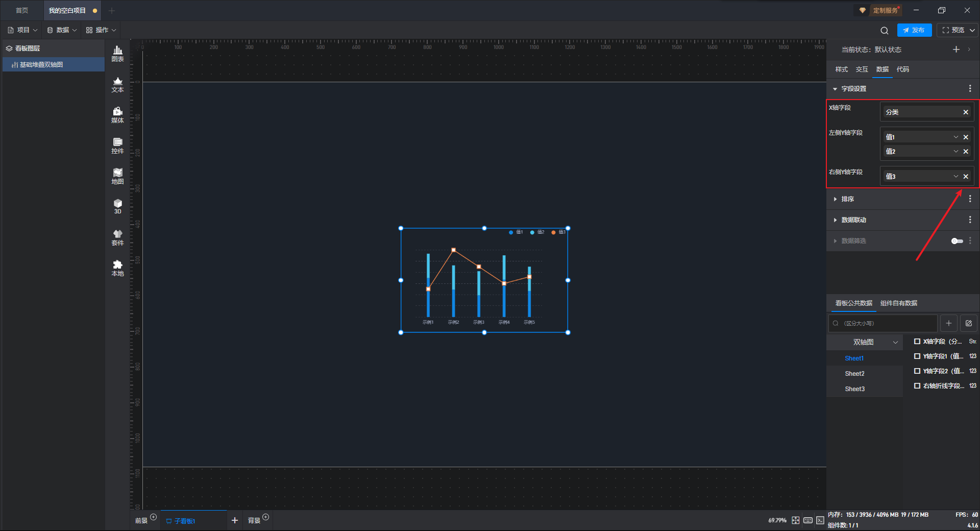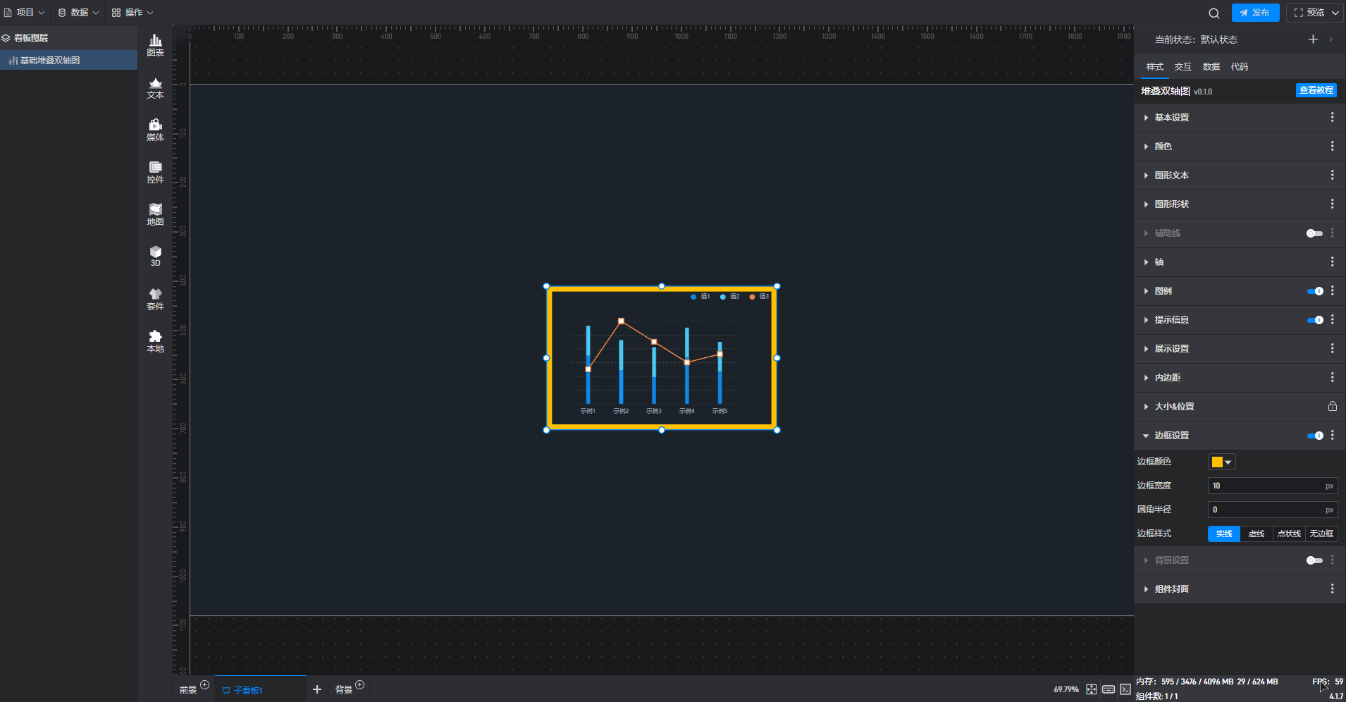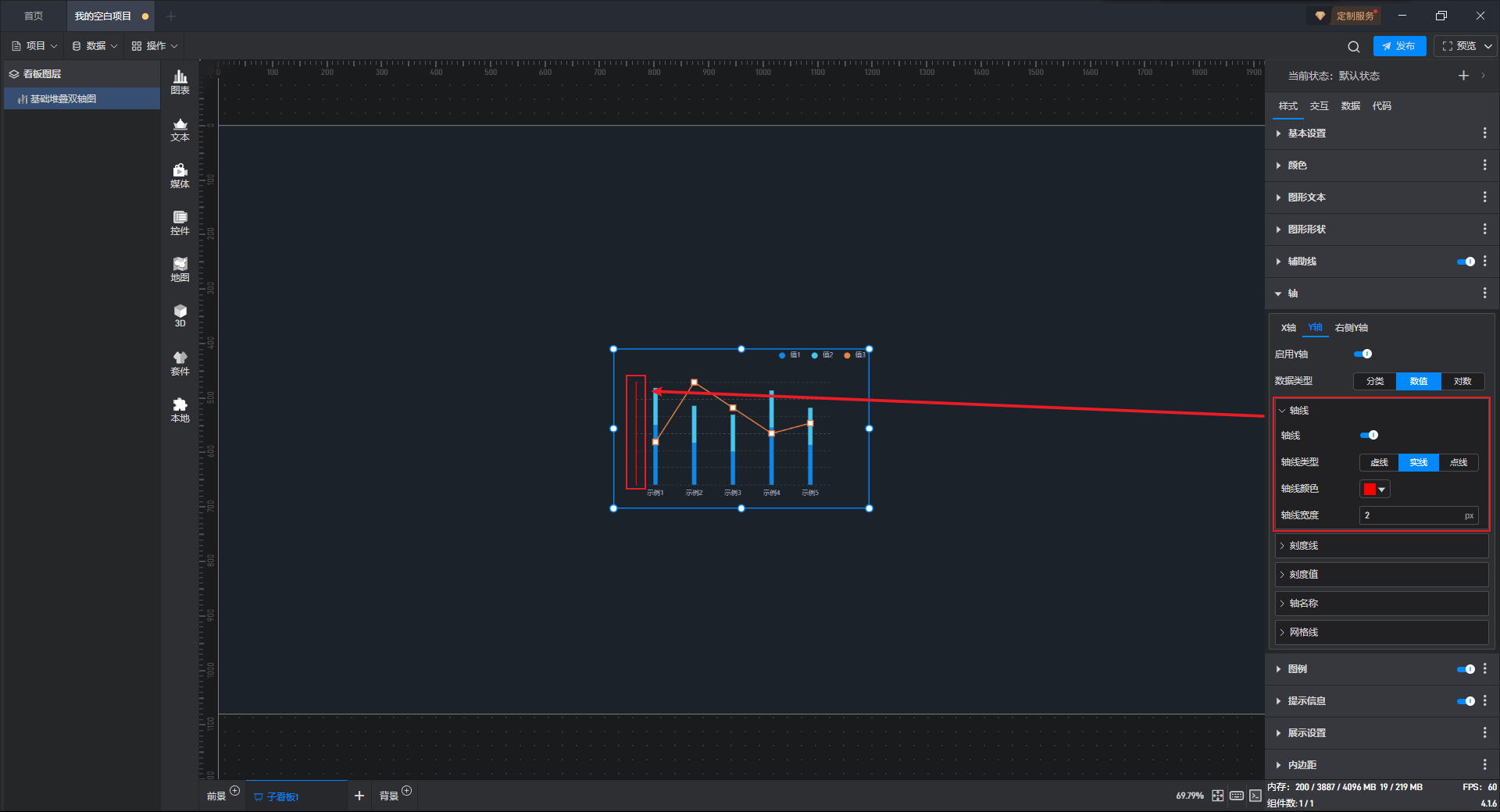 下面我们以基础堆叠双轴图为例,为大家介绍一下组件的使用步骤: