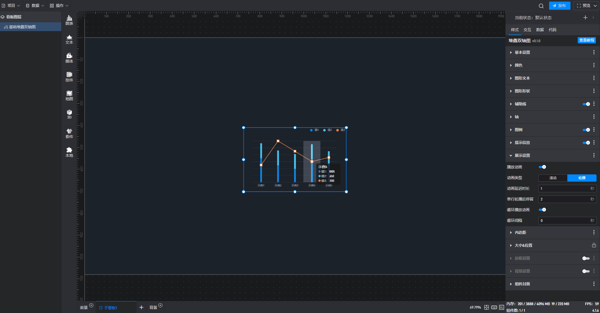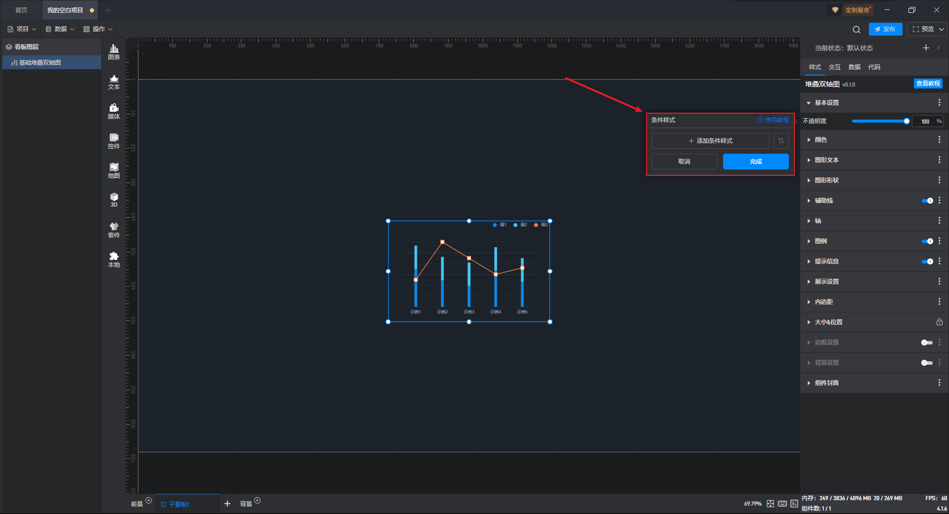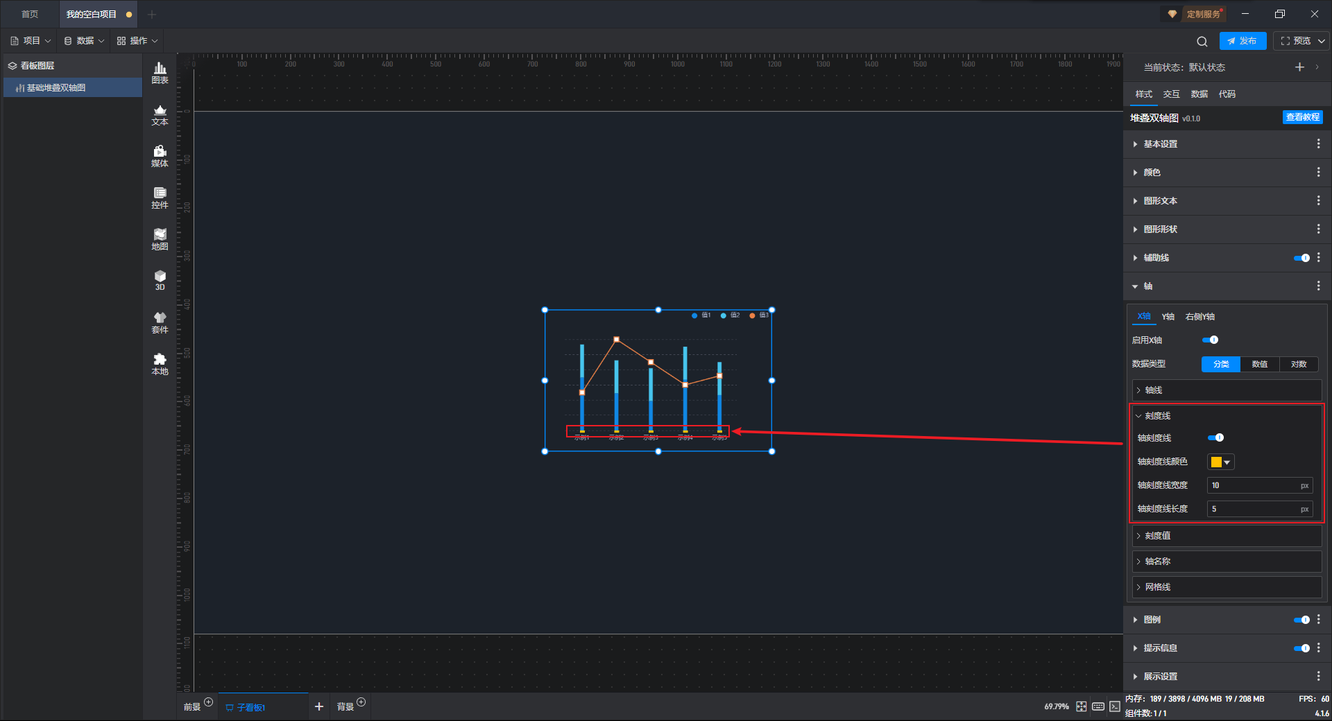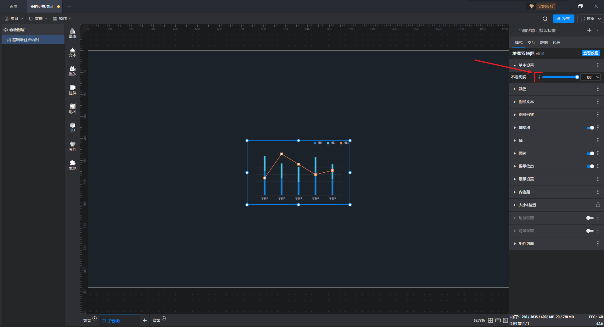 下面我们以基础堆叠双轴图为例,为大家介绍一下组件的使用步骤: